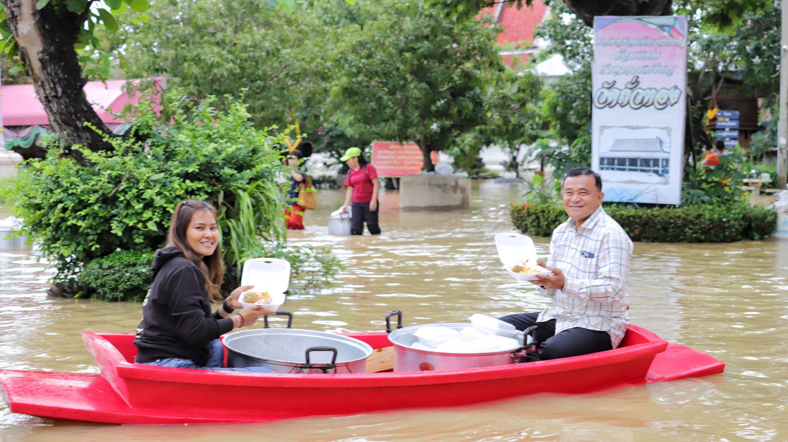 ทั้งนี้ นายชาญ พร้อมครูโรงเรียนวัดถั่วทอง ลุยน้ำท่วมขังสูงกว่า 70 เซนติเมตรในพื้นที่ บางจุดสูงเกือบ 1 เมตร นำข้าวกล่องมาแจกให้เจ้าหน้าที่และประชาชน ที่ช่วยกันนำกระสอบทรายทำคันกั้นน้ำ ชุมชนแห่งนี้ยังคงมีระดับน้ำที่ท่วมสูงอยู่ ทำให้การสัญจรเข้าออกลำบาก จำเป็นต้องทำคันกั้นน้ำและเร่งสูบน้ำออกโดยบรรยากาศเป็นไปด้วยความอบอุ่น