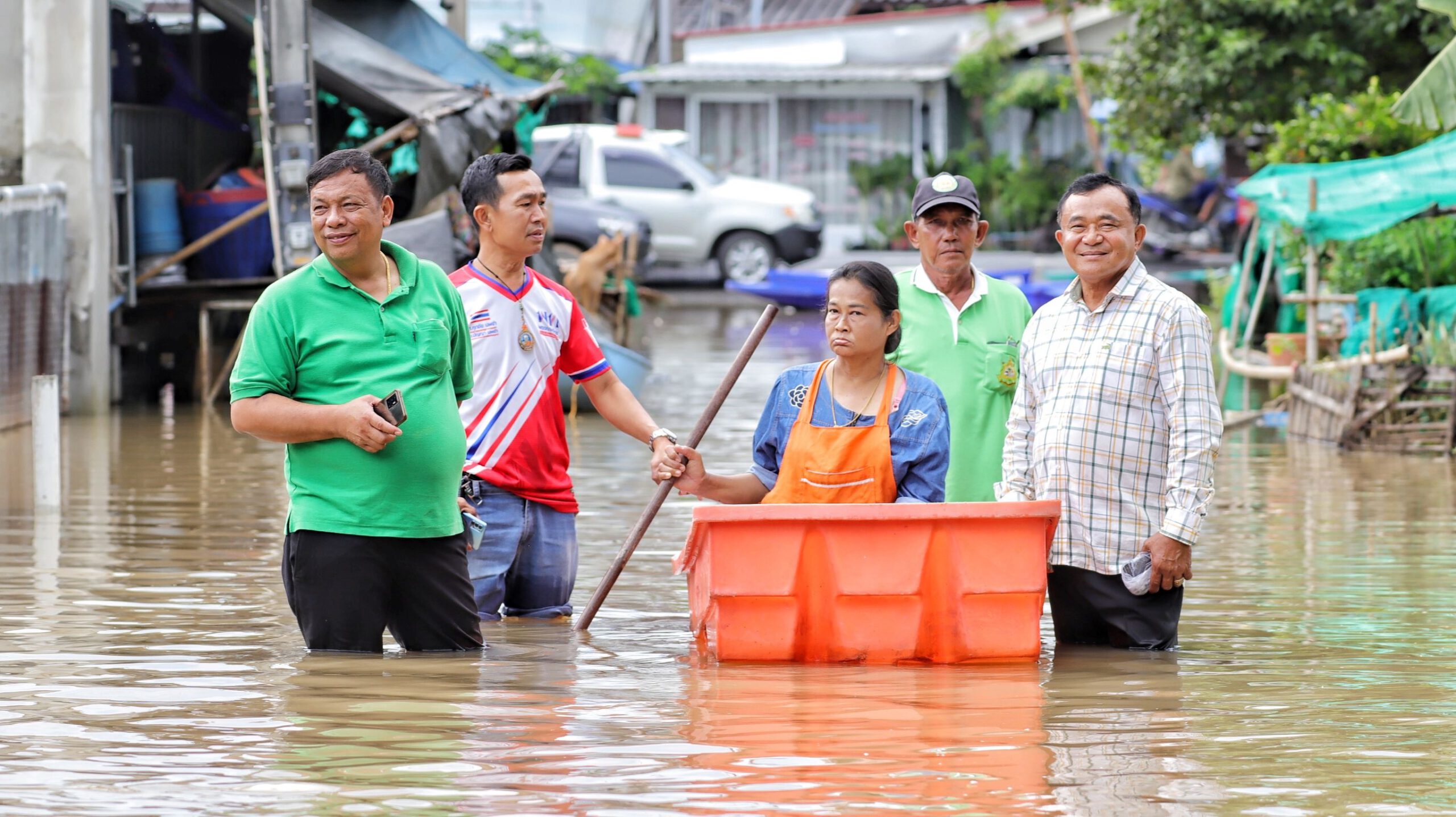 เมื่อเวลา 14.00 น.วันที่ 5 ก.ย.2565 ที่ตำบลกระแชง อำเภอสามโคก จังหวัดปทุมธานี นายชาญ พวงเพ็ชร์ อดีตนายกองค์การบริหารส่วนจังหวัดปทุมธานี พร้อมนายไวพจน์ เอี่ยมสะอาด นายก อบต.กระแชง นางสาวชิดชนก พวงเพ็ชร์ และคณะลงพื้นที่ลุยน้ำกว่า 1 เมตร ออกเยี่ยมให้กำลังใจประชาชน ที่ได้รับผลกระทบจากน้ำท่วมขังสูงติดต่อกันมาหลายวัน สถานการณ์น้ำท่วมในพื้นที่จังหวัดปทุมธานี ขณะนี้ขยายวงกว้างมากขึ้น เนื่องจากอิทธิพล “พายุโนรู” ทำให้ฝนตกหนักมาก และเขื่อนเจ้าพระยาเร่งระบายน้ำ ทำให้น้ำในแม่น้ำเจ้าพระยามีระดับน้ำสูงขึ้น น้ำได้ทะลักเข้าท่วมบ้านเรือนประชาชนที่อยู่ติดริมแม่น้ำเจ้าพระยา จมน้ำหลายหลังคาเรือน โดยเฉพาะอำเภอเมืองปทุมธานี และอำเภอสามโคก ซึ่งชาวบ้านส่วนใหญ่ยังคงอาศัยอยู่ที่ชั้นสองของบ้านพัก เนื่องจากน้ำเข้าท่วมที่ชั้นแรกของตัวบ้าน โดยบ้างบ้านจะมีเครื่องสูบขนาดเล็กไปทยอยสูบออกมาด้านนอกบ้าน ประชาชนต้องใช้เรือในการสัญจร การลงพื้นที่ในครั้งนี้ สร้างรอยยิ้มความดีใจของชาวบ้านเป็นอย่างมาก