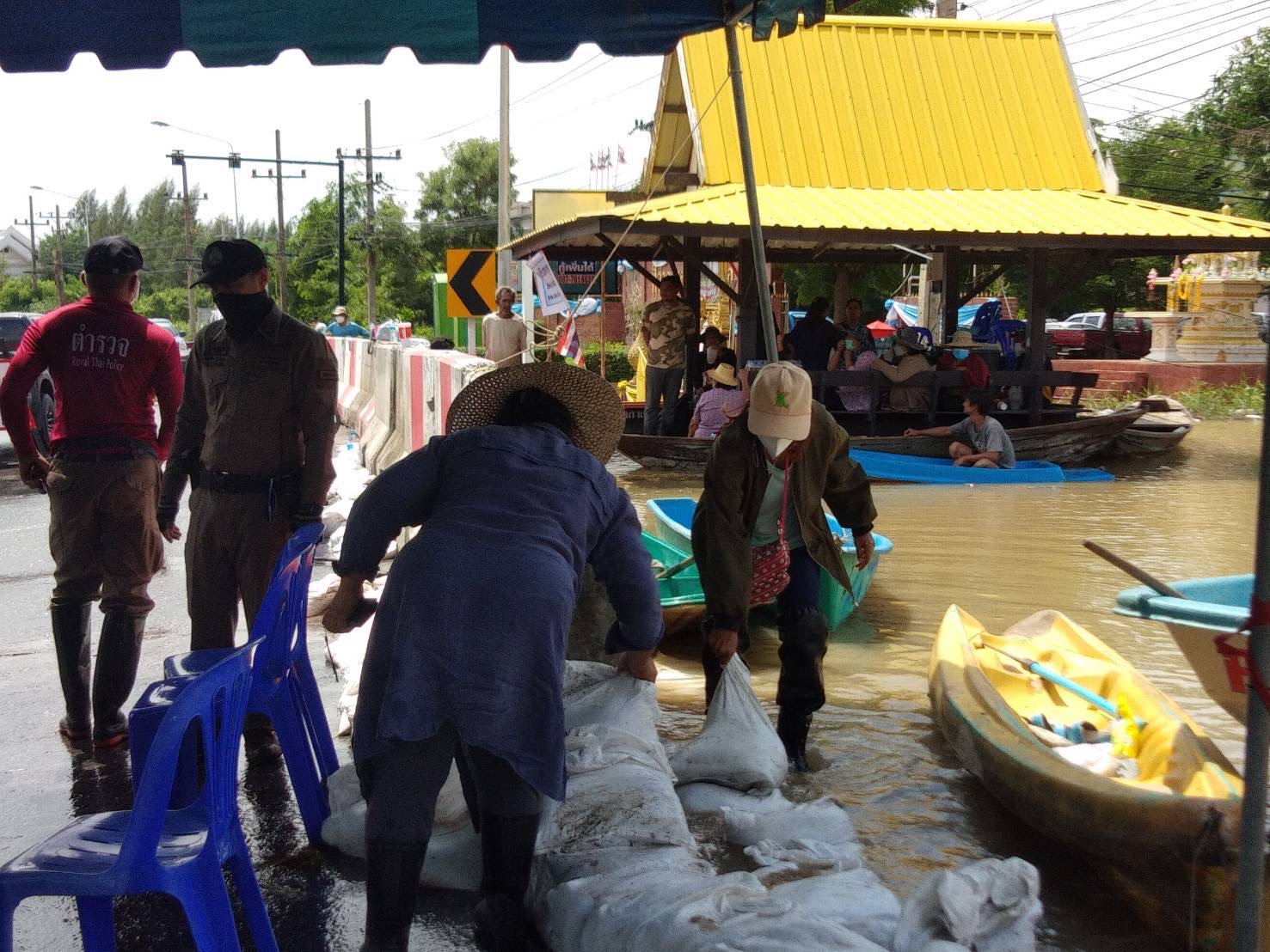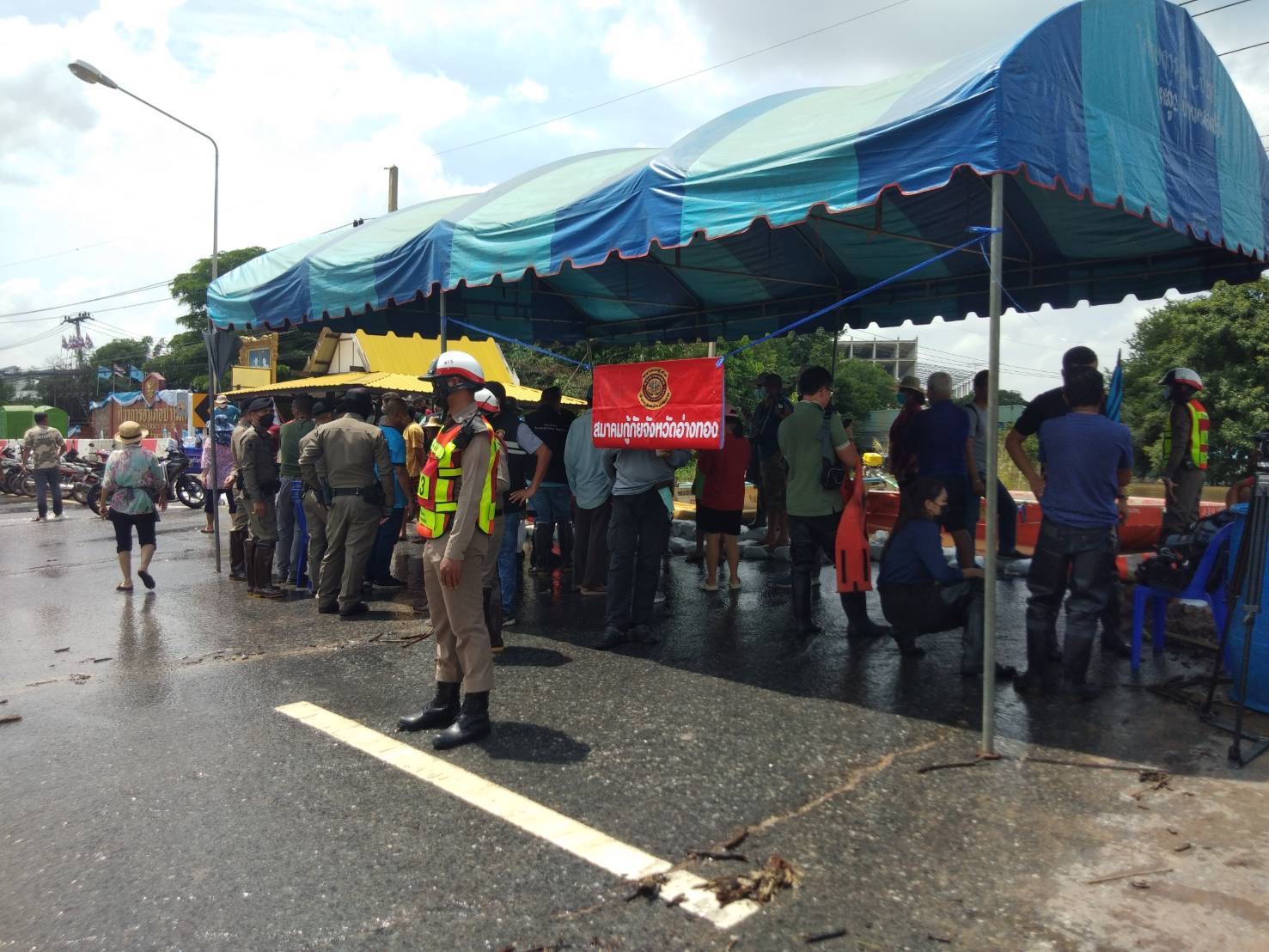 ชาวบ้านบางปลากดสุดทน วันนี้เวลา 11.30 น.วันที่ 5 ตุลาคม 2565 ชาวบ้านหมู่ที่ 6 ชุมชน 10 ตำบลบางปลากด อำเภอป่าโมก จังหวัดอ่างทอง ทนไม่ไหว หลังจากน้ำในแม่น้ำเจ้าพระยาทะลักเข้าท่วมบ้านเรือนจมน้ำเสียหายนับ100 หลังคาเรือน รวมตัวออกมาขอความช่วยเหลือให้เจ้าหน้าที่แขวงทางหลวงอ่างทอง และฝ่ายปกครองอำเภอป่าโมก ขอให้เปิดทางระบายน้ำจากแนวกั้นกระสอบทราย บนถนนทางหลวงสาย 309 อ่างทอง – ป่าโมก (สายเก่า) บริเวณใกล้ๆกับที่ว่าการอำเภอป่าโมก ออกบางส่วนเพื่อให้น้ำไหลผ่านไปอีกฝากถนนสาย 309 ในพื้นที่ของตำบลโรงช้าง เพื่อเป็นการถ่ายเทระดับน้ำที่สูงขึ้นจากแม่น้ำเจ้าพระยา เพื่อเป็นการลดผลกระทบความเดือดร้อนของชาวบ้าน