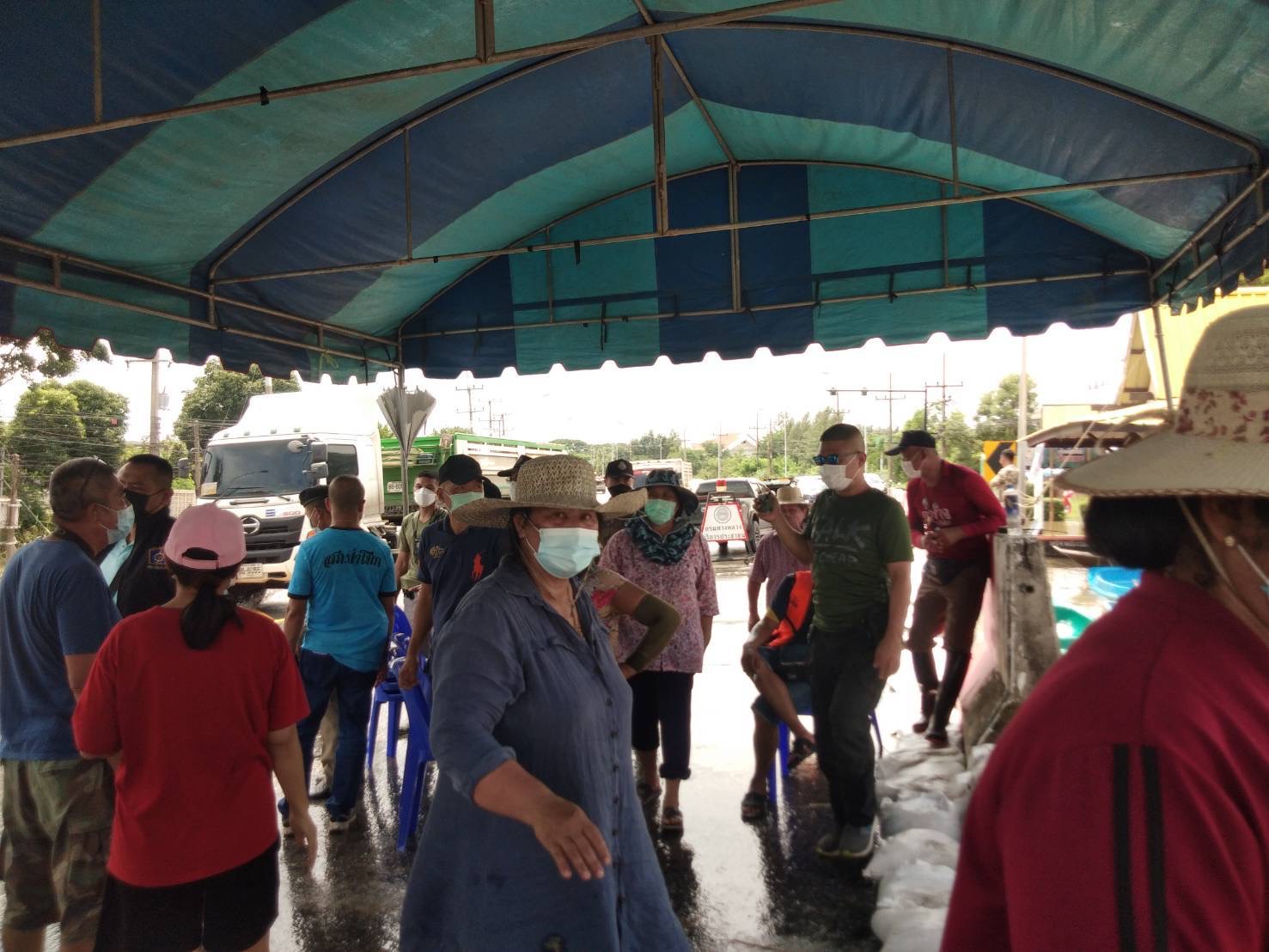 ซึ่งในขณะเดียวกัน นายพลภัทร จันทร์ลุน ปลัดอำเภอป่าโมก (ความมั่นคง)ได้ออกมารับเรื่องและชี้แจงให้ชาวบ้านได้เข้าใจและยินดีทำตามข้อเสนอของชาวบ้านทำให้ชาวบ้านได้สะบายใจและได้ทยอยกันกลับแต่มีบางส่วนยังคงเฝ้าระวังแนวคันกระสอบทรายอยู่
