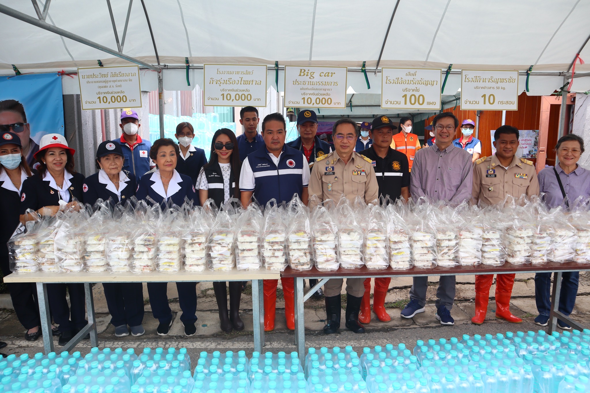 ต่อจากนั้น นายสุพจน์ ยศสิงห์คำ ผู้ว่าราชการจังหวัดสิงห์บุรี/นายกเหล่ากาชาดจังหวัดสิงห์บุรี นายสัมฤทธิ์ กองเงิน นายสมชาย ลีหล้าน้อย รองผู้ว่าราชการจังหวัดสิงห์บุรี นางภรณี ธนาคมานุสรณ์ คณะกรรมการเหล่ากาชาดจังหวัดสิงห์บุรี พร้อมด้วย คณะกรรมการ/สมาชิกเหล่ากาชาดจังหวัดสิงห์บุรี ร่วมกับ นายอภิศักดิ์ กิติเรียงลาภ สมาชิกสภาองค์การบริหารส่วนจังหวัดสิงห์บุรี อำเภอค่ายบางระจัน เขต 1 ได้จัดทำข้าวกล่องเพื่อมอบให้แก่ประชาชนที่ได้รับความเดือดร้อนจากอุทกภัยในพื้นที่อำเภออำเภอพรหมบุรี ณ บริเวณโรงเรียนบ้านเก่า ตำบลบ้านหม้อ อำเภอพรหมบุรี