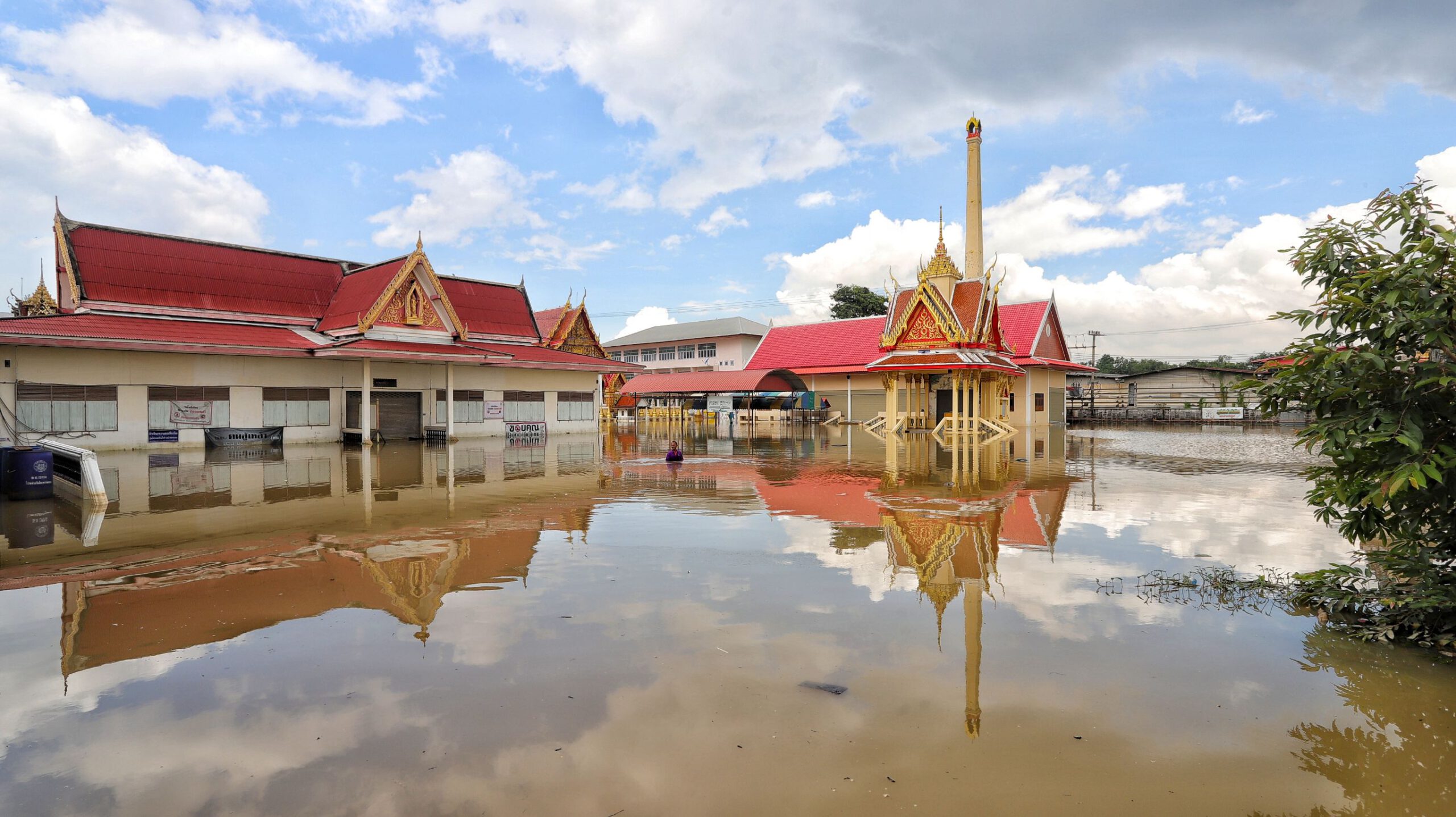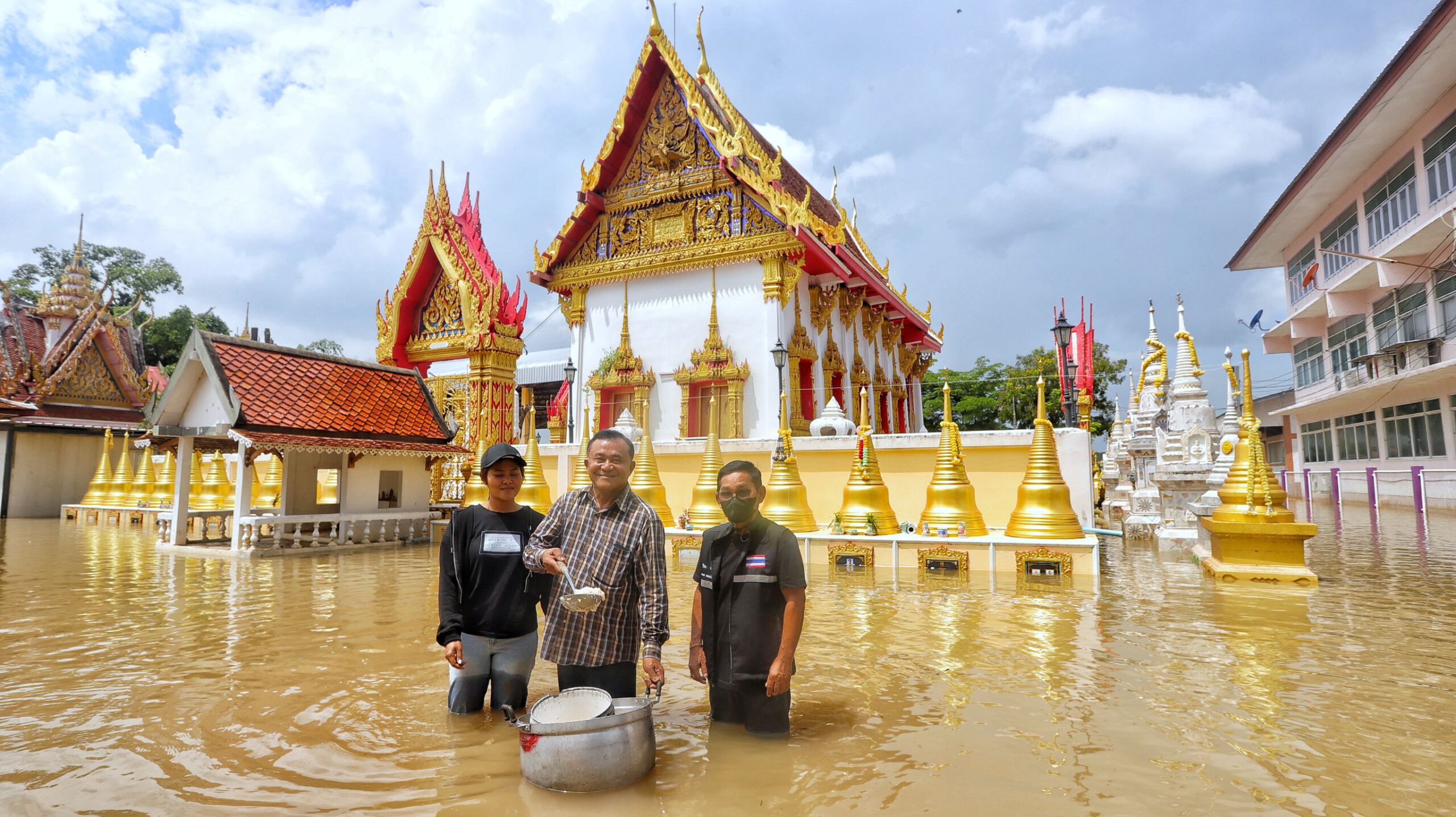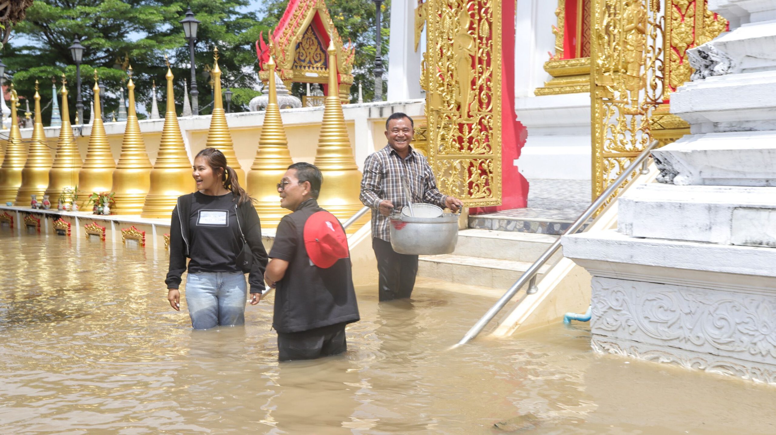 น้ำทะลักท่วมวัดโพธิ์เลื่อนเมืองปทุมฯ สูง 120 ซ.ม.”ชาญ”ลุยน้ำให้อาหารสุนัข ย้ำทุกชีวิตล้วนมีค่า