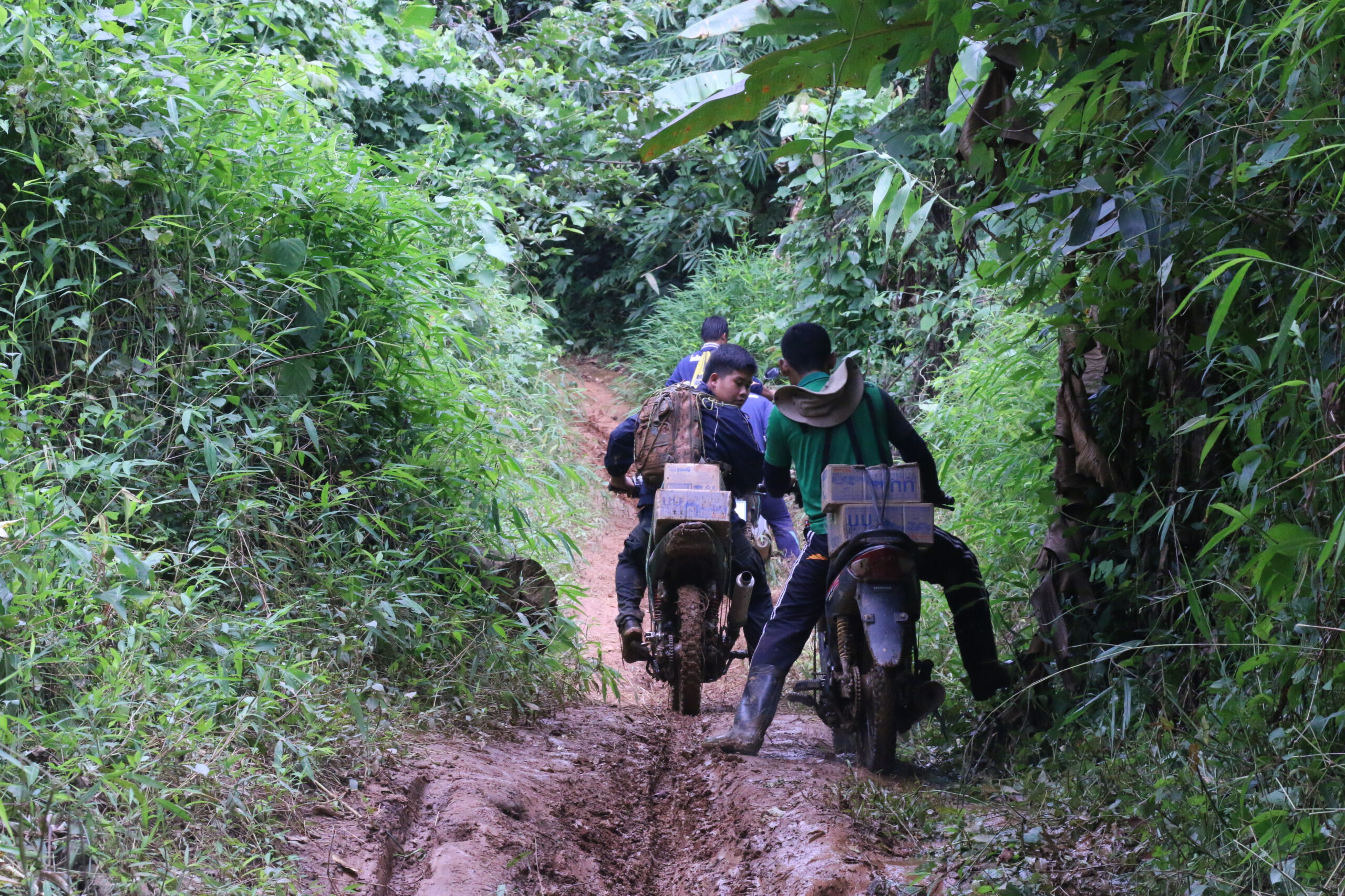 ระหว่างการเดินทางต้องซ่อมรถจักรยานยนต์ ที่มีปัญหา ล้มลุกคลุกคลาน บางช่วงต้องช่วยกันเข็นรถขึ้นเขา ข้ามลำห้วยที่มีน้ำป่า เพื่อให้สามารถเดินทางต่อไปให้ถึงจุดหมาย โดยการเดินทางในครั้งนี้ใช้ระยะเวลาไปกลับกว่า 4 ชั่วโมง ในระยะไปกลับ เพียง 15 กิโลเมตร โดยครูที่นี่ส่วนใหญ่เป็นลูกหลานในชุมชน ที่เป็นชาวไทยเชื้อสายกะเหรี่ยง จึงทำให้มีความชำนาญในการขับขี่รถจักรยานยนต์ และมีความคุ้นเคยกันเส้นทางเป็นอย่างดี