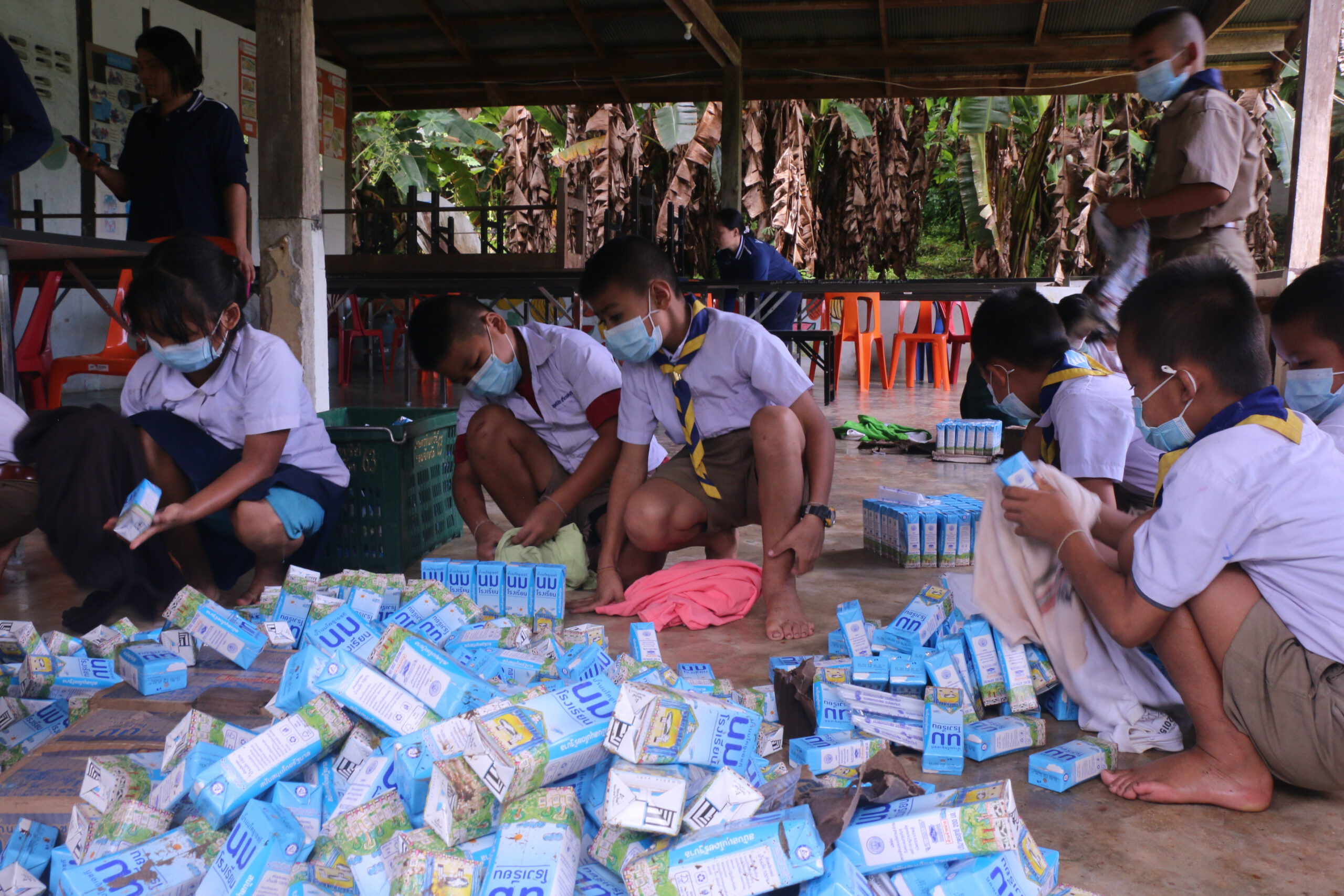 กาญจนบุรี คณะครูโรงเรียนบ้านกองม่องทะ ขับรถรถจักรยานยนต์ ลุยน้ำป่า ลุยโคลน ขนนมโรงเรียนไปมอบให้นักเรียน ที่โรงเรียนบ้านกองม่องทะ สาขาพิเศษบ้านเกาะสะเดิ่งได้กินในช่วงปิดเทอม พร้อมรับเด็กนักเรียนลงมาแข่งขันทางทักษะวิชาการที่กองม่องทะเพื่อหาตัวแทนเข้าแข่งขันในระดับเครือข่าย
