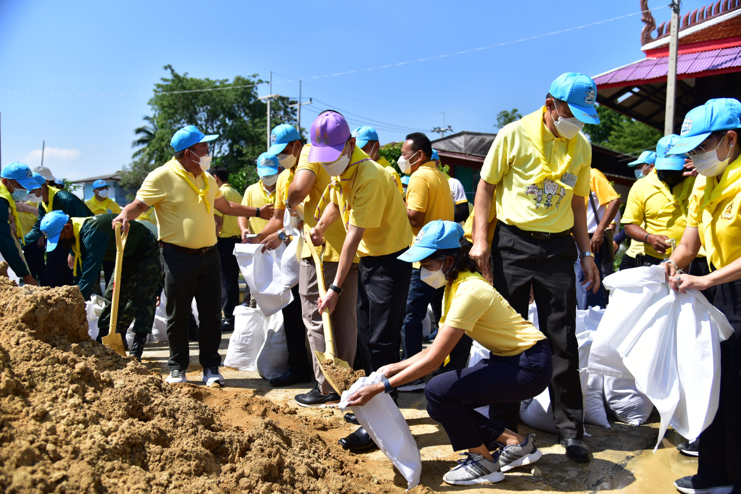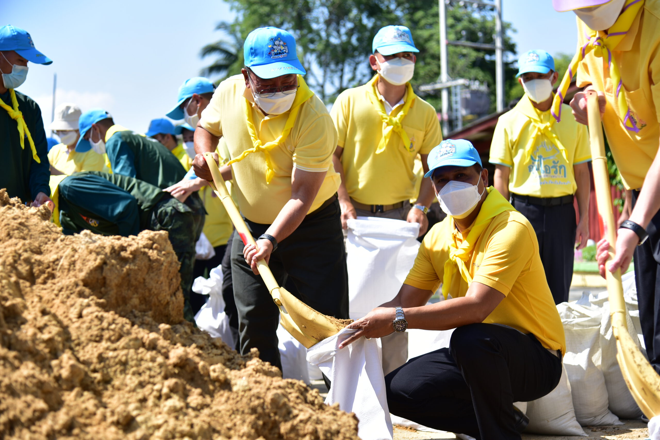 จ.นครปฐม จัดกิจกรรมจิตอาสาพัฒนาร่วมบรรจุกระสอบทราย ป้องกันน้ำท่วม เนื่องในวันคล้ายวันสวรรคตพระบรมชนกาธิเบศร มหาภูมิพลอดุลยเดชมหาราช บรมนาถบพิตร