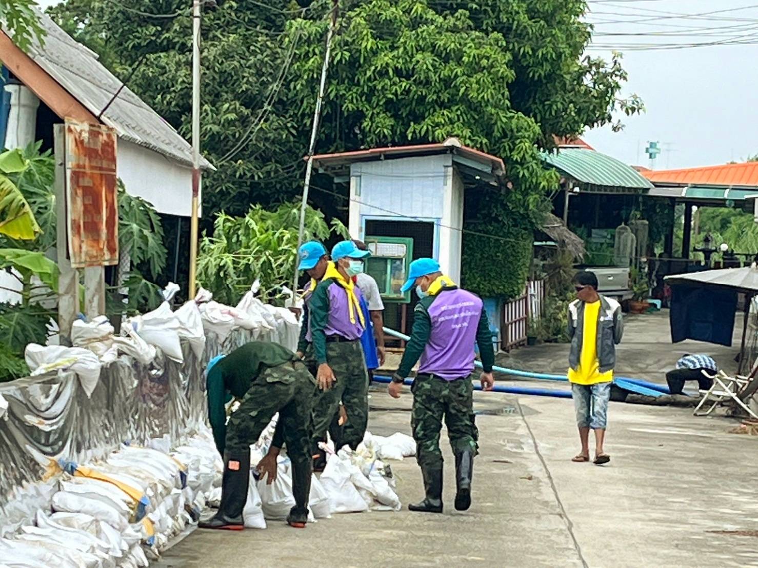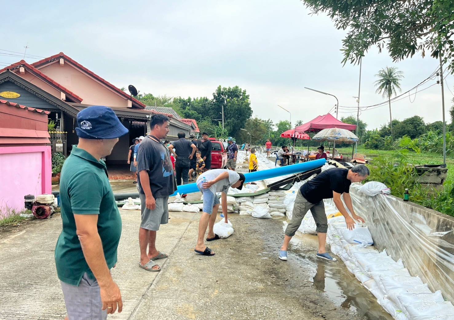 3.จัดให้มีการเรียงกระสอบทรายกั้นท้ายหมู่บ้านเปี่ยมสุข 2