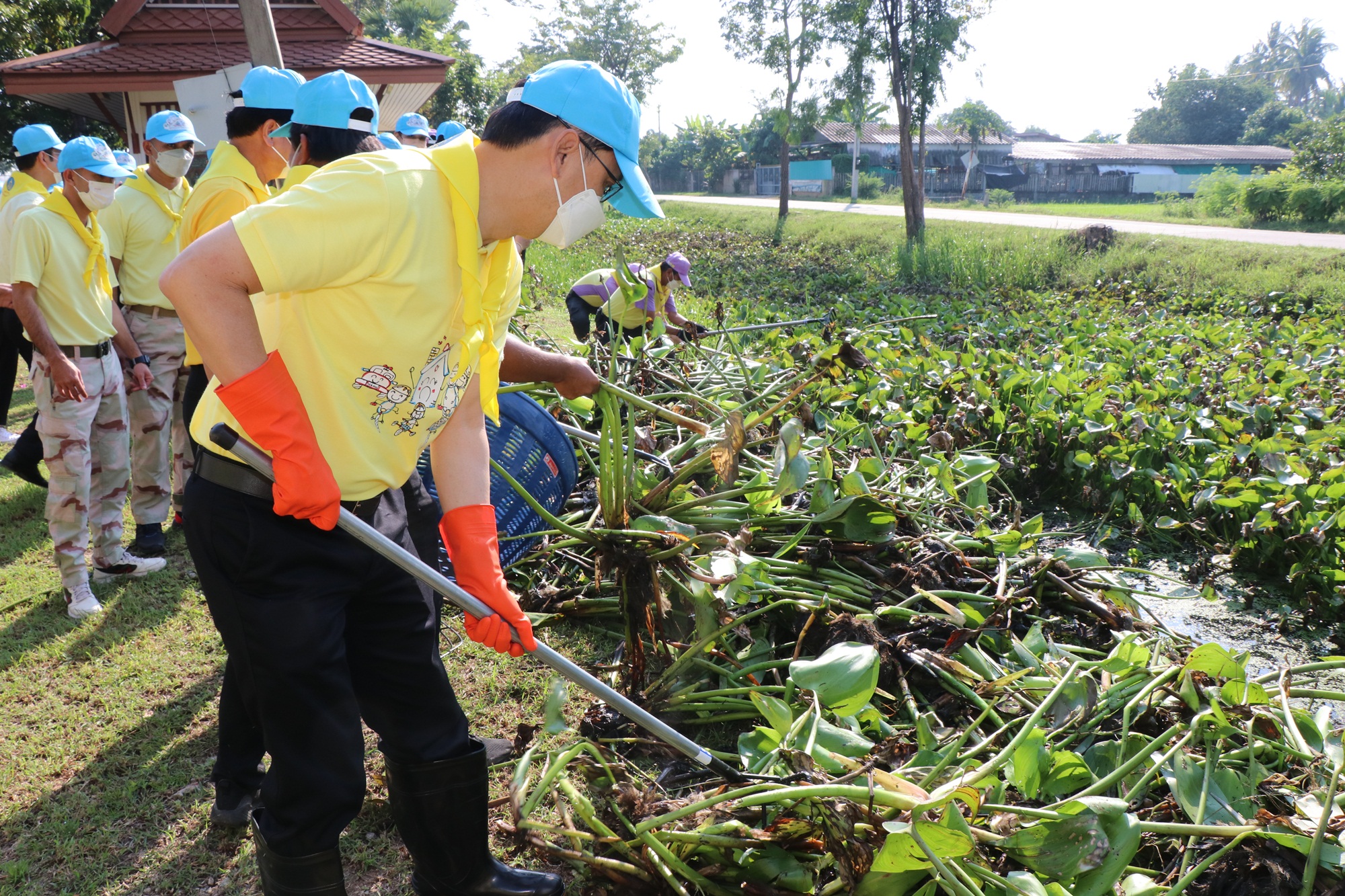 จากนั้น ผู้ว่าราชการจังหวัดกาญจนบุรี หัวหน้าส่วนราชการ ประชาชนจิตอาสาพระราชทาน ทั้งหมดได้แยกย้ายไปปฏิบัติกิจกรรมทำความสะอาด ตัดต้นไม้ กำจัดวัชพืช ให้มีความสะอาดเรียบร้อยโดยรอบบริเวณ