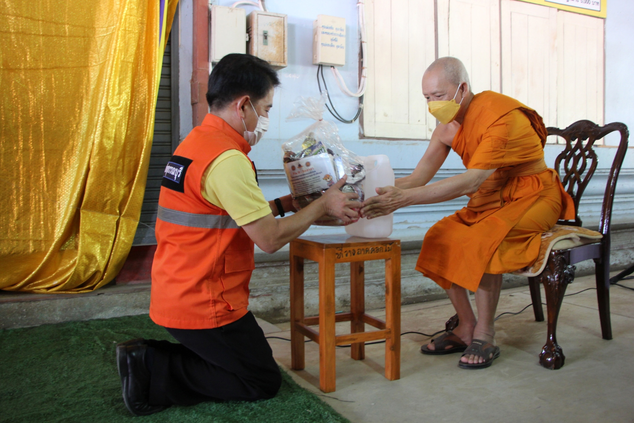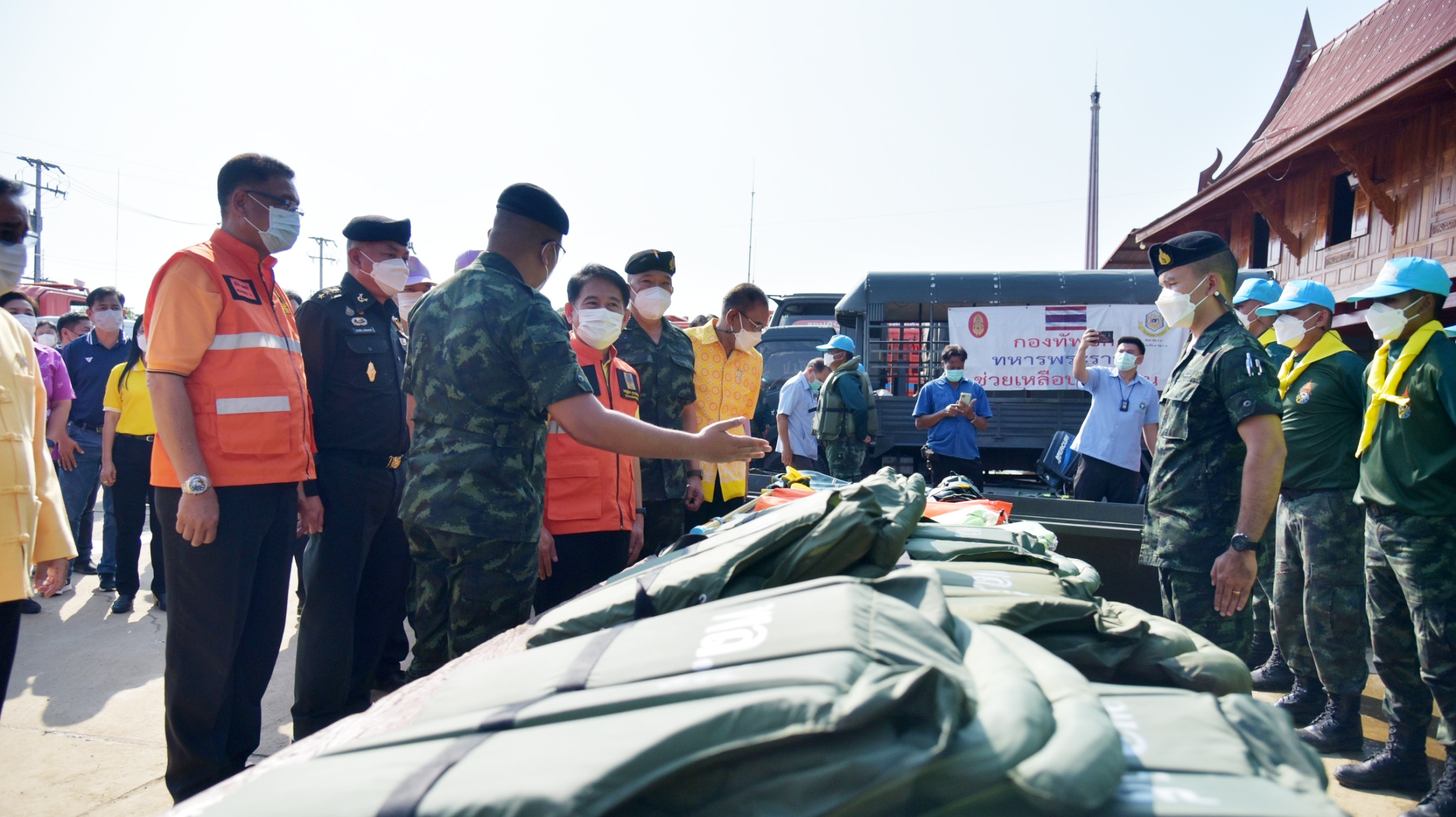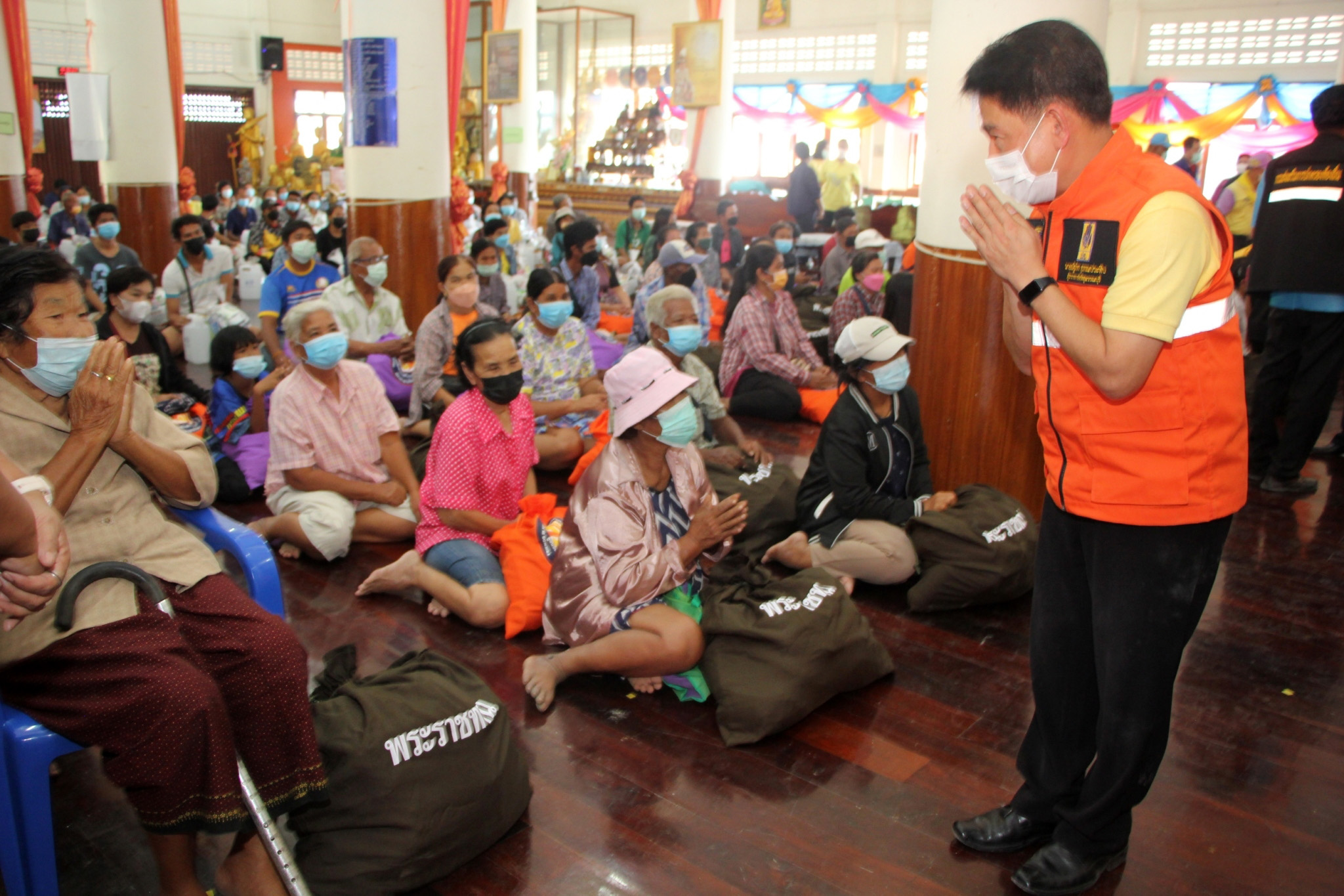 หลังพิธีเปิดศูนย์ผู้ว่าราชการจังหวัดสุพรรณบุรี พร้อมคณะรองผู้ว่าและนายทหารร่วมกันประกอบอาหารบนรถประกอบอาหาร แจกจ่ายให้กับประชาชน และมอบสิ่งของพระราชทานมูลนิธิราชประชานุเคราะห์ฯ และมูลนิธิอาสาเพื่อนพึ่ง (ภาฯ) ยามยาก สภากาชาดไทย ให้แก่ประชาชนที่เข้ามาพักอาศัยที่ศูนย์พักพิงฯ จำนวน 191 ครัวเรือน