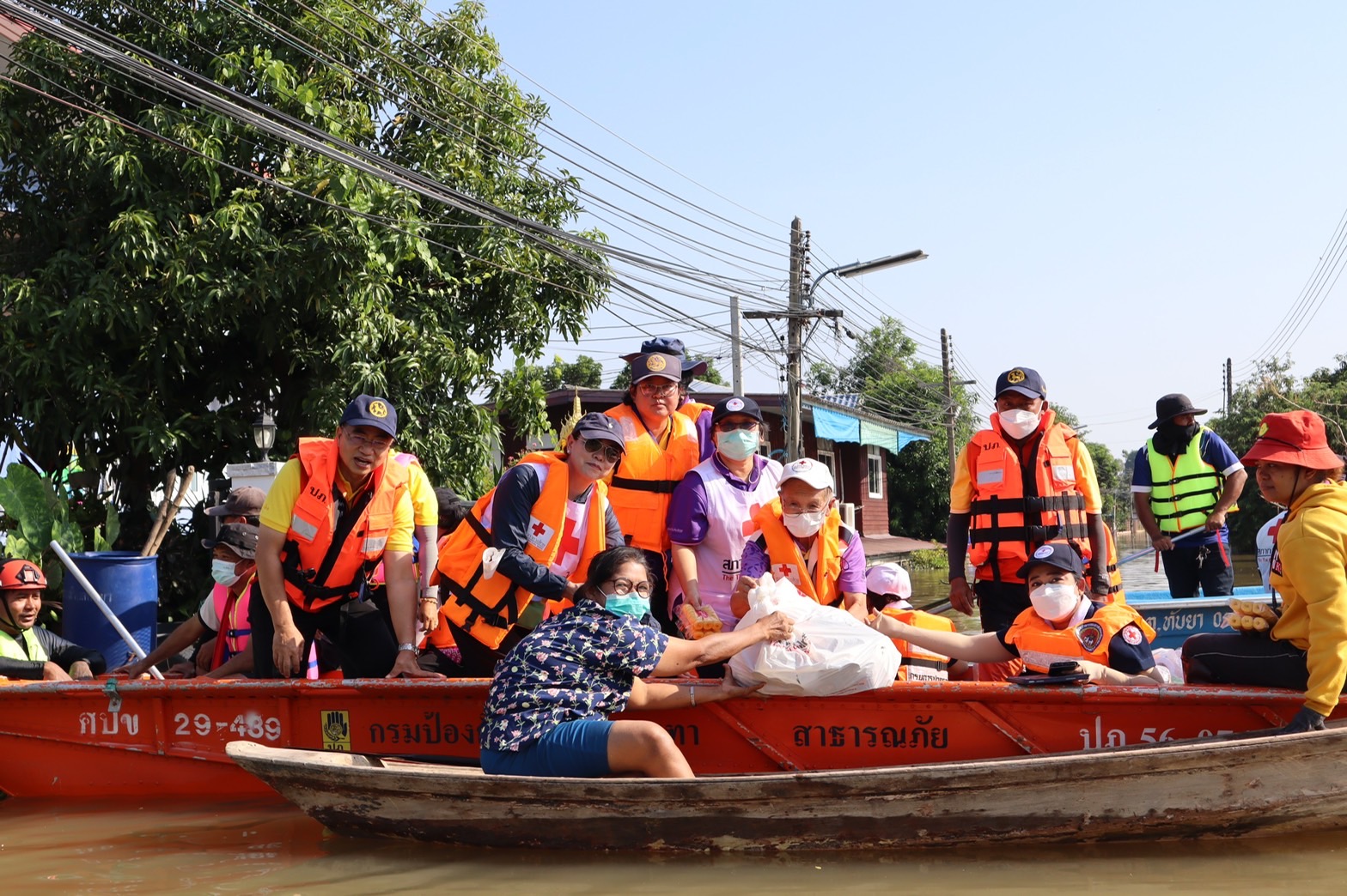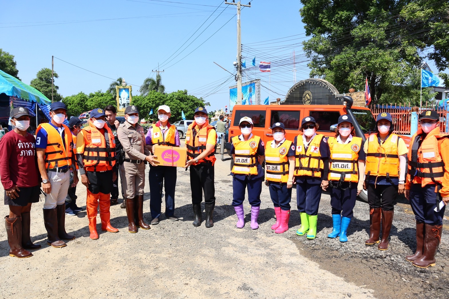 วันที่ 18 ตุลาคม 2565 เวลา 13.45 – 16.30 น. พลโทอำนาจ บาลี ผู้อำนวยการสำนักงานบรรเทาทุกข์และประชานามัยพิทักษ์ สภากาชาดไทย นางจิราพร ศรีสอ้าน ผู้อำนวยการสำนักสารนิเทศและสื่อสารองค์กร สภากาชาดไทย และสถานีโทรทัศน์ช่อง one พร้อมคณะดารานักแสดง ร่วมกับ นายสุพจน์ ยศสิงห์คำ ผู้ว่าราชการจังหวัดสิงห์บุรี/นายกเหล่ากาชาดจังหวัดสิงห์บุรี นายสมชาย ลีหล้าน้อย รองผู้ว่าราชการจังหวัดสิงห์บุรี นางจิราภรณ์ กองเงิน นางสาวนัยนา ศรีเร รองนายกเหล่ากาชาดจังหวัดสิงห์บุรี นางภรณี ธนาคมานุสรณ์ คณะกรรมการเหล่ากาชาดจังหวัดสิงห์บุรี นางศิริลักษม์ เหมาะพิชัย นายอำเภออินทร์บุรี/นายกกิ่งกาชาดอำเภออินทร์บุรี หัวหน้าส่วนราชการ ผู้บริหารท้องถิ่น คณะกรรมการเหล่ากาชาดจังหวัดสิงห์บุรี ปลัดอำเภอ กำนัน ผู้ใหญ่บ้าน และเจ้าหน้าที่เหล่ากาชาดจังหวัดสิงห์บุรี ลงเรือตรวจเยี่ยมให้กำลังใจ และมอบเครื่องอุปโภค บริโภค ให้แก่ประชาชนที่ได้รับความเดือดร้อนจากอุทกภัยในพื้นที่หมู่ที่ 5 ตำบลทับยา อำเภออินทร์บุรี