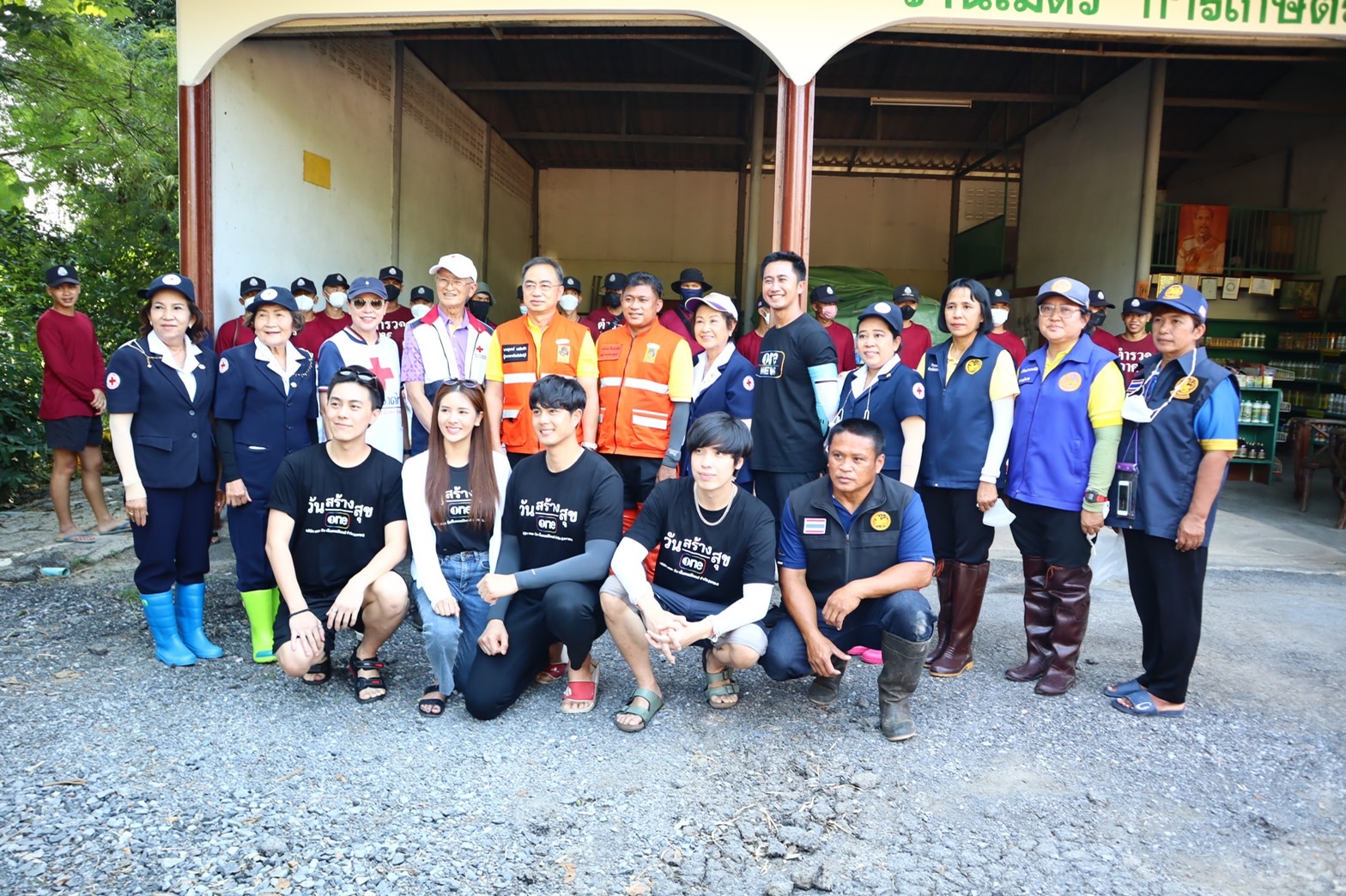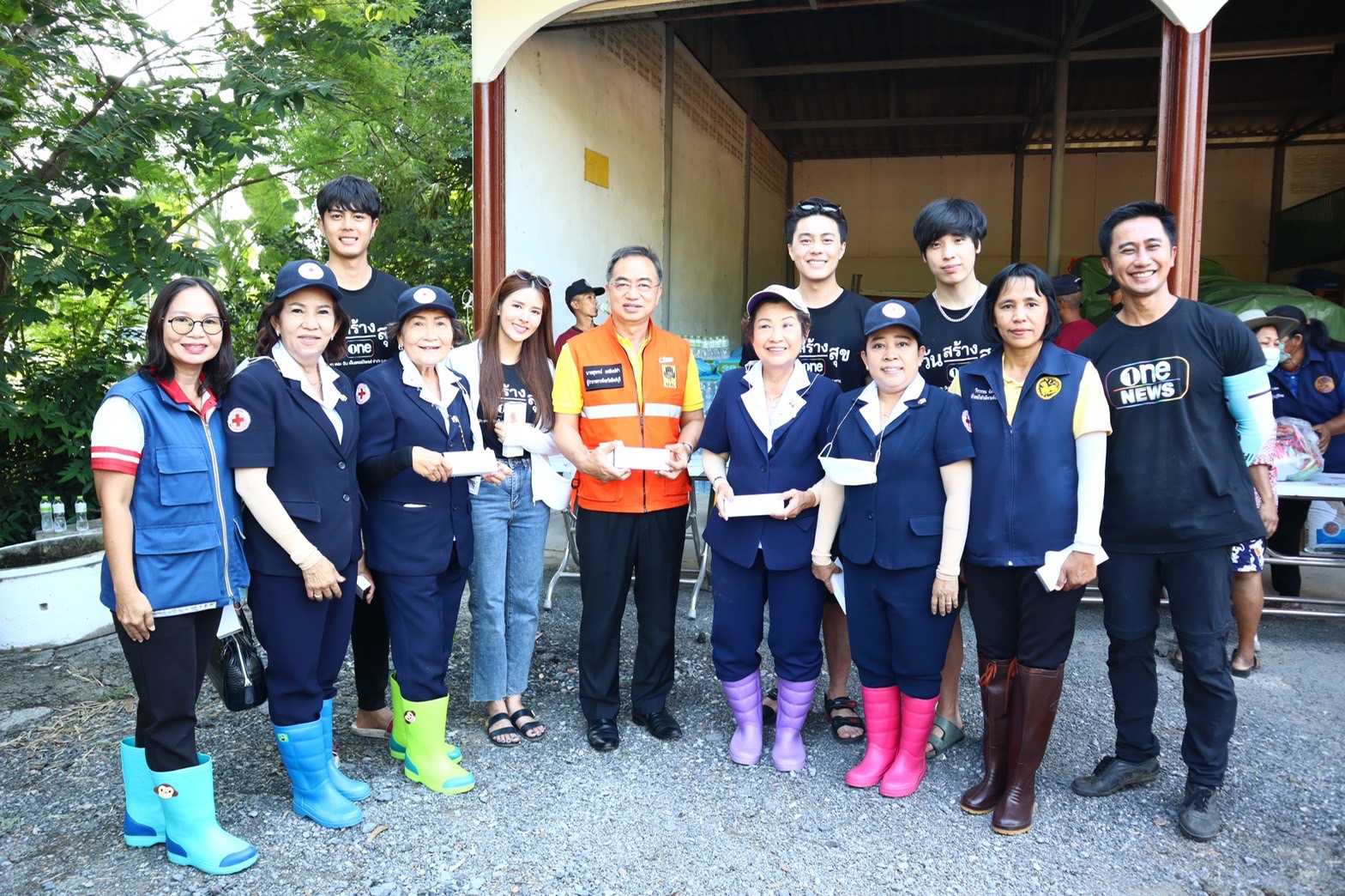 จากนั้น พลโทอำนาจ บาลี ผู้อำนวยการสำนักงานบรรเทาทุกข์และประชานามัยพิทักษ์ สภากาชาดไทย นางจิราพร ศรีสอ้าน ผู้อำนวยการสำนักสารนิเทศและสื่อสารองค์กร สภากาชาดไทย และสถานีโทรทัศน์ช่อง one พร้อมคณะดารานักแสดง ร่วมกับ นายสุพจน์ ยศสิงห์คำ ผู้ว่าราชการจังหวัดสิงห์บุรี/นายกเหล่ากาชาดจังหวัดสิงห์บุรี และคณะ มอบเครื่องอุปโภค บริโภค ให้แก่ประชาชนที่ได้รับความเดือดร้อนจากอุทกภัยในพื้นที่ตำบลทับยา อำเภออินทร์บุรี จังหวัดสิงห์บุรี จำนวน 332 ราย ณ ที่ทำการผู้ใหญ่บ้านหมู่ที่ 6 ตำบลทับยา อำเภออินทร์บุรี จังหวัดสิงห์บุรี ซึ่งเครื่องอุปโภค บริโภค ได้รับการสนับสนุนจากสถานีโทรทัศน์ช่อง one