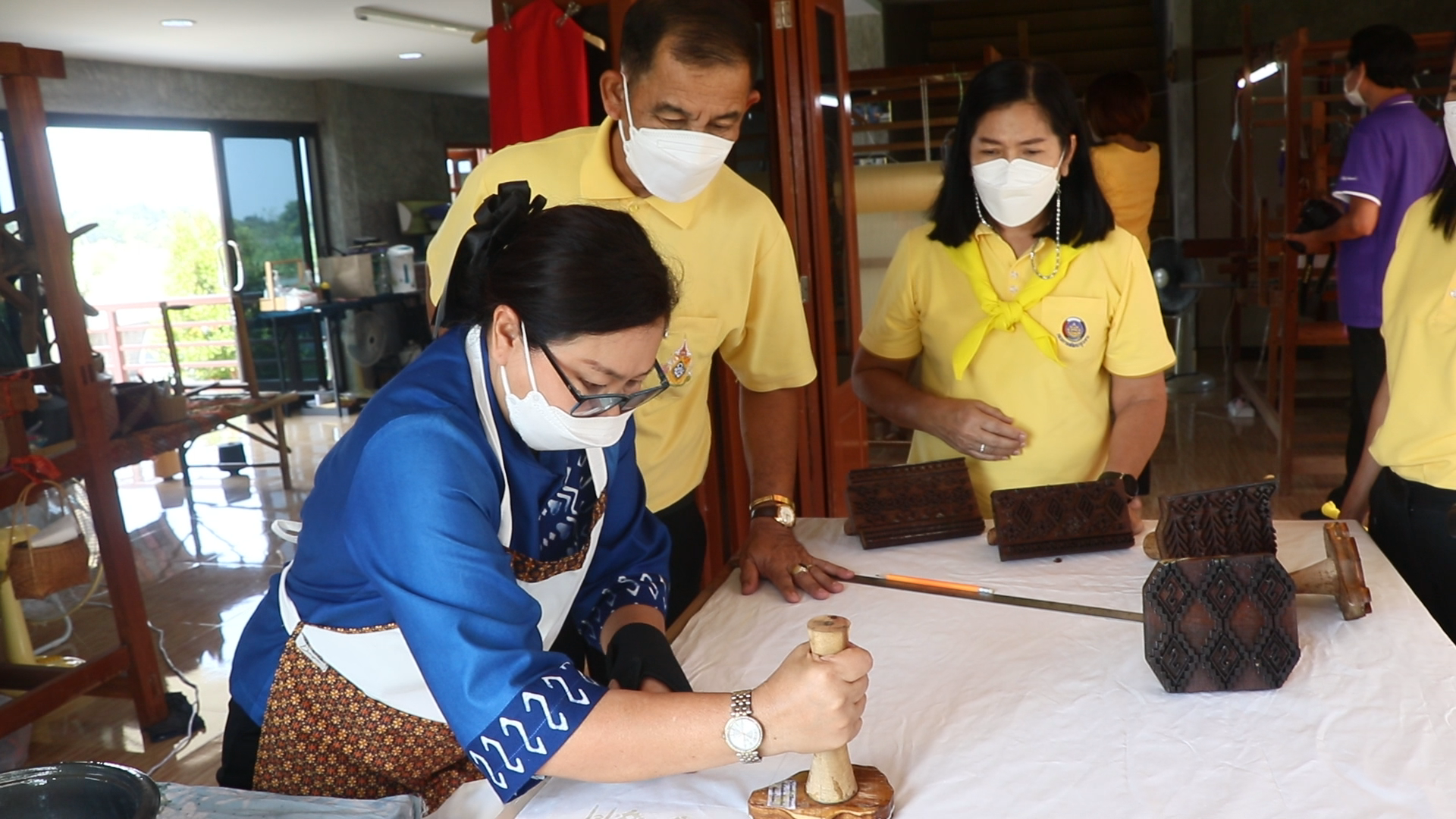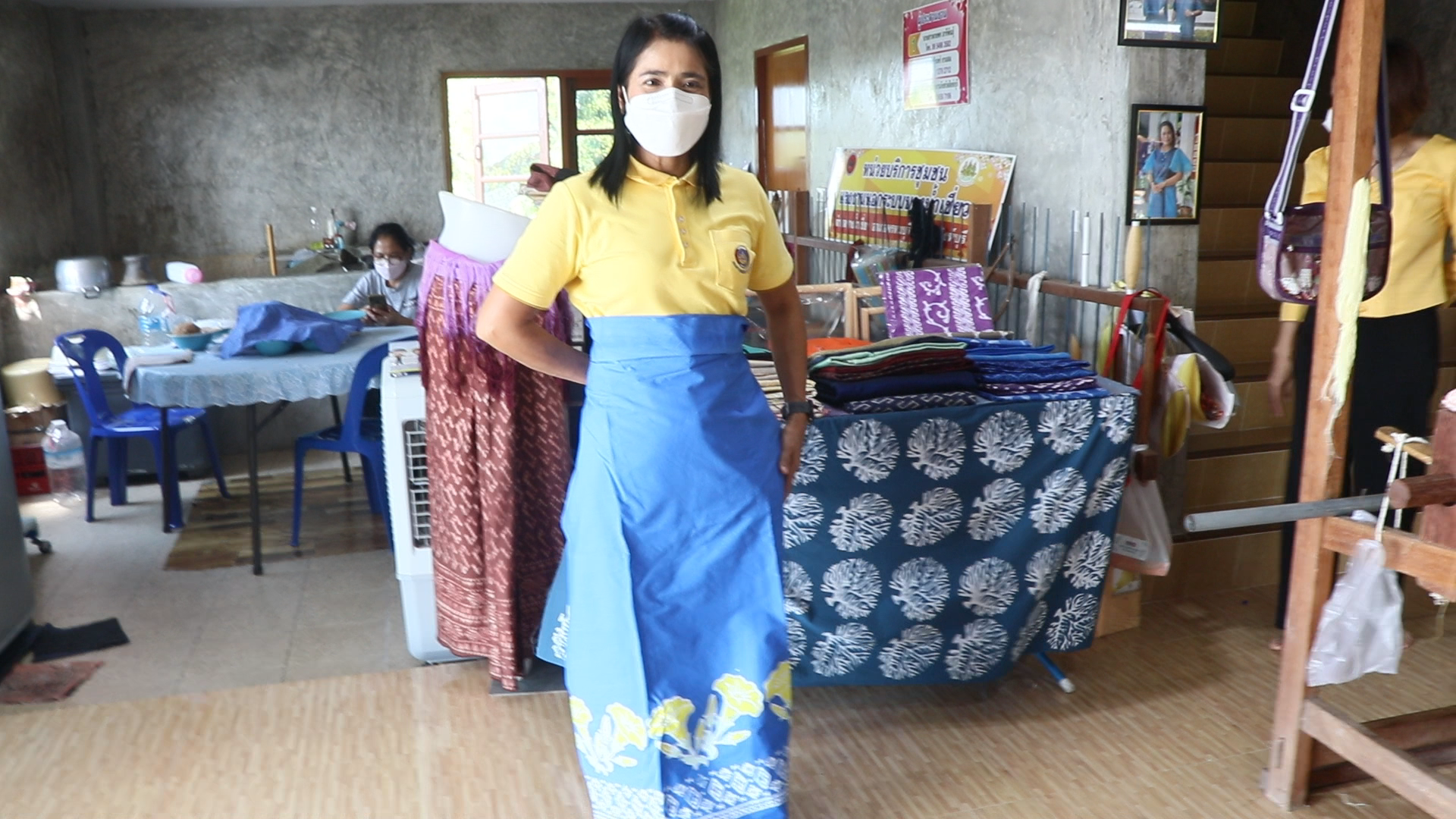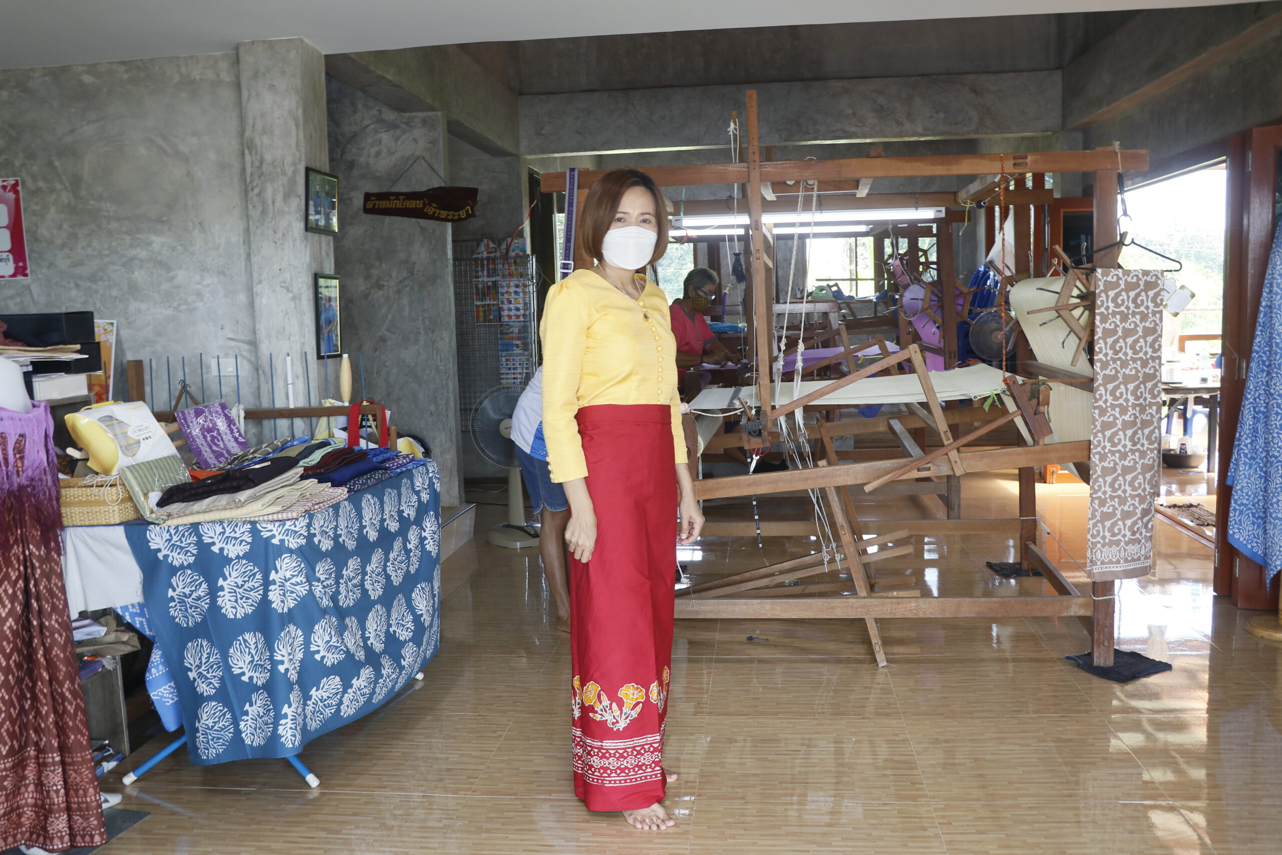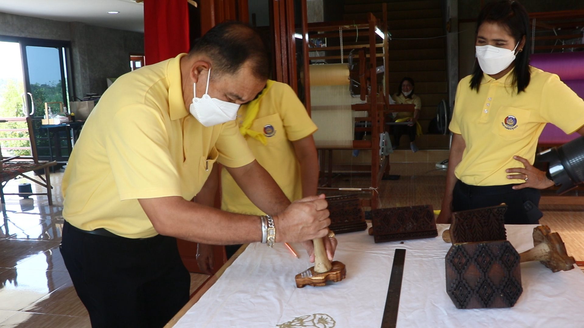 สิงห์บุรี พัฒนาชุมชนลงพื้นที่เยี่ยมชมกระบวนการผลิต ผ้าบาติกลายดอกทองอุไร