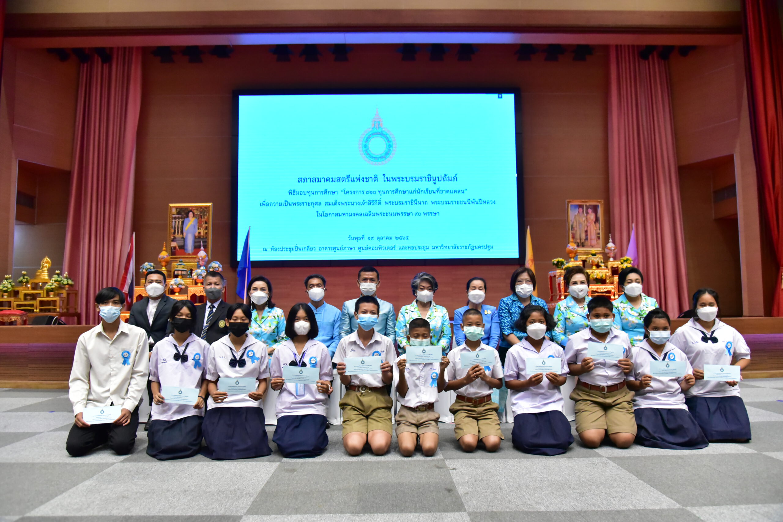 วันที่ 19 ตุลาคม 2565 ที่มหาวิทยาลัยราชภัฏนครปฐม อำเภอเมือง จังหวัดนครปฐม นางสาวสุกัญญา ประจวบเหมาะ ประธานสภาสมาคมสตรีแห่งชาติในพระบรมราชินูปถัมภ์ เป็นประธานมอบทุนการศึกษาให้แก่นักเรียนที่ขาดแคลน โดยมี นายชยชัย แสงอินทร์ รองผู้ว่าราชการจังหวัดนครปฐม กล่าวต้อนรับ และนางสาวณัฏฐ์ปภาณ จันทร์ละมูล กรรมการอำนวยการสภาสมาคมสตรีแห่งชาติฯ ประธานภาคกลางและตะวันออก นายกสมาคมสตรีนักธุรกิจและวิชาชีพแห่งประเทศไทย-นครปฐม กล่าวรายงาน วัตถุประสงค์โครงการฯ พร้อมด้วยคณะกรรมการสภาสมาคมสตรีแห่งชาติในพระบรมราชินูปถัมภ์ และสมาชิกสภาสมาคมสตรี ตลอดจนผู้สนับสนุนทุนการศึกษา รองนายกเหล่ากาชาดจังหวัด ปลัดจังหวัด พัฒนาสังคมและความมั่นคงของมนุษย์จังหวัด และศึกษาธิการทั้ง 7 จังหวัด ร่วมพิธีในครั้งนี้