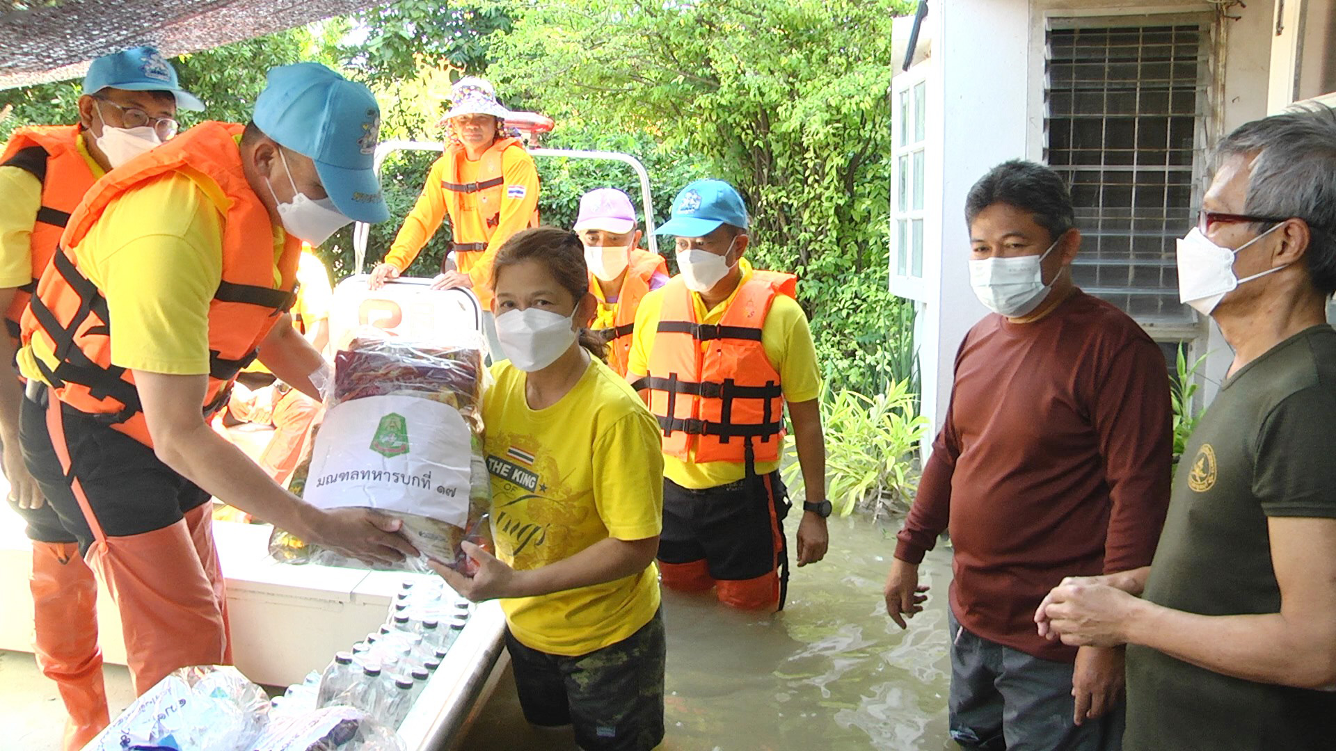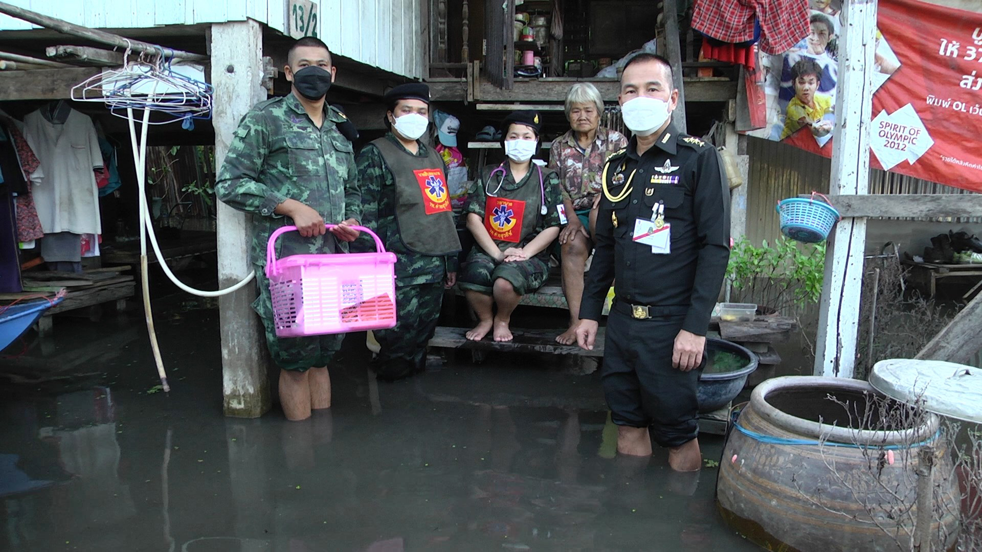 สุพรรณบุรี ผบ.มทบ17 นำหน่ยแพทย์เคลื่อนที่ร่วมหน่วยงานช่วยชาวบ้านน้ำท่วม