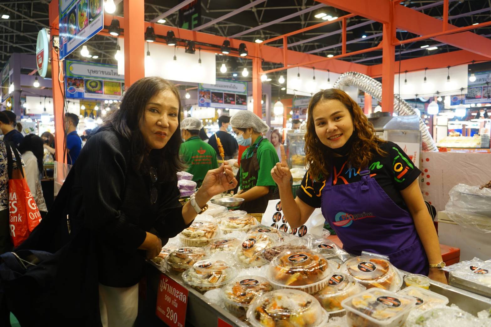 ทั้งนี้บูธอาหารต่างๆยังได้สร้างสีสันให้กับบรรยากาศ การช้อปปิ้งของกินกว่า 300 เมนู อาทิ #ร้านตู้กับข้าวภูเก็ต ได้เชิญคู่รักพระนาง ธัญน์ ธนากร และยุ้ย-จีรนันท์ มะโนแจ่ม มาตักอาหารใต้เมนูประจำถิ่นน้ำอ้อยดำ ไข่ขมิ้น ไตปลาแห้ง ให้ลูกค้าได้รับชิม “ร้านโรตีสายไหมพระเอกลิเก เอ ธงชัย” ที่มาแต่งชุดลิเกร้องรำเรียกลูกค้า รวมถึงแม่ค้าสาวแม้วของ “ร้านไส้อั่วสุรีย์รัตน์ เชียงใหม่”