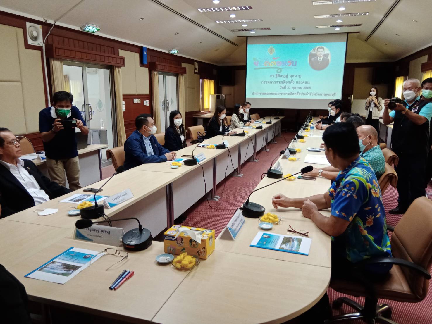 วานนี้ 21 ตุลาคม 2565 ดร.ฐิติเชฏฐ์ นุชนาฏ กรรมการการเลือกตั้ง พร้อมด้วยคณะ ได้เดินทางมาสำนักงานคณะกรรมการการเลือกตั้งประจำจังหวัดกาญจนบุรีเพื่อตรวจเยี่ยมและรับฟังข้อมูลปัญหาอุปสรรคในการปฏิบัติงานและการเตรียมความพร้อมในการจัดการเลือกตั้งสมาชิกสภาผู้แทนราษฎรของสำนักงานคณะกรรมการการเลือกตั้งประจำจังหวัดกาญจนบุรี โดยมี นายศรัณยู อาทิตยศรัณยากร ผู้อำนวยการสำนักงานคณะกรรมการการเลือกตั้งประจำจังหวัดกาญจนบุรี นายนิรันดร์ บุญราช พนักงานการเลือกตั้งชำนาญการพิเศษ นายฤทธิรงค์ แก่นจันทร์ หัวหน้ากลุ่มงานสืบสวนสอบสวนและพรรคการเมือง นายธนกฤต สนองสิทธิ์ นักประชาสัมพันธ์ชำนาญการ นายจิติพล ประดิษฐ์พันธ์ พนักงานการเลือกตั้งชำนาญการ นายธนวัฒน์ ประสมศักดิ์ พนักงานการเลือกตั้งชำนาญการ และพนักงาน เจ้าหน้าที่ ให้การต้อนรับ