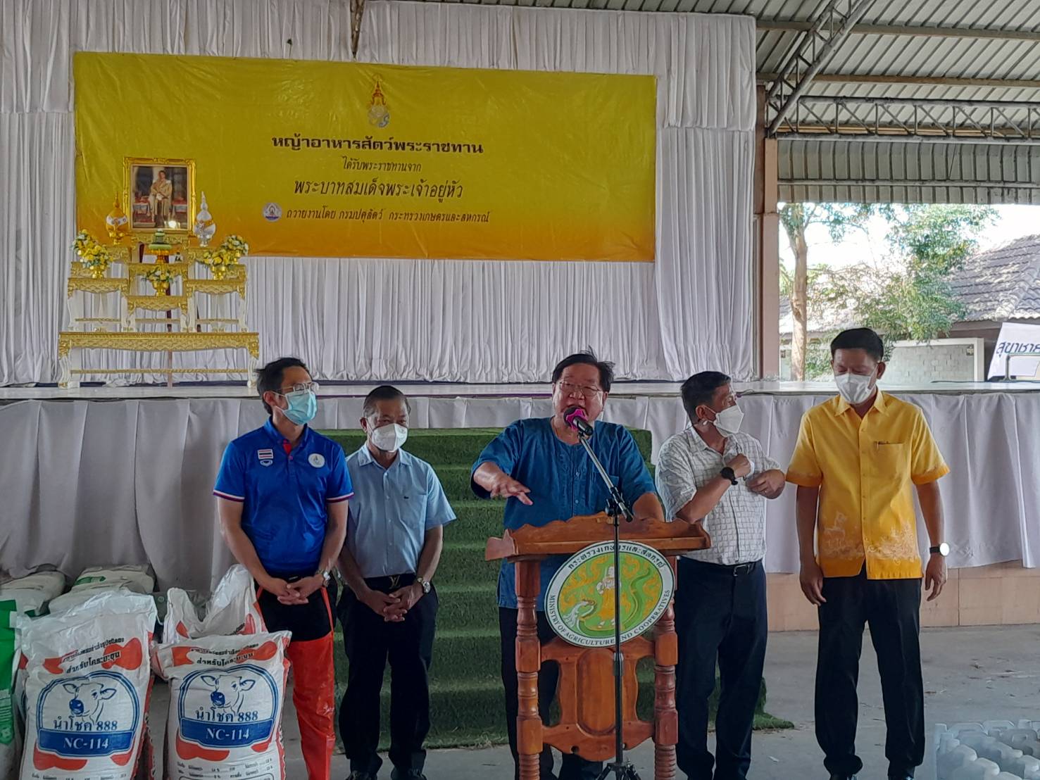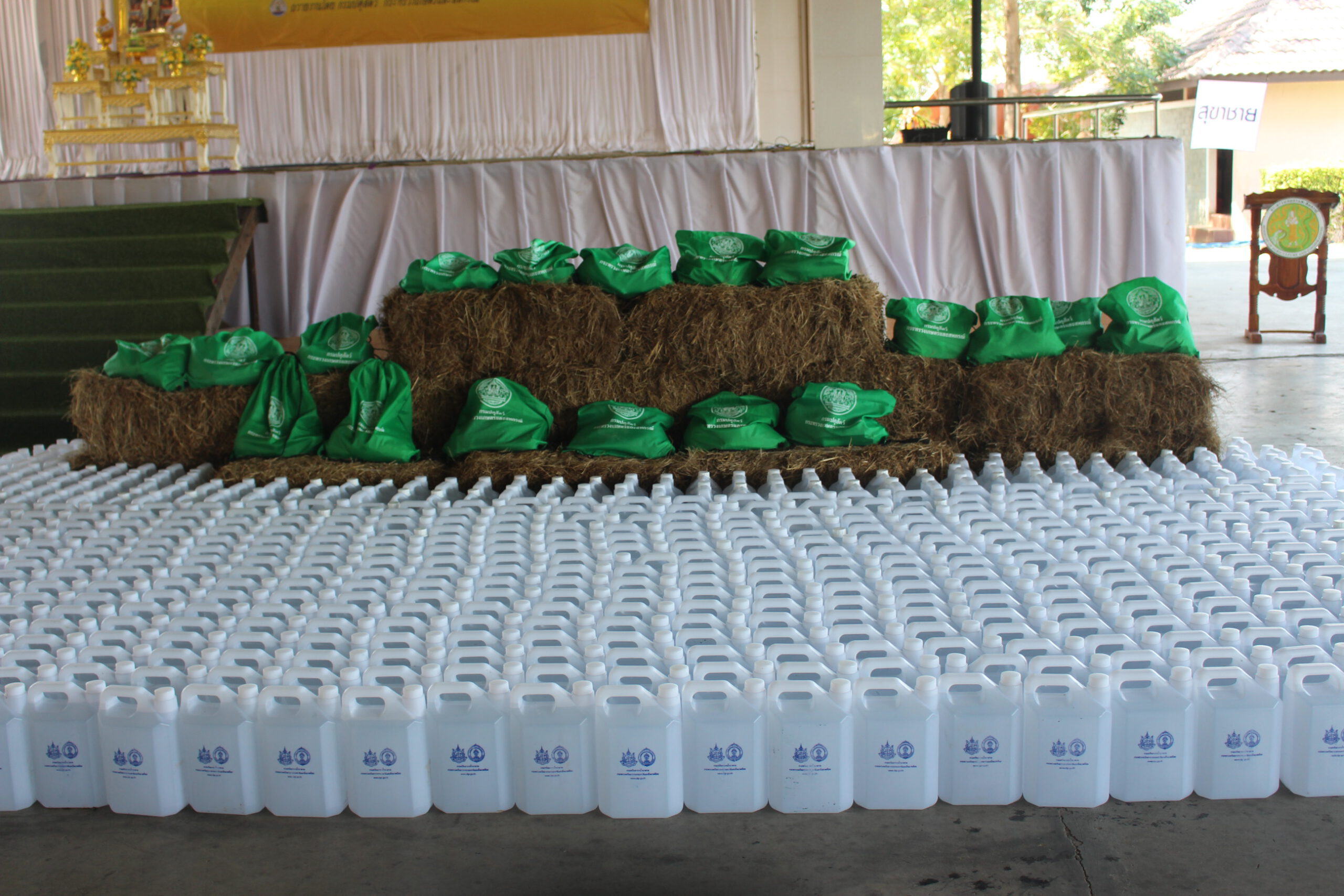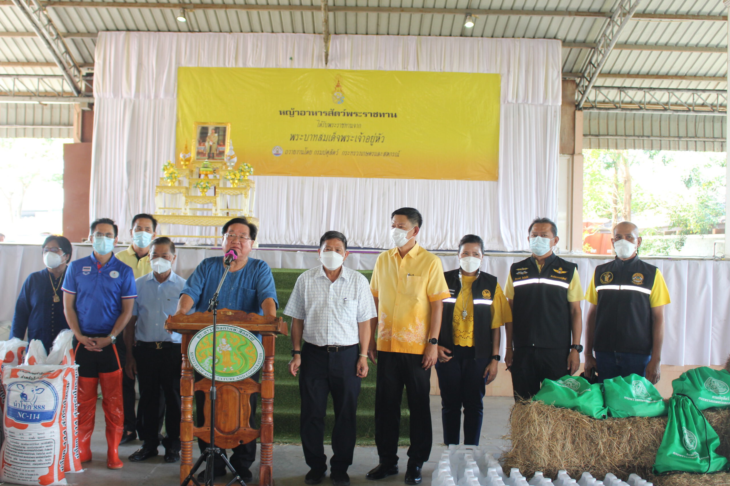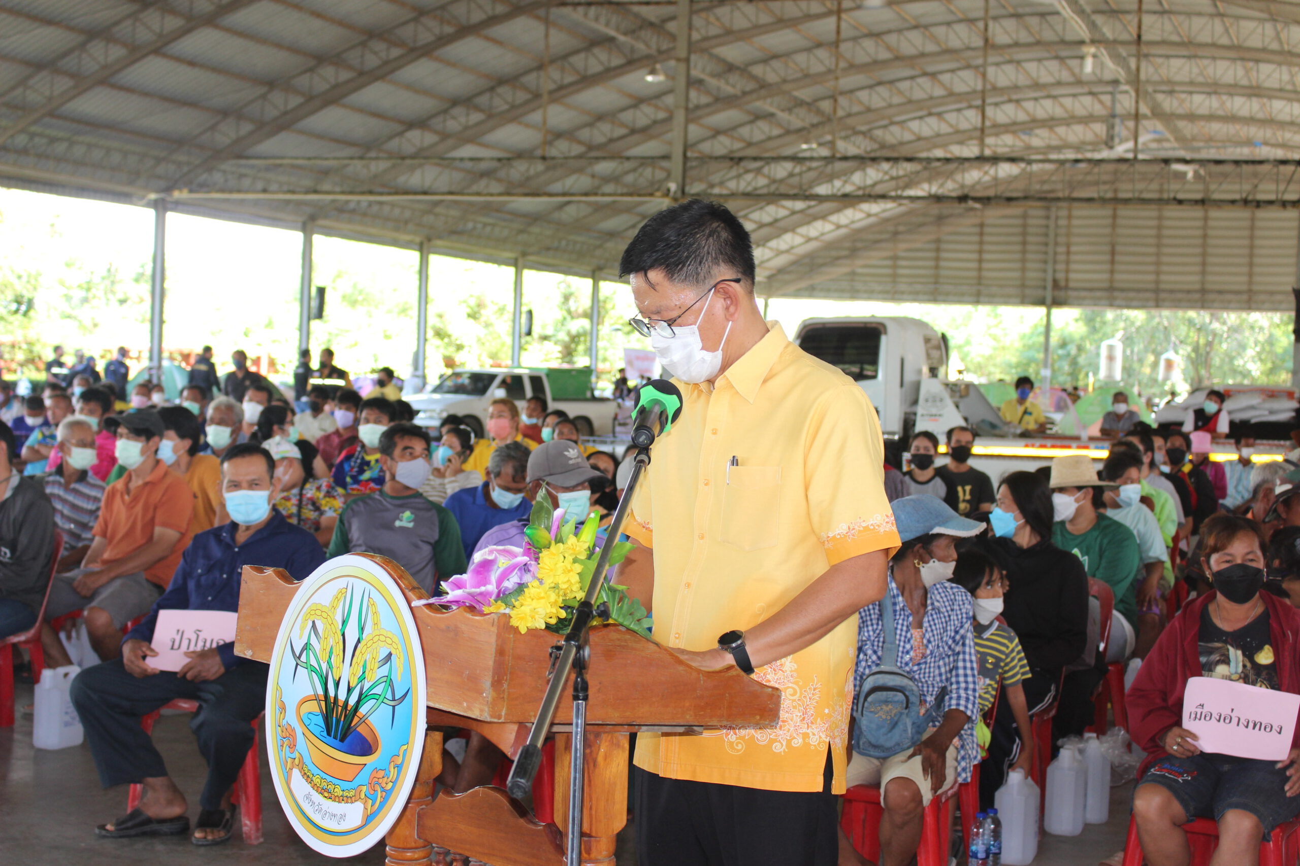 ประกอบด้วย หญ้าแพโกล่า450 ฟ่อนอาหารแมว 2,000 ก.ก.ไก่สด 500 ตัวอาหารไก่ 2,000 ก.ก. ฟางข้าว 100 ฟ่อนถุงยังชีพสัตว์ 200ถุง ณ อาคารโดม “สำนึกรักบ้านเกิด” องค์การบริหารส่วนจังหวัดอ่างทอง