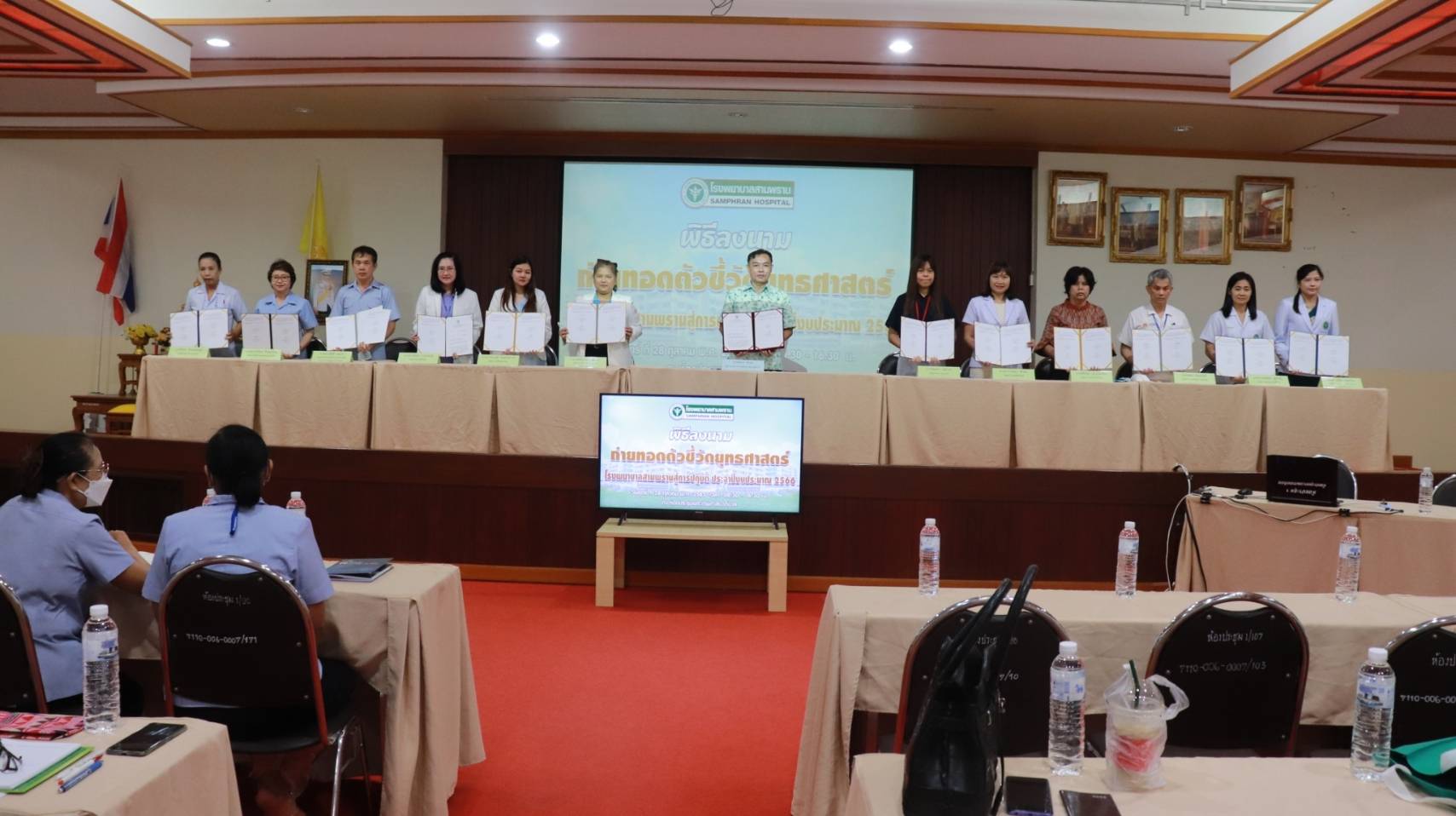 นครปฐม โรงพยาบาลสามพรานลงนามการถ่ายทอดตัวชี้วัดยุทธศาสตร์โรงพยาบาลสู่การปฏิบัติ