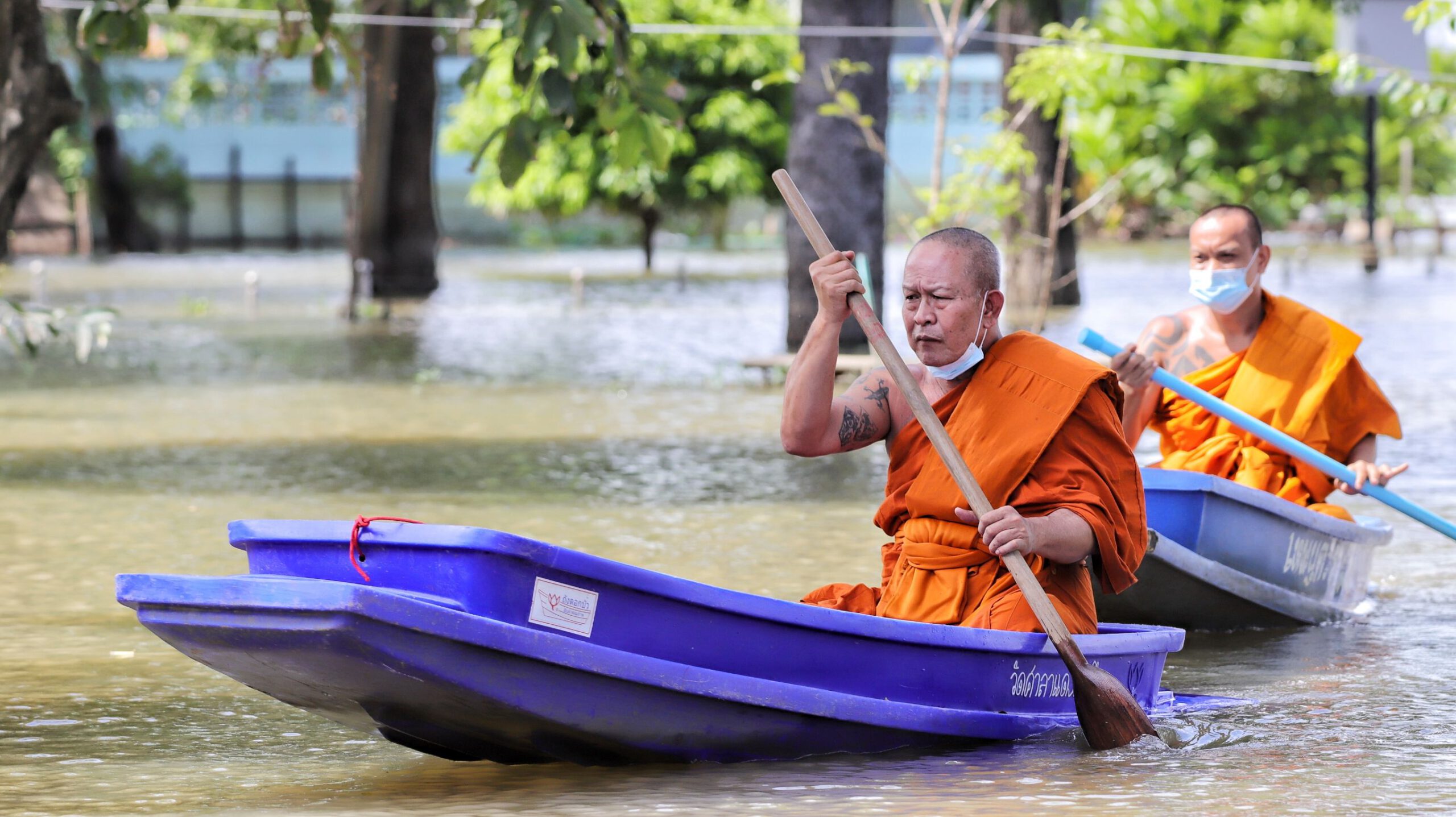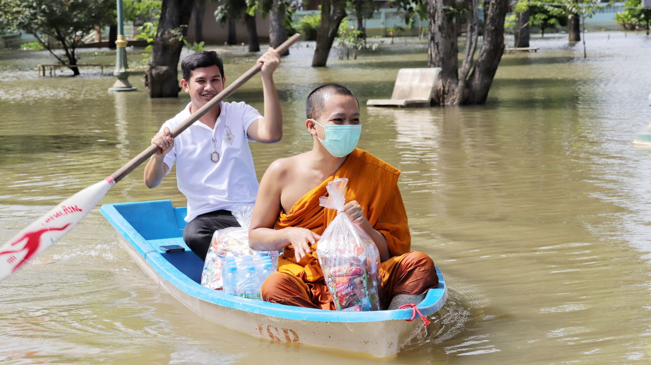 พระไม่ทิ้งโยม หลวงพ่ออ๊อดวัดสายไหมพายเรือ แจกของวัด-บ้านน้ำท่วม สามโคก ปทุมธานี