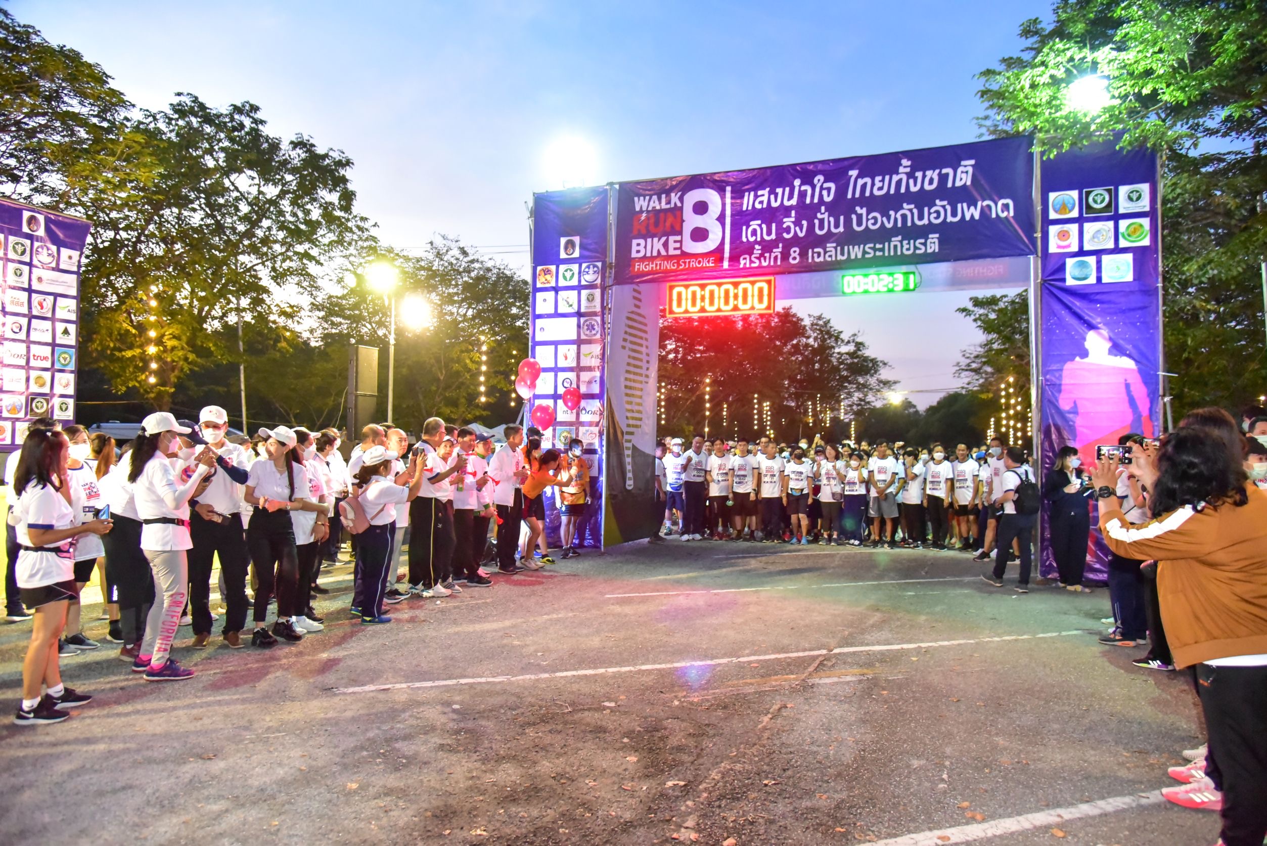 วันที่ 30 ตุลาคม 2565 ที่พุทธมณฑล อำเภอพุทธมณฑล จังหวัดนครปฐม นายสุรศักดิ์ เจริญศิริโชติ ผู้ว่าราชการจังหวัดนครปฐม เป็นประธานเปิดกิจกรรม “แสงนำใจไทยทั้งชาติ เดิน วิ่ง ปั่น ป้องกันอัมพาต ครั้งที่ 8 เฉลิมพระเกียรติ” พระบาทสมเด็จพระเจ้าอยู่หัว และสมเด็จพระนางเจ้าฯ พระบรมราชินี เนื่องในวันโรคหลอดเลือดสมองโลก ประจำปี 2565 โดยมีนางวราภรณ์ เจริญศิริโชติ นายกเหล่ากาชาดจังหวัดนครปฐม นายอำเภอพุทธมณฑล หัวหน้าส่วนราชการ เจ้าหน้าที่ และประชาชน ร่วมกอจกรรมในครั้งนี้ ซึ่งสำนักงานสาธารณสุขจังหวัดนครปฐม จัดขึ้นพร้อมกันทั้ง 76 จังหวัดทั่วประเทศและกรุงเทพมหานคร เพื่อสร้างความรู้ความเข้าใจที่ถูกต้องในการป้องกัน ดูแล และรักษาอย่างถูกต้องแก่ประชาชนทั่วไป หันมาออกกำลังกายป้องกันโรคหลอดเลือดสมอง