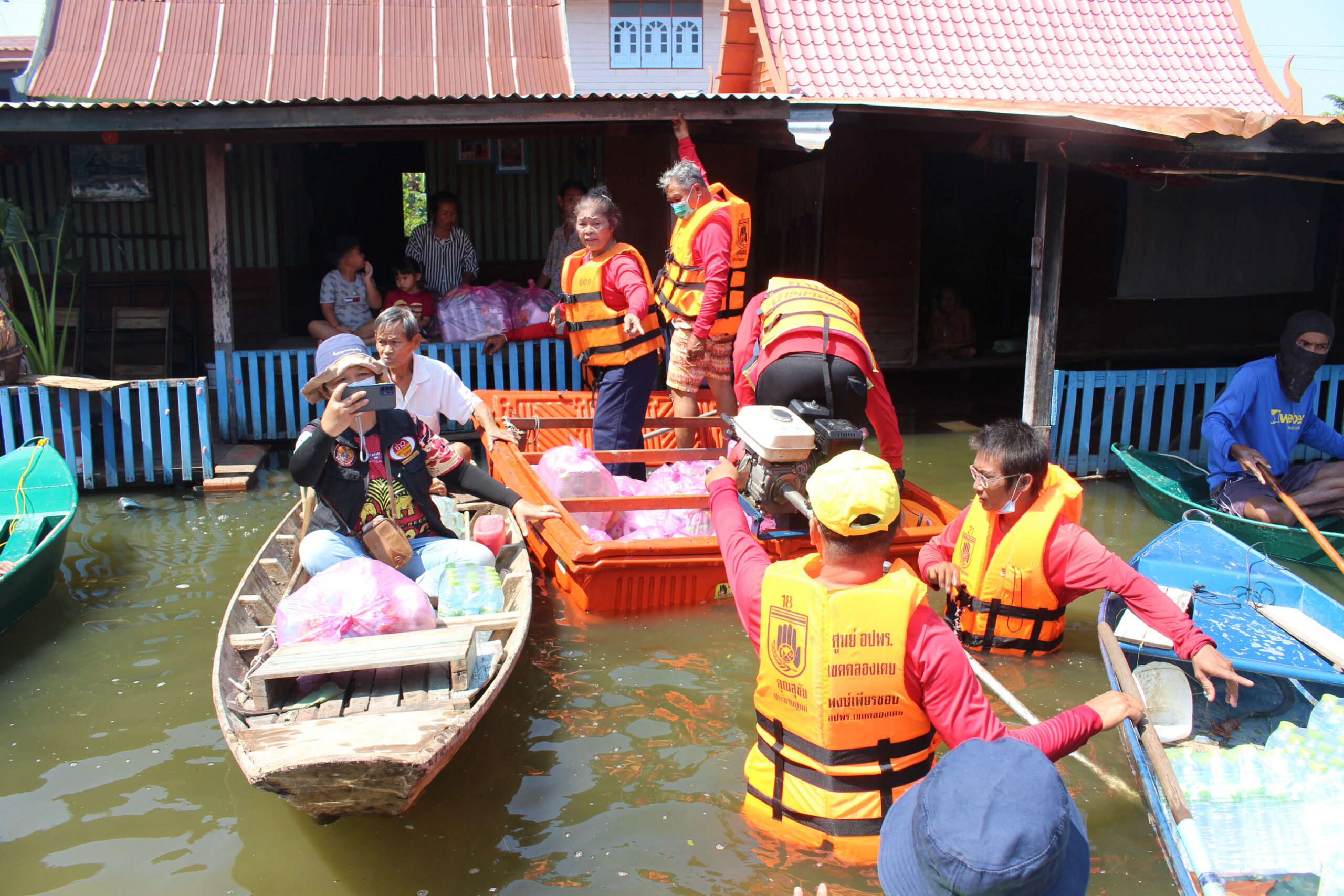 จิตอาสา”สร้างรอยยิ้ม” ปันน้ำใจช่วยผู้ประสบภัยน้ำท่วมที่อ่างทอง