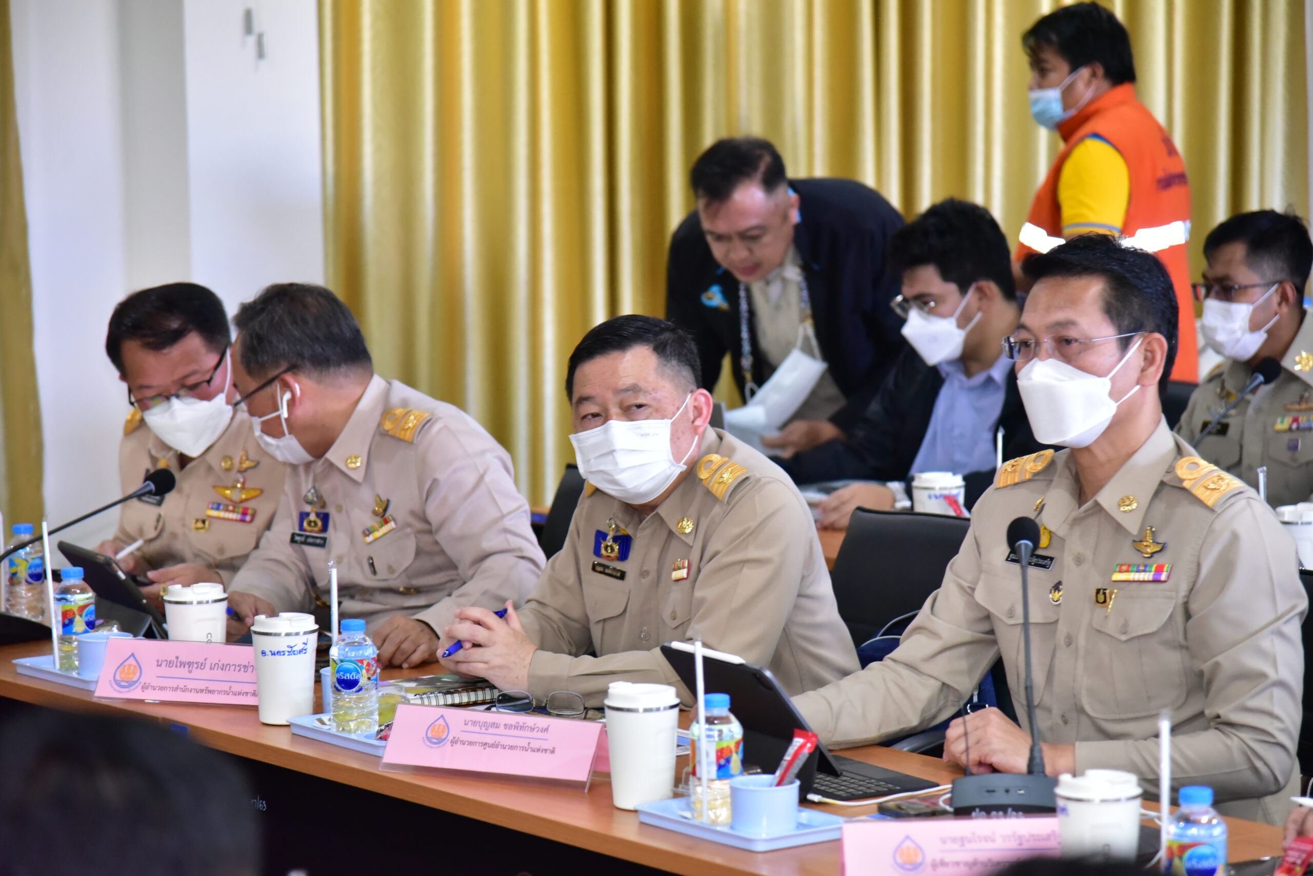 โดยมี รองอธิบดีกรมชลประทาน รองผู้ว่าฯนครปฐม รอง ผอ.รมน.จังหวัด ผอ.ศูนย์อำนวยการน้ำแห่งชาติ ผอ.สำนักทรัพยากรน้ำแห่งชาติภาค2 ผู้เชี่ยวชาญด้านวิเคราะห์สถานการณ์น้ำ ผอ.กลุ่มประสานงารนลุ่มน้ำท่าจีน ผู้อำนวยการโครงการส่งน้ำและบำรุงรักษานครปฐม ผู้อำนวยการสำนักงานชลประทานที่ 13 นายอำเภอนครชัยศรี ผู้นำท้องถิ่น และผู้แทนประชาชน ร่วมประชุมในครั้งนี้