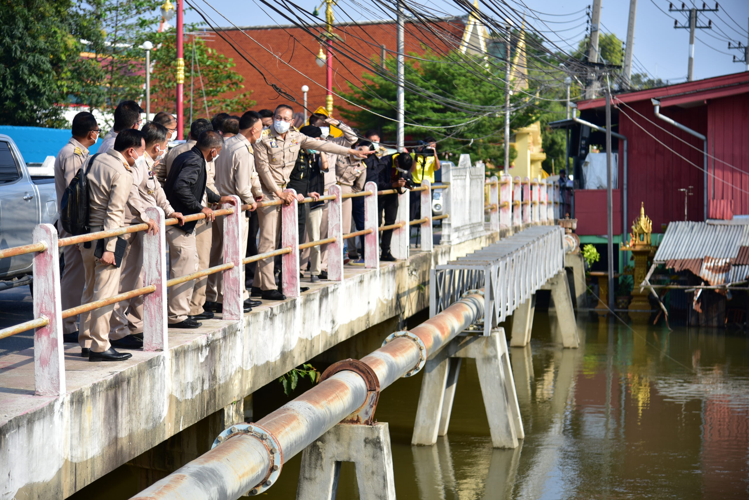 นายสุรสีห์ กิตติมณฑล เลขาธิการสำนักงานทรัพยากรน้ำแห่งชาติ กล่าวว่า สืบเนื่องจาก พลเอก ประวิตร วงษ์สุวรรณ รองนายกรัฐมนตรี ได้ห่วงพี่น้องประชาชนในพื้นที่ลุ่มน้ำท่าจีนที่ประสบปัญหาอุทกภัยมาเป็นระยะเวลานาน โดยเฉพาะพื้นที่อำเภอนครชัยศรี และอำเภอสามพราน ซึ่งอยู่ในส่วนของท้ายน้ำและการระบายน้ำค่อนข้างยากและมีพื้นที่ลุ่มต่ำ วันนี้ได้ลงพื้นที่ร่วมกับจังหวัดนครปฐม ร่วมกันหารือแก้ไขปัญหาเฉพาะหน้า ในพื้นที่ที่มีน้ำท่วมขังของอำเภอนครชัยศรี โดยเฉพาะตำบลบางกระเบา ไปถึงตำบลท่าตำหนักและวัดไทรซึ่งมีพื้นที่บริเวณกว้างพอสมควร มีประชาชนหลายร้อยหลังคาเรือนได้รับผลกระทบ จากน้ำในแม่น้ำท่าจีนเข้ามาในคลองบางแก้ว แล้วเอ่อล้นเข้ามาท่วมในพื้นที่ของประชาชน