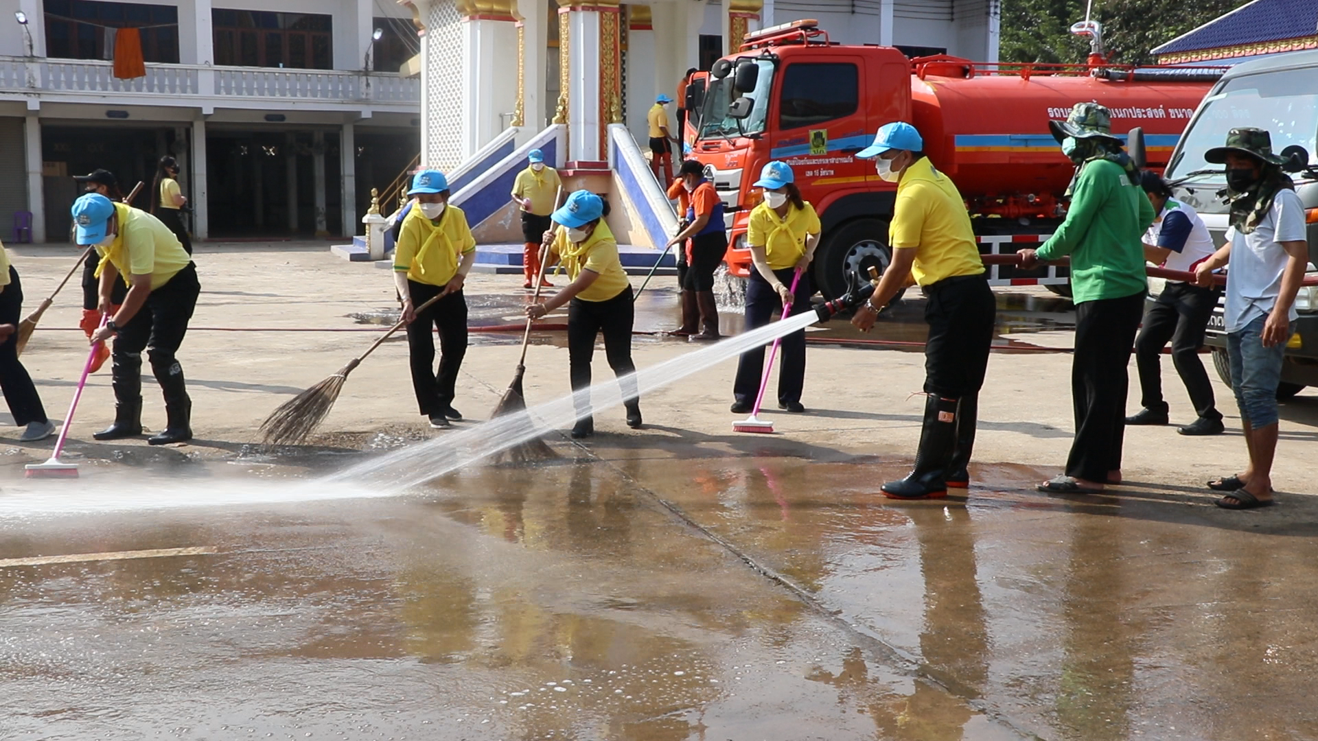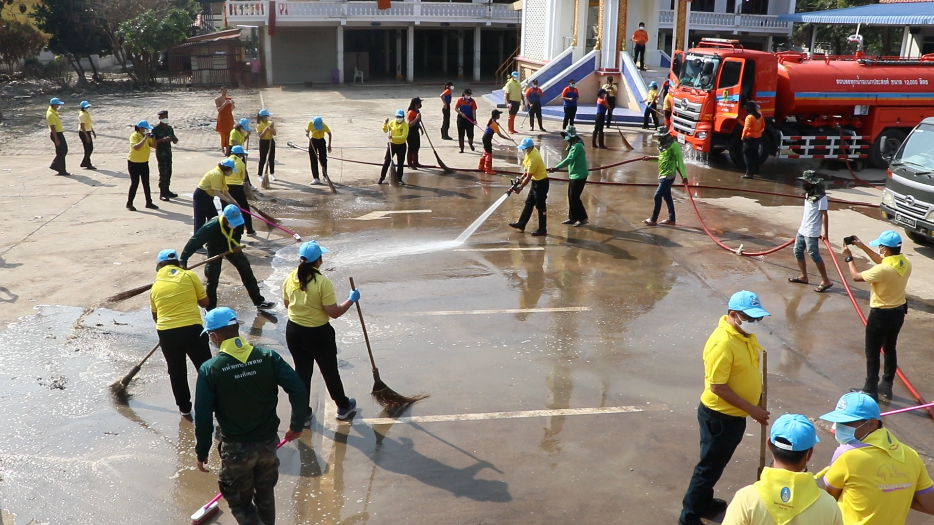 เนื่องจากที่ผ่านมาน้ำท่วมขังนานหลายวันทำให้มีคราบดินโคลนเต็มไปหมด โดยผู้ว่าราชการจังหวัดสิงห์บุรี ได้ฉีดน้ำไล่คราบโคลนแล้วช่วยกันกวาดคราบสิ่งสกปรกออก หน้าลานปูนเมรุวัดและเก็บกวาดใบไม้และกิ่งไม้ เพื่อปรับภูมิทัศน์ เร่งฟื้นฟูศาสนสถานที่ถูกน้ำท่วมให้กลับมาอยู่ในสภาพปกติ ประชาชนจะได้กลับมาร่วมพิธีกรรมทางศาสนาและจัดงานประเพณีที่สำคัญของชุมชนซึ่งวัดเป็นศูนย์ร่วมจิตใจของประชาชนอำเภออินทร์บุรี