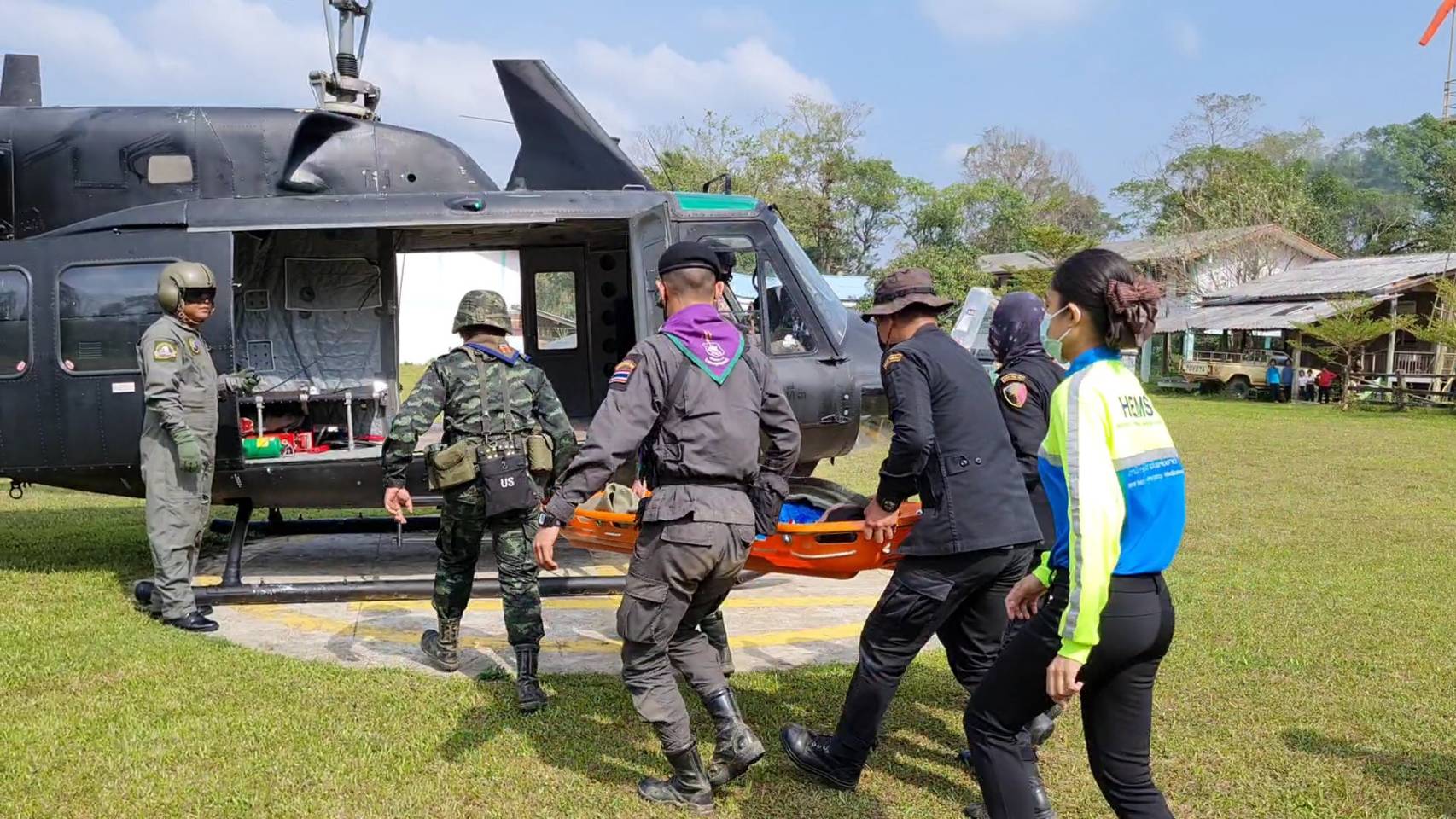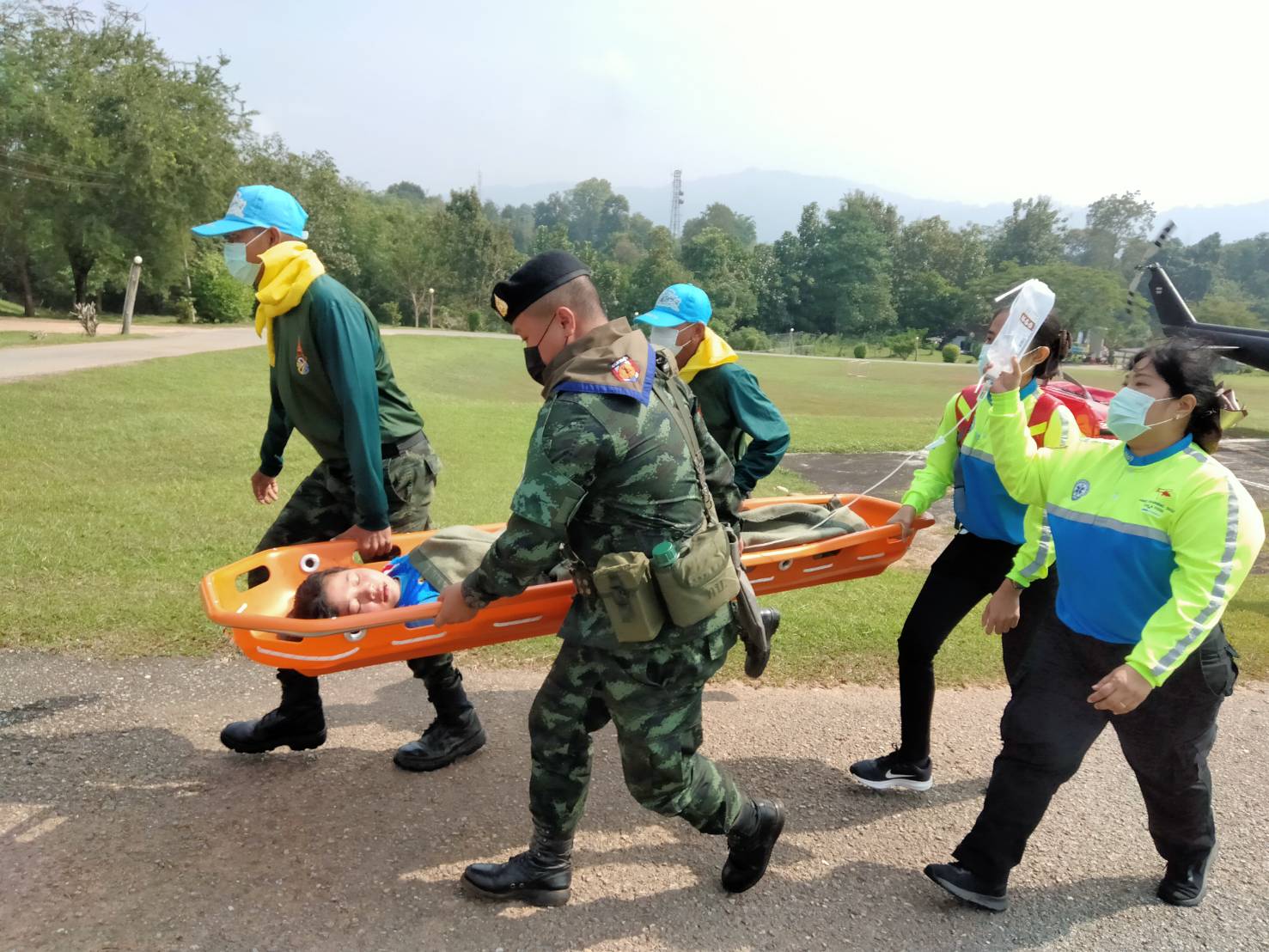 กาญจนบุรี ทหารเป็นที่พึ้งของประชาชนกองกำลังสุรสีห์ และ สถาบันการแพทย์ฉุกเฉินแห่งชาติ (สพฉ.) จัดอากาศยานช่วยประชาชน