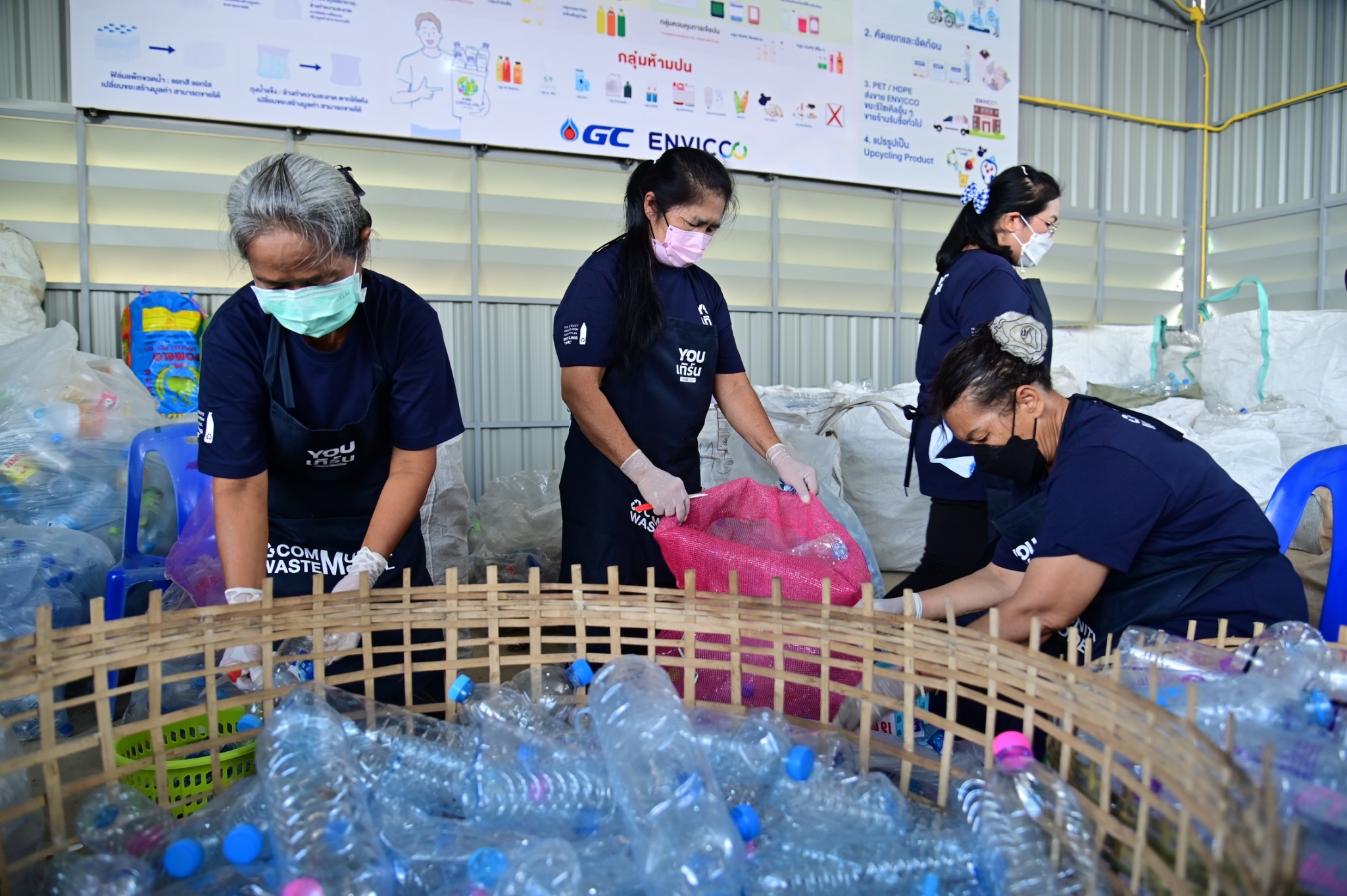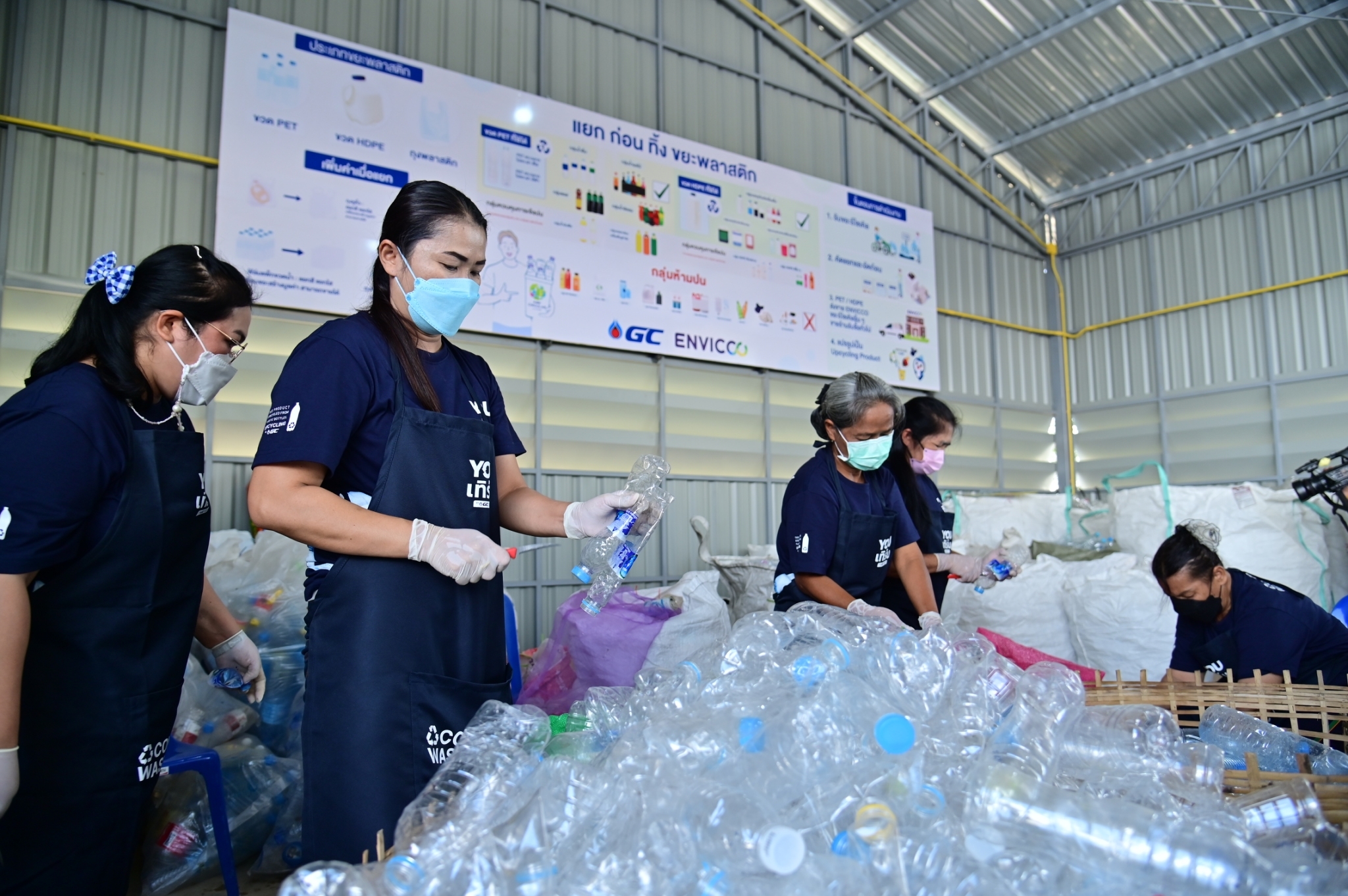 สำหรับศูนย์บริหารและจัดการขยะรีไซเคิล องค์การบริหารส่วนตำบลลำเหย ร่วมกับ สำนักงานทรัพยากรธรรมชาติและสิ่งแวดล้อมจังหวัดนครปฐม, บริษัท พีทีที โกลบอล เคมิคอล จำกัด (มหาชน) หรือ GC, บริษัท เอ็นวิคโค จำกัด และ วิสาหกิจชุมชนรวมใจขยะรีไซเคิลตำบลลำเหย เพื่อให้เป็นชุมชนต้นแบบที่มีการบริหารและจัดการขยะพลาสติกอย่างครบวงจรแห่งแรกในจังหวัดนครปฐม ตอบรับกับนโยบายของประเทศในการขับเคลื่อน BCG (Bio-Circular-Green Economy) เป็นวาระแห่งชาติ อีกทั้งยังมีมาตรการในการขับเคลื่อน BCG โดยการนำวิทยาศาสตร์ เทคโนโลยี และนวัตกรรมมาช่วยในการขับเคลื่อนเศรษฐกิจของประเทศ