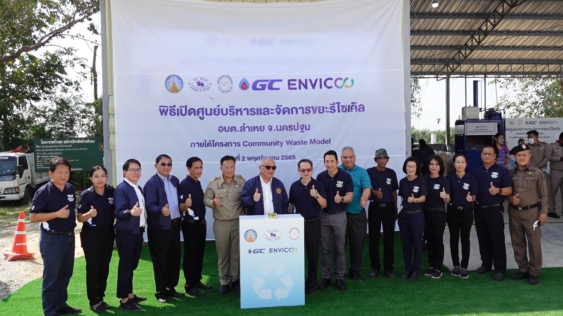 นครปฐม รองนายกรัฐมนตรีเปิดศูนย์บริหารและจัดการขยะรีไซเคิล องค์การบริหารส่วนตำบลลำเหย อำเภอดอนตูม จังหวัดนครปฐม เพื่อให้เป็นชุมชนต้นแบบที่มีการบริหารจัดการขยะพลาสติกอย่างครบวงจร แห่งแรกในจังหวัดนครปฐม