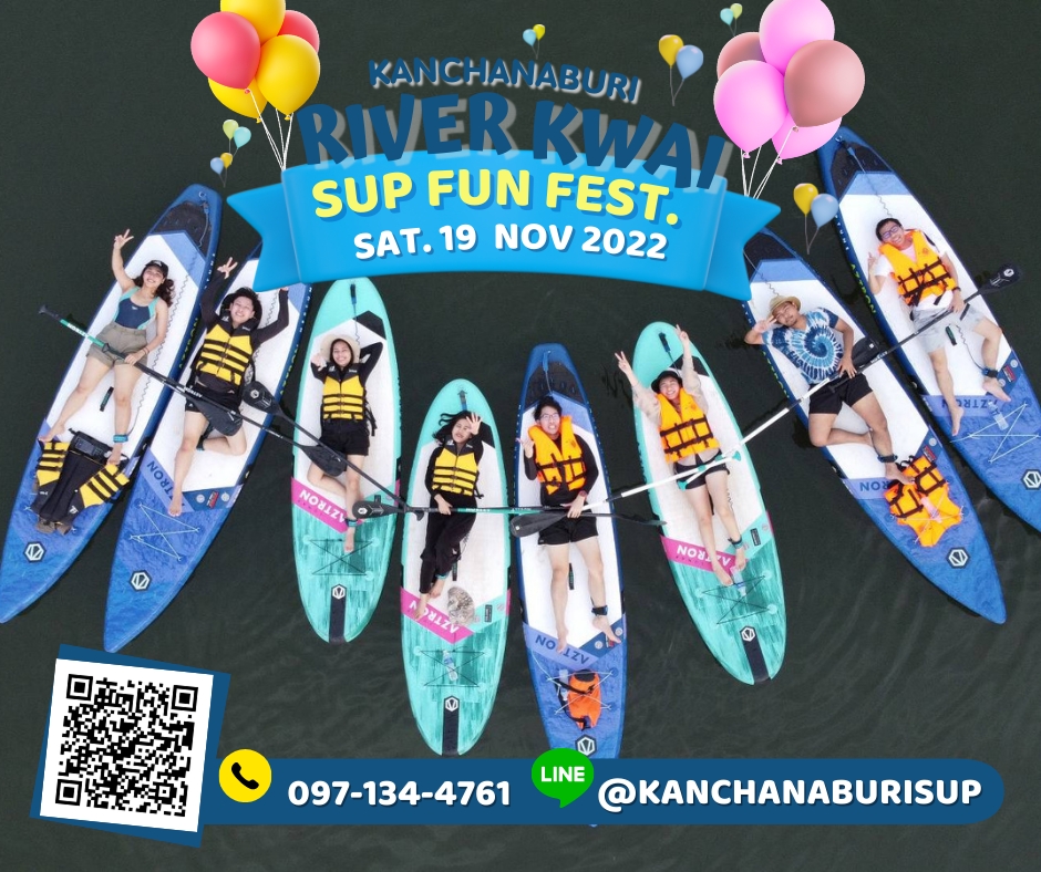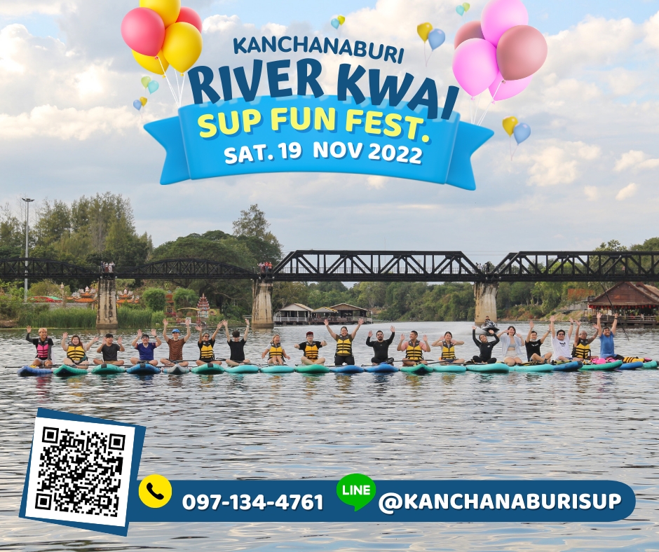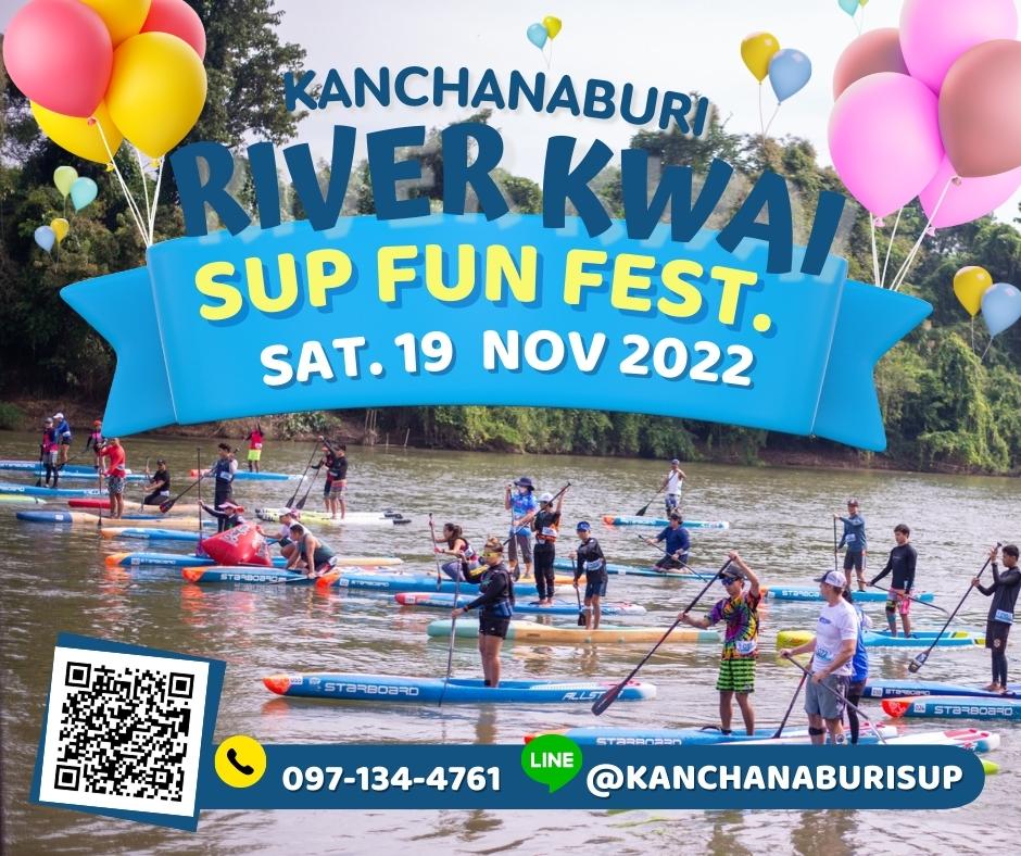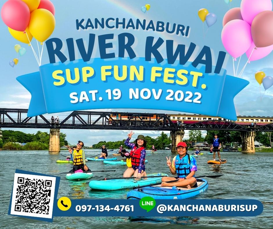 กิจกรรม River Kwai SUP Fun Fest จัดขึ้นครั้งแรกในลักษณะของมหกรรมกระดานยืนพายและเรือพายท่องเที่ยวที่เป็นมิตรกับสิ่งแวดล้อม เปิดโอกาสให้ผู้สนใจทุกกลุ่มเพศและวัยได้ร่วมประสบการณ์พายเพลิดเพลินในแม่น้ำแควใหญ่ พายร่วมกับสัตว์เลี้ยงแสนรัก หรือแข่งขันความเร็ว ระยะ 5 กิโลเมตร แบ่งประเภทชาย – หญิง ตามกลุ่มอายุ จุดเด่น คือ เป็นการพายซับบอร์ดกับเพื่อนร่วมทางจำนวนมาก และบันทึกภาพกับสะพานข้ามแม่น้ำแควซึ่งเป็นสถานที่ท่องเที่ยวสำคัญ และเป็นแลนด์มาร์กของจังหวัดกาญจนบุรี ที่จะหาโอกาสได้ไม่ง่ายนัก สำหรับกลุ่มผู้ชื่นชอบการพายคายัคหรือแคนู ก็สามารถเข้าร่วมสนุกกับกิจกรรมในครั้งนี้ได้เช่นกัน ก่อนการพายจริง มีการสอนวิธีการพายที่ถูกต้องให้กับนักพายมือใหม่โดยครูฝึกที่มีความรู้ความชำนาญเฉพาะทาง เพื่อให้สมาชิกได้รับความรู้และมีความมั่นใจในการเข้าร่วมกิจกรรม ที่พลาดไม่ได้ “น้องปลื้ม” เด็กชายณฐภัทร โกแมน นักกีฬากระดานยืนพายแชมป์ประเทศไทย ปี พ.ศ. 2564 จะมาเข้าร่วมงานด้วย นอกจากนั้น ยังมีการออกบูธจำหน่ายอาหารและเครื่องดื่ม นิทรรศการของกลุ่มผู้ผลิตบอร์ด ในบรรยากาศแคมปิ้งริมน้ำแควใหญ่