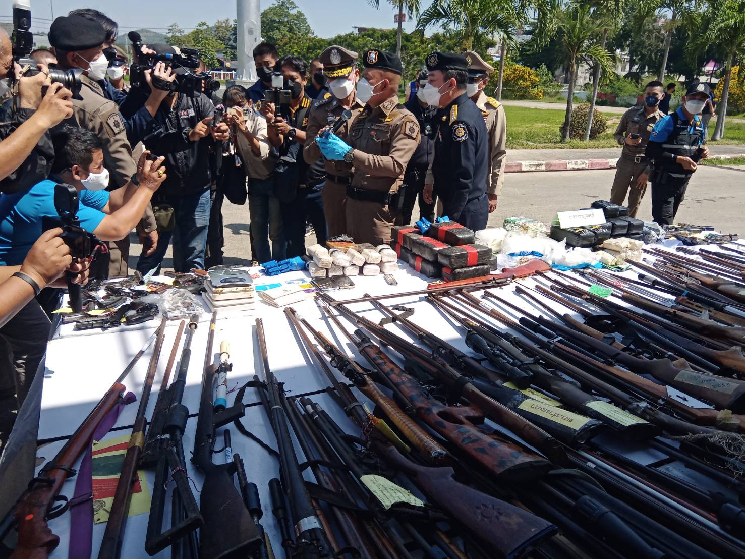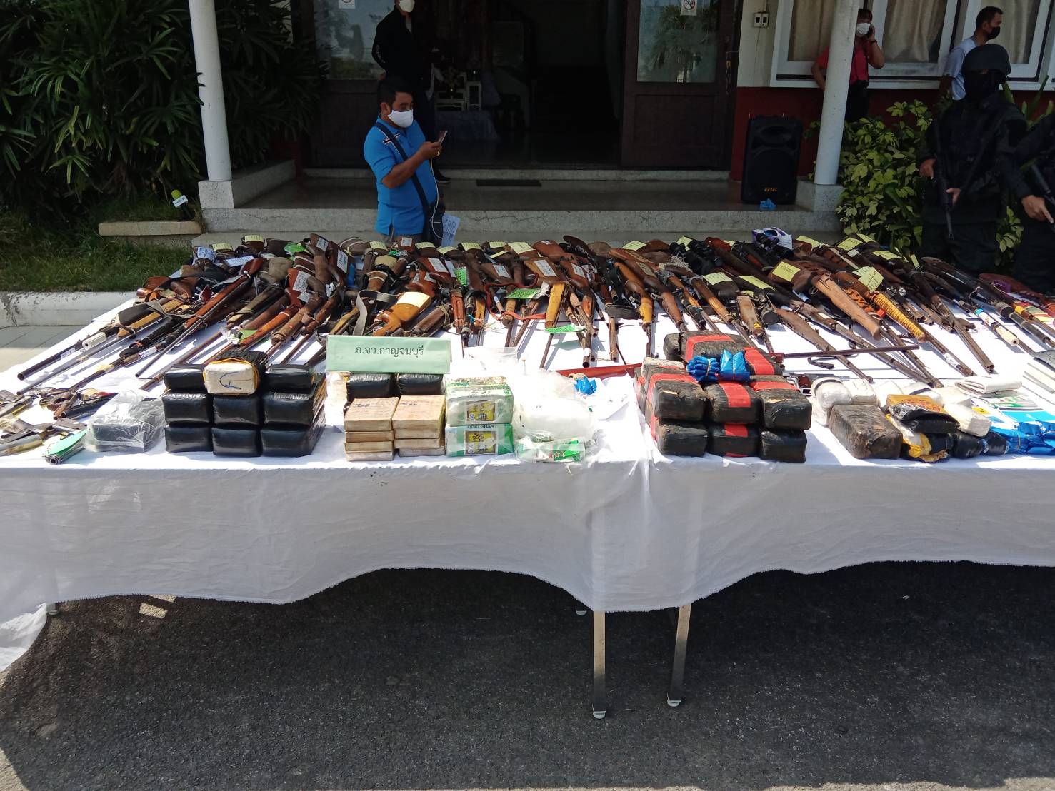 กาญจนบุรี ผบช.ภาค 7แถลงข่าว จับผู้ค้ายาเสพติดรายใหญ่ ทำแบบรวมมิตรมีทุกชนิด!! ผบช.ภาค 7 พร้อมด้วยฝ่ายปกครอง จนท. ปปส.ภาค 7 ทหารกองกำลังสุรสีห์ ร่วมแถลงข่าวจับกุม 2 สามีภรรยา ของกลางยาบ้ากว่า 3 แสนเม็ด ขยายผลพบทั้ง ไอซ์-เค ยึดทรัพย์กว่า 1 ล้าน แก๊งค้ายาเสพติด อาวุธปืนอีกจำนวนมาก