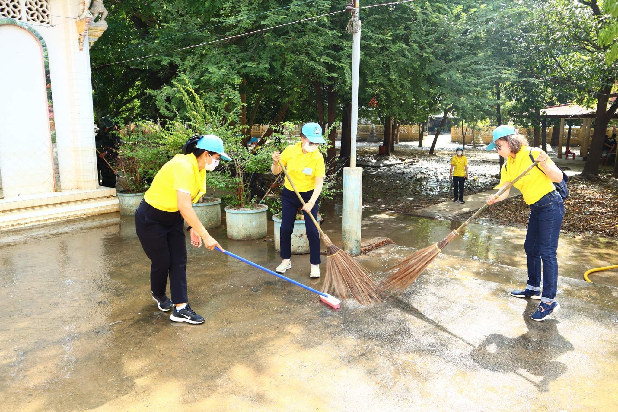 ร่วมแรงร่วมใจกันแต่งกายชุดจิตอาสา เพื่อร่วมกิจกรรมจิตอาสาพัฒนา ล้าง ทำความสะอาด เนื่องจากสถานการณ์น้ำท่วม ส่งผลกระทบทั่วบริเวณของวัดโดยรอบ