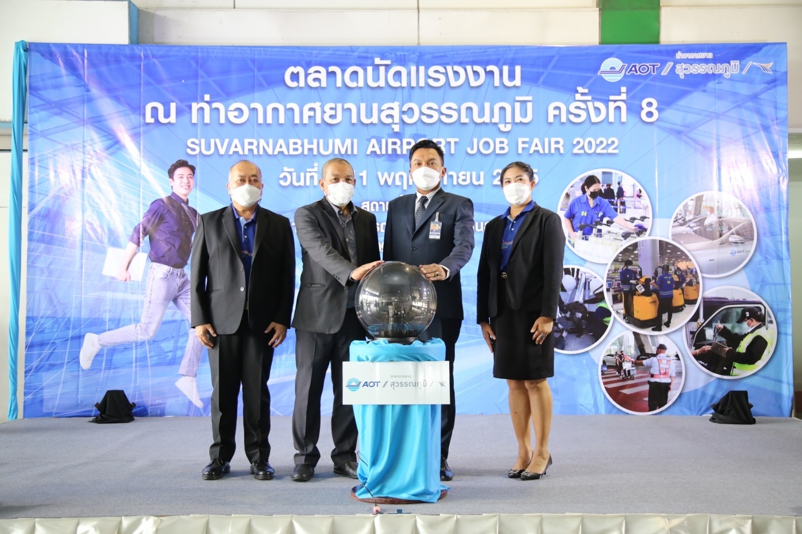 *****เมื่อเวลา 10.00 น.วันที่ 9 พ.ย.2565 นายรัชชาณล กิตติพัทธ์ รองผู้อำนวยการท่าอากาศยานสุวรรณภูมิ (สายปฏิบัติการ 2) บริษัท ท่าอากาศยานไทย จำกัด (มหาชน) (ทอท.) พร้อมด้วย นายสิทธิชัย วารีชนานนท์ หัวหน้าจัดหางานจังหวัดสมุทรปราการ ร่วมเป็นประธานในพิธีเปิดโครงการตลาดนัดแรงงาน ณ ทสภ. ครั้งที่ 8 ประจำปี 2565 หรือ Suvarnabhumi Airport Job fair 2022 โดยมีผู้บริหาร ทสภ. และบริษัทผู้ประกอบการเข้าร่วมในพิธี ทั้งนี้โครงการฯ จะจัดขึ้นระหว่างวันที่ 9 – 11 พฤศจิกายน 2565 ตั้งแต่เวลา 09.00 – 15.00 น. ณ ศูนย์การขนส่งสาธารณะ ทสภ.