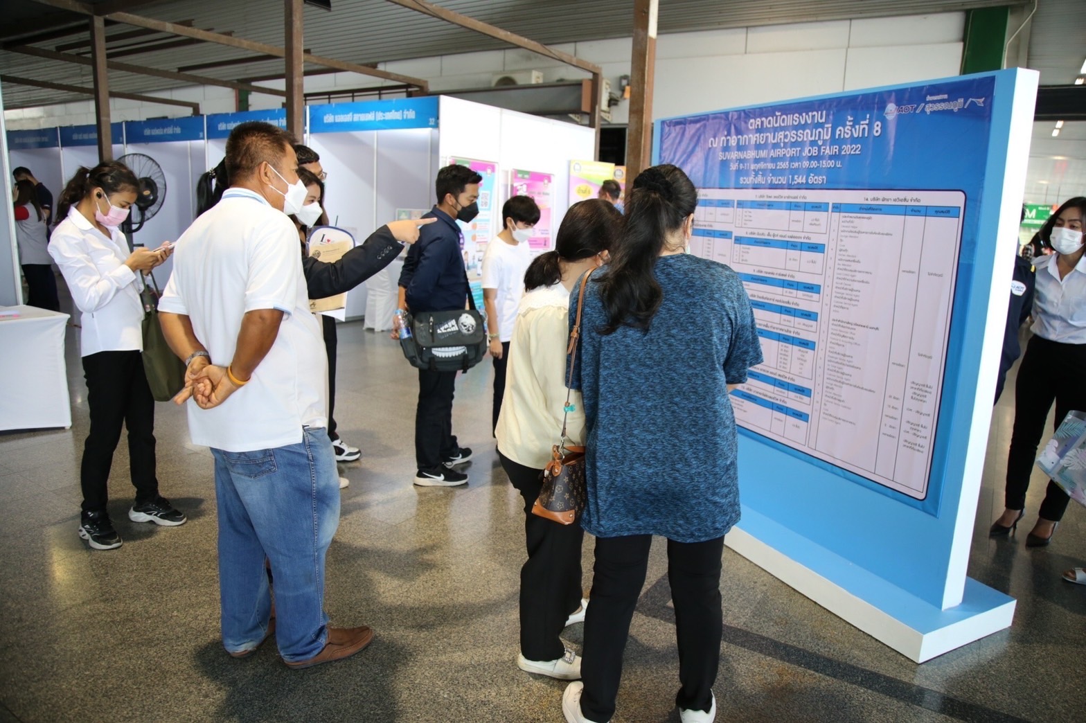 *****นายรัชชาณล กล่าวว่า โครงการตลาดนัดแรงงาน ณ ทสภ. ครั้งที่ 8 หรือ Suvarnabhumi Airport Job fair 2022 จัดขึ้นโดยมีวัตถุประสงค์เพื่อให้ประชาชนที่อาศัยในชุมชนโดยรอบ ทสภ. ทั้งในเขตลาดกระบัง กรุงเทพมหานครและจังหวัดสมุทรปราการ รวมถึงประชาชนทั่วไปในจังหวัดอื่น ๆ ได้มีโอกาสสมัครงานกับบริษัทผู้ประกอบการภายใน ทสภ. ซึ่งในปีนี้สถานการณ์ของประเทศไทยกลับมาใกล้เคียงกับช่วงก่อนการระบาดของโรคโควิด – 19 ธุรกิจการบินเริ่มฟื้นตัวและมีความต้องการในการจ้างแรงงานมากขึ้น โดยในปีนี้ ทสภ. ได้เชิญบริษัทชั้นนำกว่า 30 บริษัท อาทิ บริษัท รักษาความปลอดภัย ท่าอากาศยานไทย จำกัด บริษัท รักษาความปลอดภัย การ์ดฟอร์ซ อะวิเอชั่น จำกัด บริษัท เอ แอนด์ พี เมนทิแนนซ์ เซอร์วิส (ประเทศไทย) จำกัด บริษัท บางกอกไฟล์ทเซอร์วิส จำกัด บริษัท วิงสแปน เซอร์วิสเซส จำกัด บริษัท สกาย ไอซีที จำกัด (มหาชน) ฯลฯ มาออกบูธรับสมัครงาน โดยเปิดรับตั้งแต่วุฒิการศึกษาระดับประถมศึกษาจนถึงปริญญาโท ในตำแหน่งต่าง ๆ เช่น วิศวกรไฟฟ้า พนักงานบริการลูกค้าภาคพื้น พนักงานคลังสินค้า พนักงานตรวจค้นผู้โดยสาร พนักงานรักษาความปลอดภัย ช่างเทคนิค เป็นต้น รวมแล้วกว่า 1,500 อัตรา นอกจากนี้ยังได้รับความร่วมมือจากจัดหางานจังหวัดสมุทรปราการมาออกบูธแนะนำการใช้บริการหางานออนไลน์บนแพลตฟอร์มไทยมีงานทำ Doe.go.th ด้วย