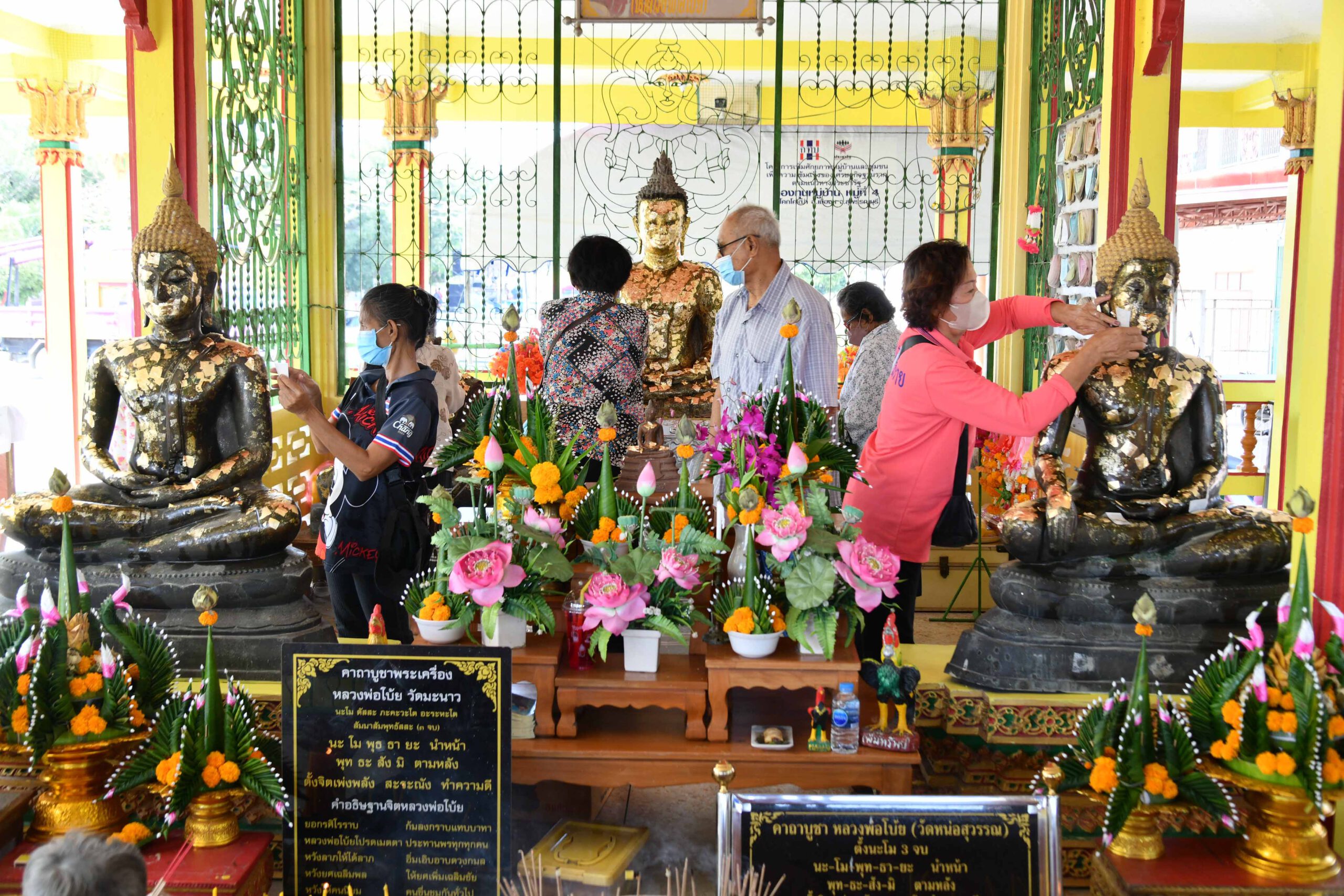 หลังจากวันนั้นผ่านมาจนถึงปี พศ.2501 ช่างก็ได้หล่อพระเสร็จสมบูรณ์โดยหลวงพ่อโบ้ยเมตตาหล่อพระพุทธรูปให้ทางหลวงพ่อสมบุญ 3องค์ด้วยกัน หลังจากที่เสร็จแล้วทางหลวงพ่อสมบุญพร้อมด้วยชาวบ้านสามหน่อก็ได้ไปอัญเชิญพระพุทธรูปจากวัดมะนาว ลงเรือล่องมาเรื่อยๆจนถึงวัดหน่อสุวรรณและได้ประดิษฐานไว้หน้าวัดเพื่อให้ชาวบ้านและประชาชนทั่วไปได้สักการะ พร้อมทั้งจัดงานประเพณีปิดทองไหว้พระหลวงพ่อพุทธมหาราช และจัดแข่งเรือพายพื้นบ้านหลังคืนวันลอยกระทงทุกๆปี สืบต่อกันมาจนถึงปัจจุบัน