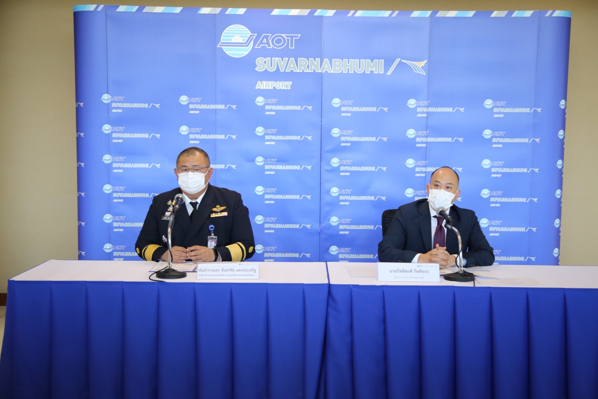 *****เมื่อเวลา 15.00 น.วันที่ 11 พฤศจิกายน 2565 นายกิตติพงศ์ กิตติขจร ผู้อำนวยการท่าอากาศยานสุวรรณภูมิ บริษัท ท่าอากาศยานไทย จำกัด (มหาชน) (ทอท.) พร้อมด้วย พันตำรวจเอก จันทร์ชัย แดงประเสริฐ รองผู้บังคับการตรวจคนเข้าเมือง 2 กองบังคับการตรวจคนเข้าเมือง 2 (บก.ตม.2) ร่วมกันแถลงข่าวความร่วมมือในการแก้ไขปัญหาความคับคั่งบริเวณหน้าจุดตรวจหนังสือเดินทางขาเข้าระหว่างประเทศ ณ บริเวณหน้าห้อง CIP อาคารผู้โดยสาร ท่าอากาศยานสุวรรณภูมิ (ทสภ.)
