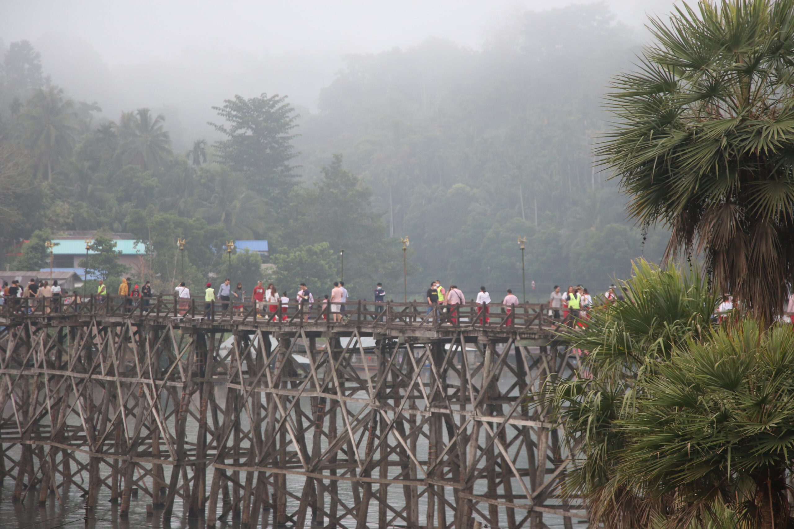 กาญจนบุรี ท่องเทียวสังขละบุรีคึกคักนักท่องเที่ยวแน่นสะพานฯ ขณะกิจกรรมอบรมเด็กบนสะพานฯเริ่มแล้ว
