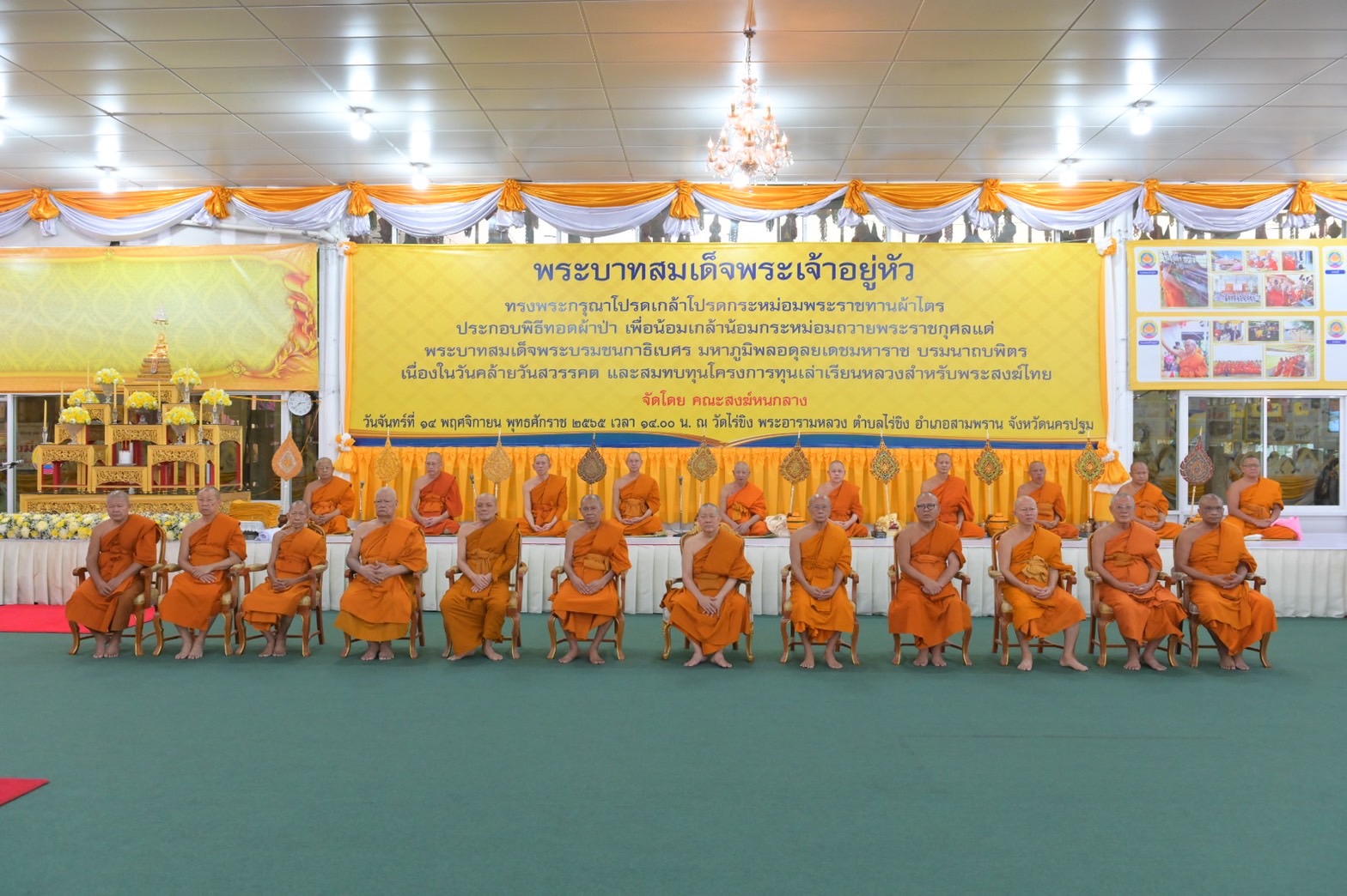 พระบาทสมเด็จพระเจ้าอยู่หัว ทรงพระกรุณาโปรดเกล้าโปรดกระหม่อมพระราชทานผ้าไตร ประกอบพิธีทอดผ้าป่า เพื่อน้อมเกล้าน้อมกระหม่อมถวายพระราชกุศลแด่ พระบาทสมเด็จ พระบรมชนกาธิเบศร มหาภูมิพลอดุลยเดชมหาราช บรมนาถบพิตร เนื่องในวันคล้ายวันสวรรคต และสมทบทุนโครงการทุนเล่าเรียนหลวงสำหรับพระสงฆ์ไทย