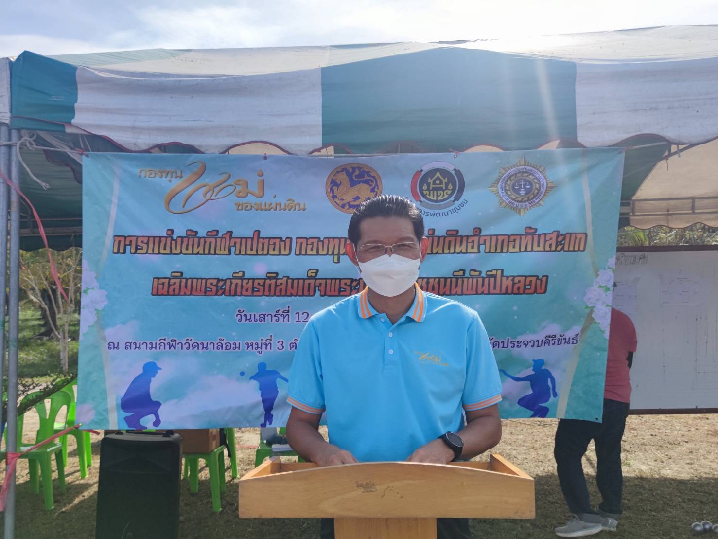 วันที่ 12 พ.ย. 65 ที่สนามกีฬาวัดนาล้อม หมู่ที่.3 ตำบลเขาล้าน อำเภอทับสะแก จังหวัดประจวบคีรีขันธ์ นายดำรงค์ มากระจัน พัฒนาการจังหวัดประจวบคีรีขันธ์ เป็นประธานในพิธีเปิดการแข่งขันกีฬาเปตอง กองทุนแม่ของแผ่นดินอำเภอทับสะแก เพื่อเฉลิมพระเกียรติ สมเด็จพระบรมราชชนนีพันปีหลวง
