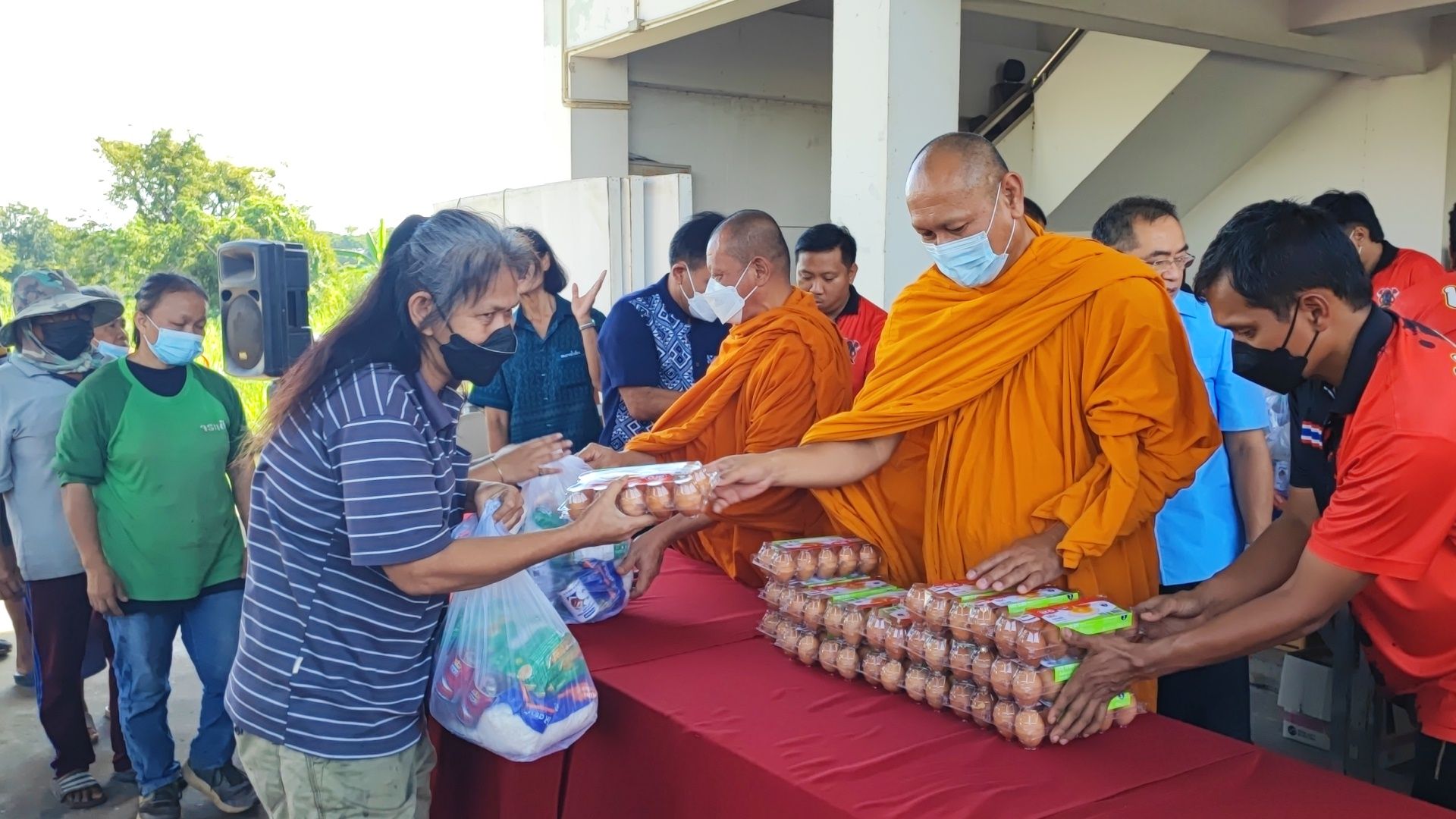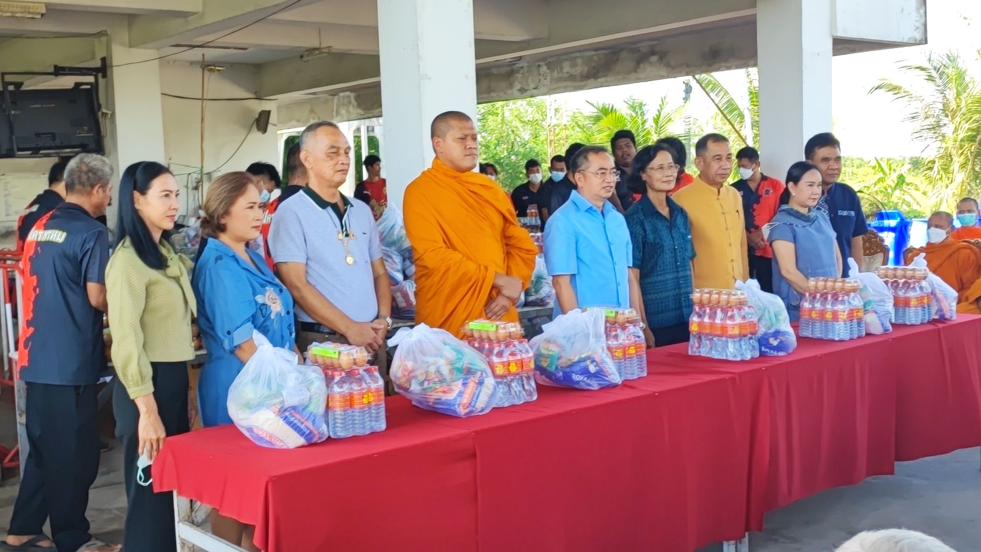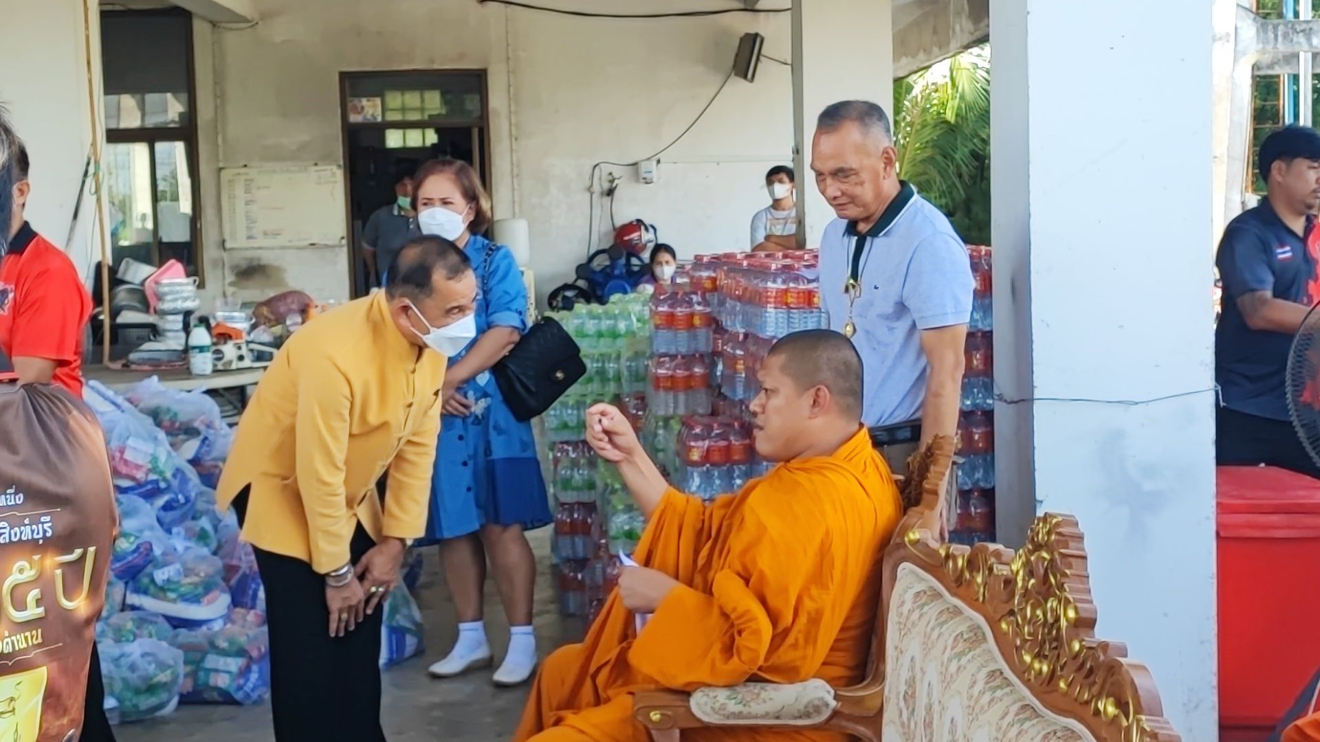ผู้ช่วยเจ้าอาวาสวัดระฆังพร้อมผู้ใหญ่ใจดีนำของมามอบให้แก่ชาวตำบลบางน้ำเชี่ยว 400 ชุด