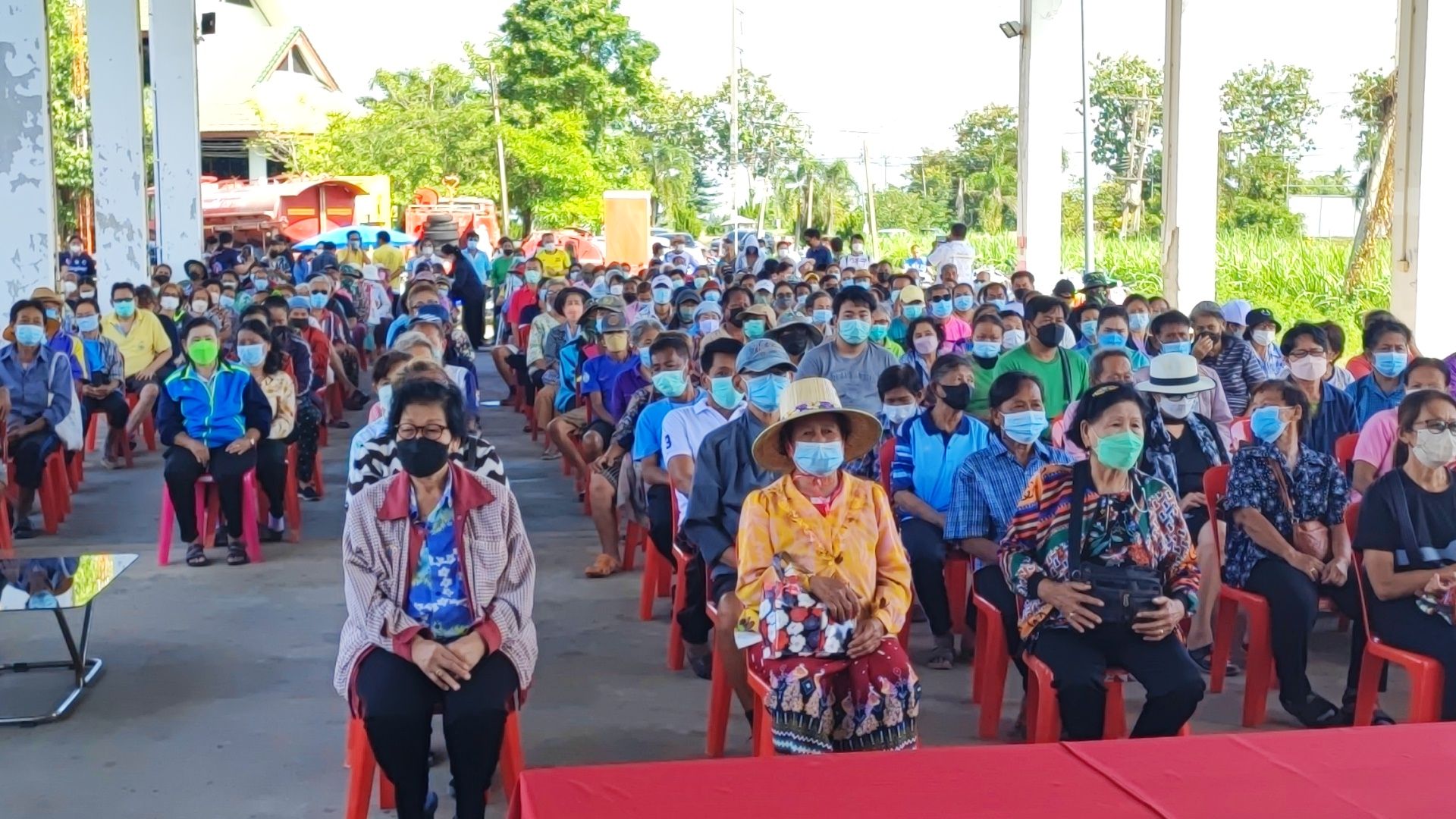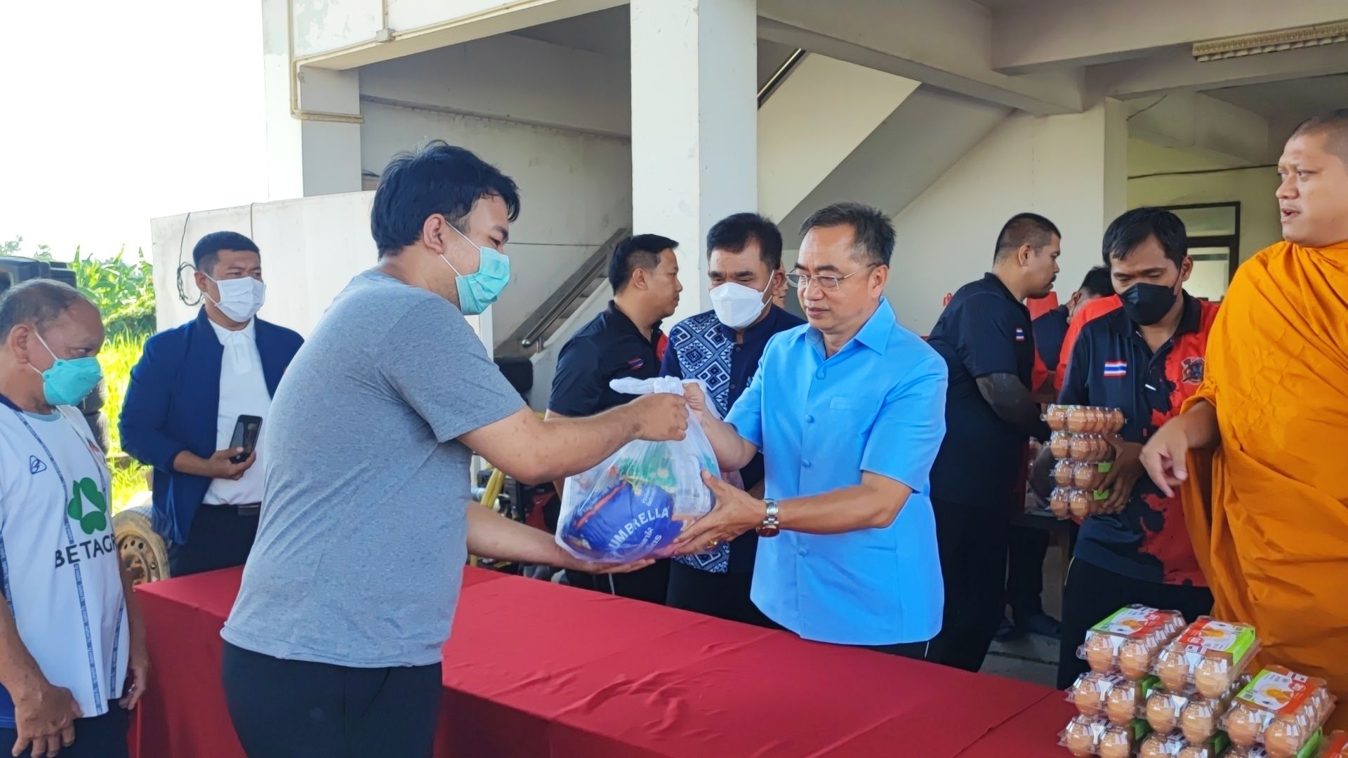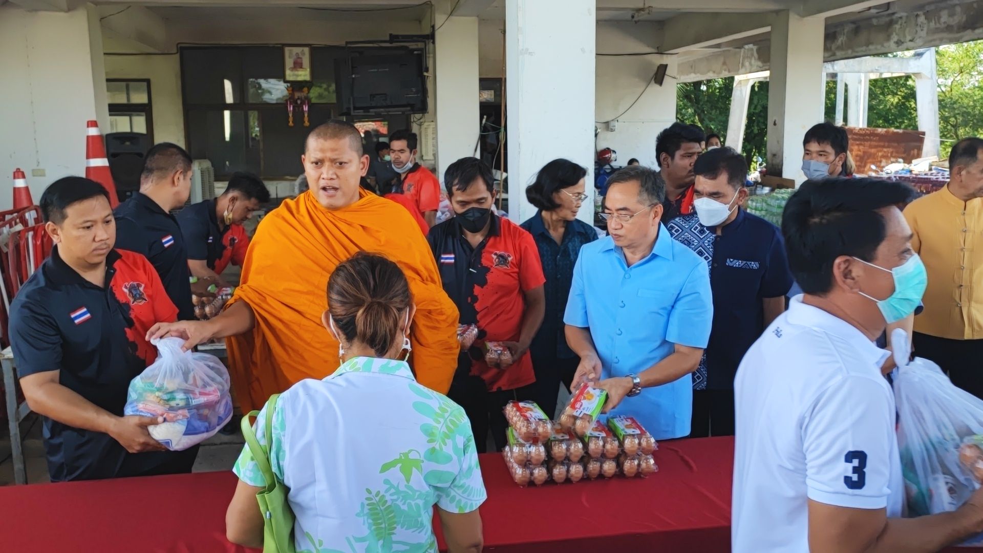 ผู้ช่วยเจ้าอาวาสวัดระฆังพร้อมผู้ใหญ่ใจดีนำของมามอบให้แก่ชาวตำบลบางน้ำเชี่ยว 400 ชุด