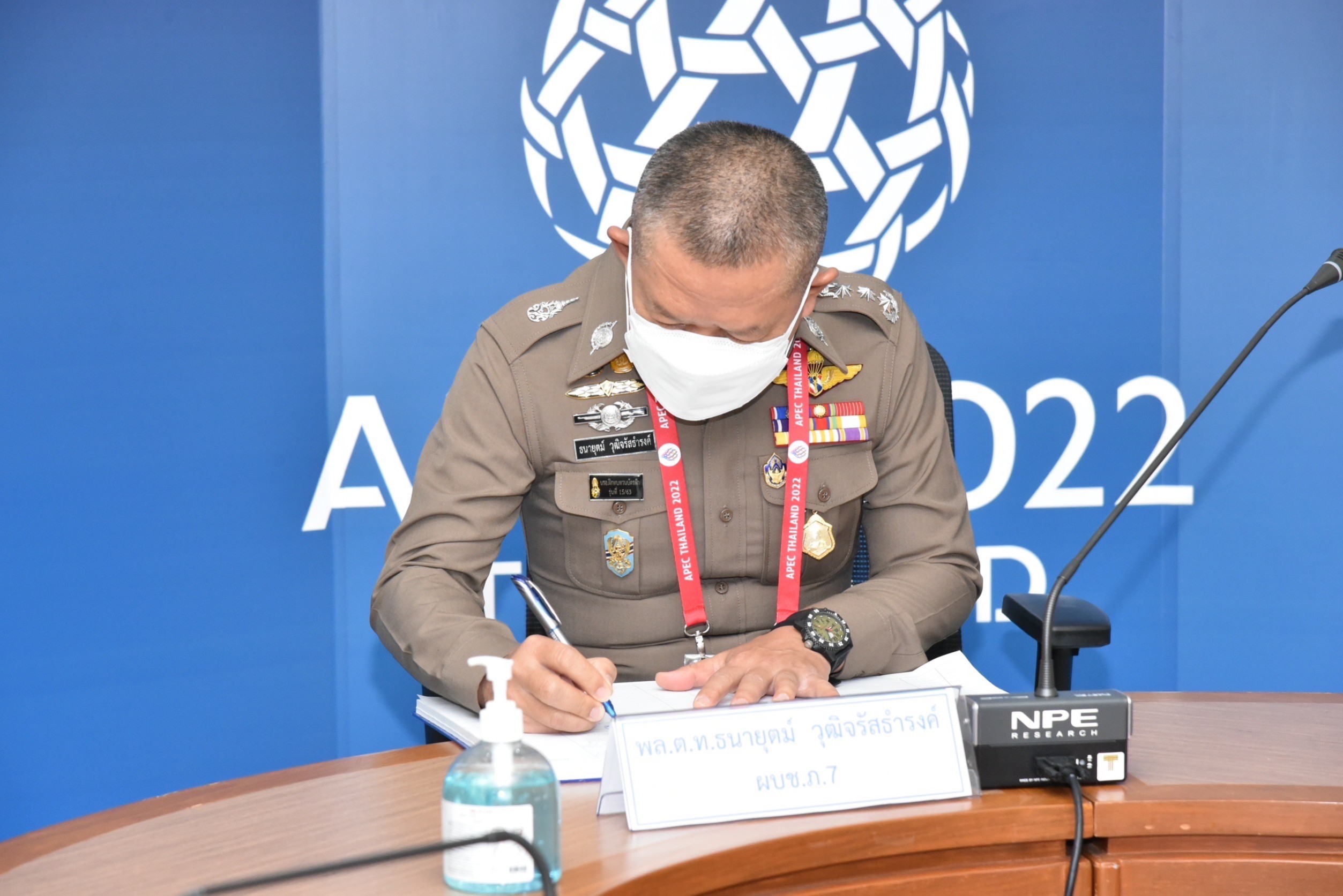 พล.ต.ท.ธนายุตม์ วุฒิจรัสธำรงค์ ผบช.ภ.7และคุณนภัสนันท์ วุฒิจรัสธำรงค์ ประธานชมรมแม่บ้านตำรวจภูธรภาค 7เดินทางมาตรวจเยี่ยม ทก.สน.โรงแรมแมนดาริน โอเรียนเต็ล กรุงเทพ ภารกิจรักษาความปลอดภัยในการประชุมผู้นำเขตเศรษฐกิจเอเปค (APEC 2022 THAILAND)พร้อมด้วยพล.ต.ต.จักรกฤษ เครือสุนทรวานิช