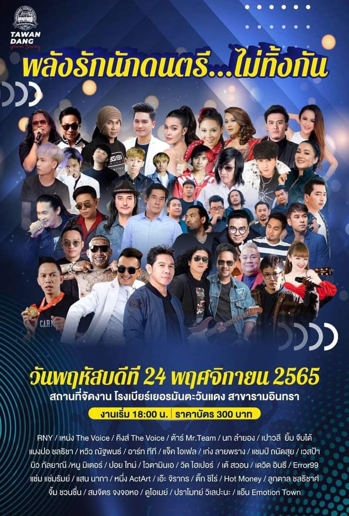 เป็นอีกหนึ่งกิจกรรมดีๆ ที่แสดงถึงน้ำใจน้องพี่คนดนตรี กับงานคอนเสิร์ตการกุศล ,”พลังรักนักดนตรี…ไม่ทิ้งกัน” ที่จะจัดขึ้นที่โรงเบียร์เยอรมันตะวันแดง สาขาเลียบทางด่วนรามอินทรา ในคืนวันพฤหัสบดีที่ 24 พฤศจิกายน 2565 นี้ เพื่อเป็นการระดมทุนช่วยเหลือนักดนตรีแบ๊คอัพชื่อดังของวงการอย่าง “ปิ๊ก” จิตรกร ชุ่มเย็น ที่ประสบอุบัติเหตุจนต้องเข้าผ่าตัดด่วนที่ ICU ช่วยเหลือตัวเองได้น้อยเพราะกล้ามเนื้ออ่อนแรงจากภาวะกระดูกพรุน