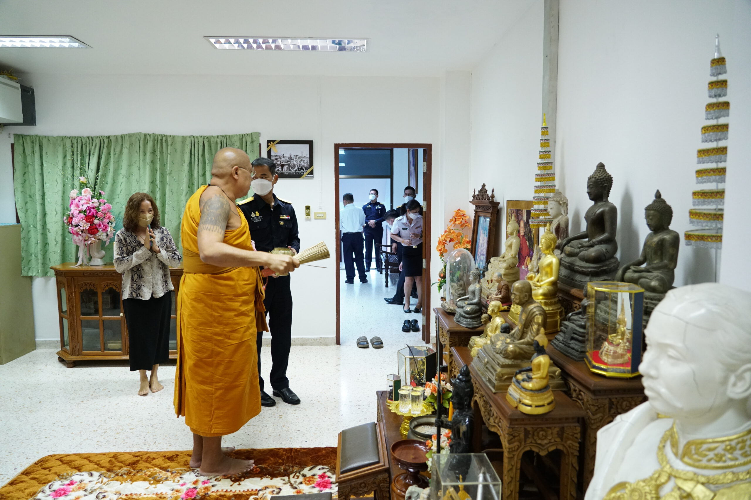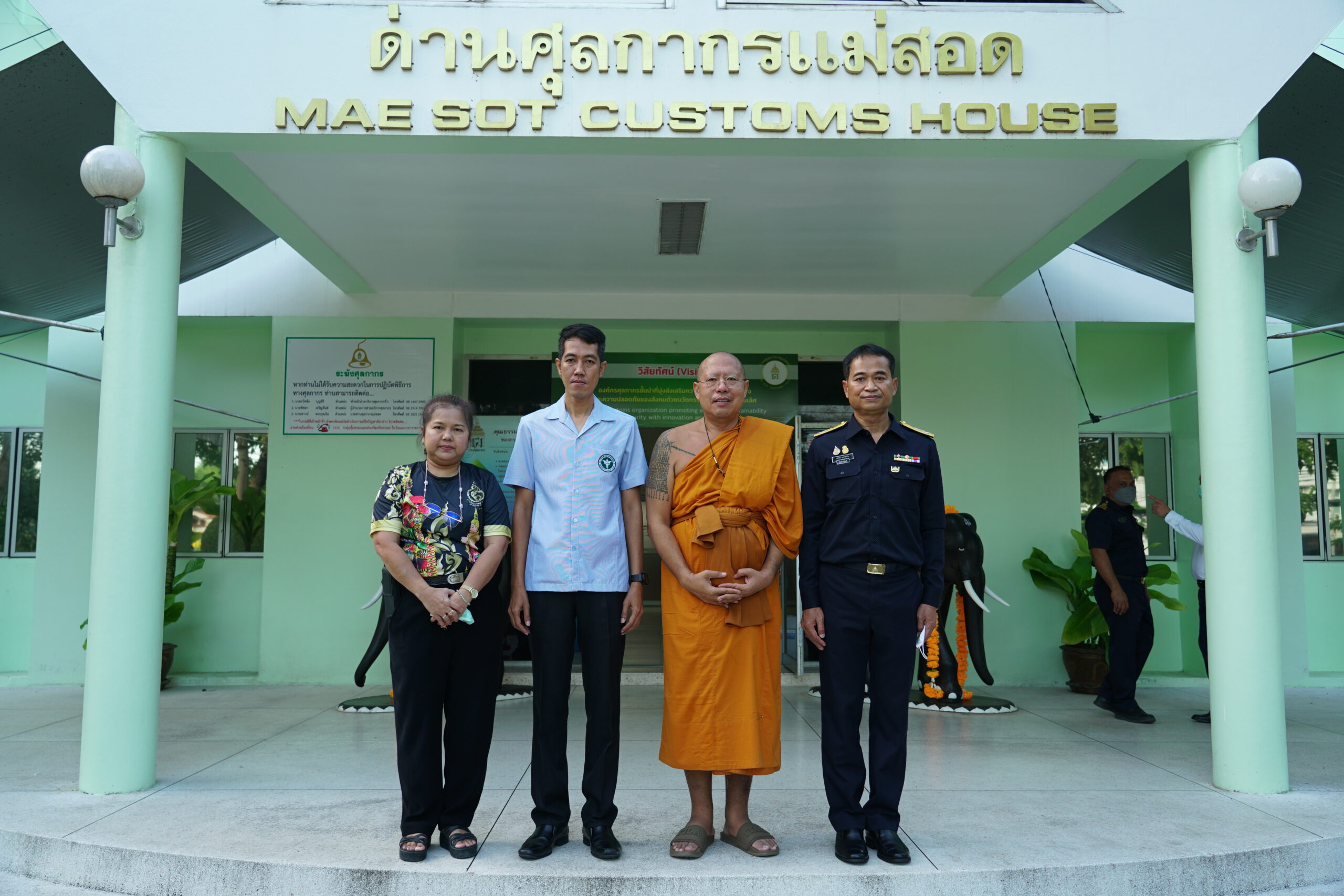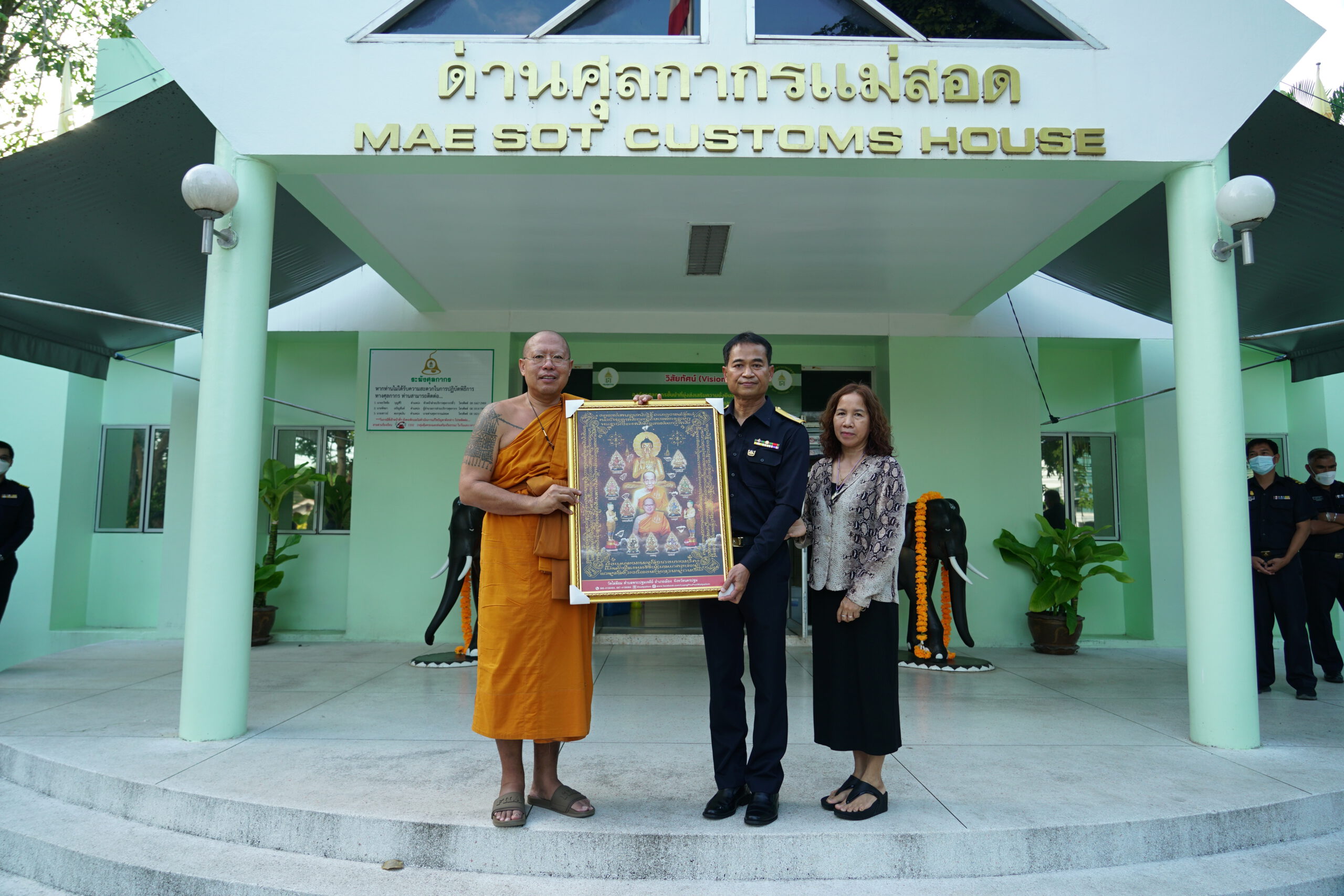 พร้อมกันนี้ พระครูปลัดสิทธิวัฒน์ หลวงพี่น้ำฝน เจ้าอาวาสวัดไผ่ล้อม ได้เจิมและประพรมน้ำมนต์ที่สำนักงานด่านศุลกากรแม่สอด เพื่อความเป็นสิริมงคล แก่เจ้าหน้าที่อีกด้วย