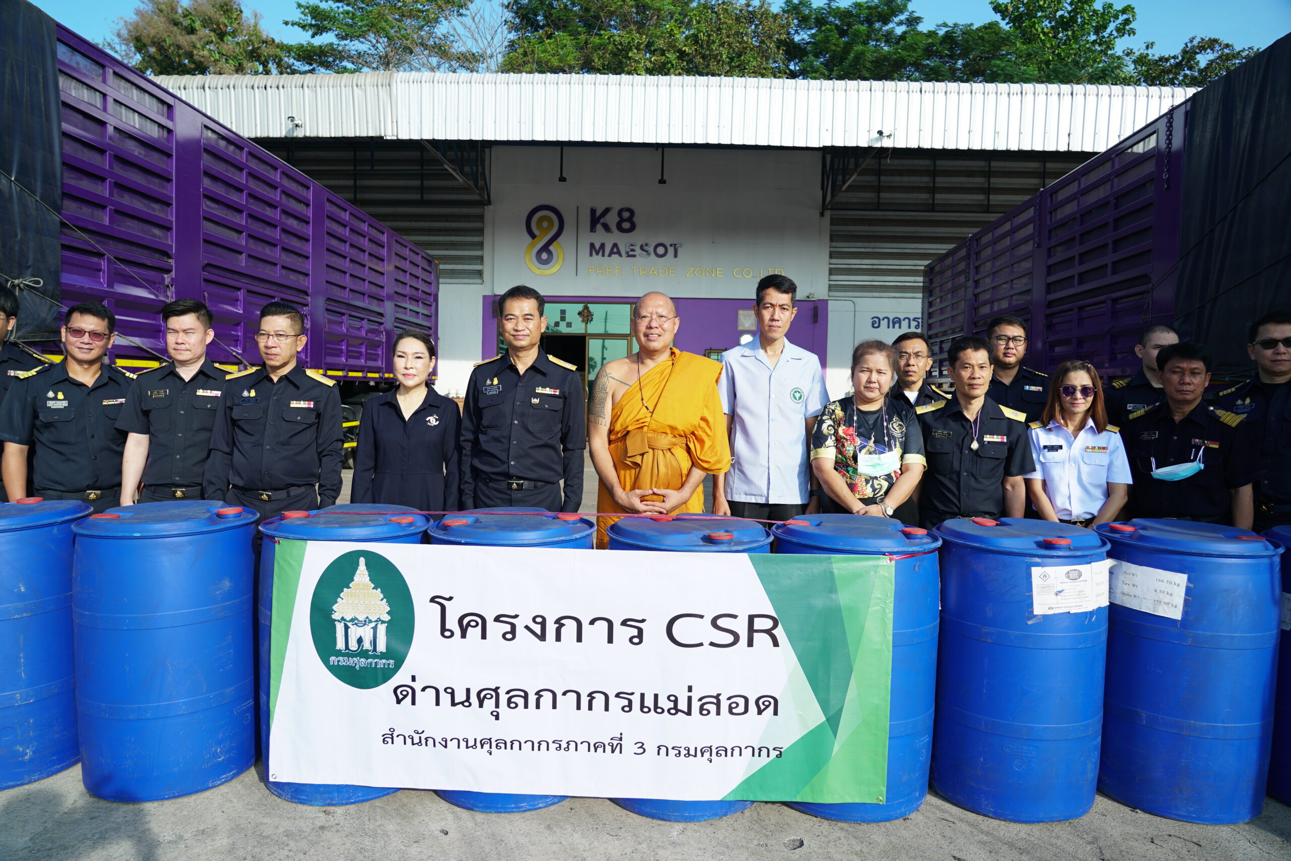 พระครูปลัดสิทธิวัฒน์ หลวงพี่น้ำฝน เจ้าอาวาสวัดไผ่ล้อม อ.เมือง จ.นครปฐม เป็นผู้ประสานในพิธี CSR ส่งมอบของกลางเอทิลแอลกอฮอล์ เพื่อนำไปใช้เป็นสาธารณะประโยชน์ โดยมีนายเชาวน์ ตะกรุดเงิน นายด่านศุลกากรแม่สอด นายพิชยา เจริญสันต์ ผอ.สบศ. นายไพยง สังข์ทอง ผอ.สคศ. พร้อมด้วยคณะผู้บริหารและเจ้าหน้าที่ด่านศุลกากรแม่สอด ร่วมกันทำกิจกรรม CSR ส่งมอบของกลางเอทิลแอลกอฮอล์ ให้แก่โรงพยาบาลนครปฐม และโรงพยาบาลสามพราน ซึ่งมีนางพัชรี เกษรบุญนาค รองผู้อำนวยการโรงพยาบาลสามพราน และนายพีระณัชช์ รูปสม นักจัดการงานทั่วไปปฎิบัติการ เป็นผู้แทนรับมอบเอทิลแอลกอฮอล์ เพื่อกระจายนำไปส่งมอบต่อให้โรงพยาบาลในจังหวัดนครปฐมและในหลายจังหวัด เพื่อนำไปใช้ให้เกิดประโยชน์ ในด้านการแพทย์ อย่างสูงสุด