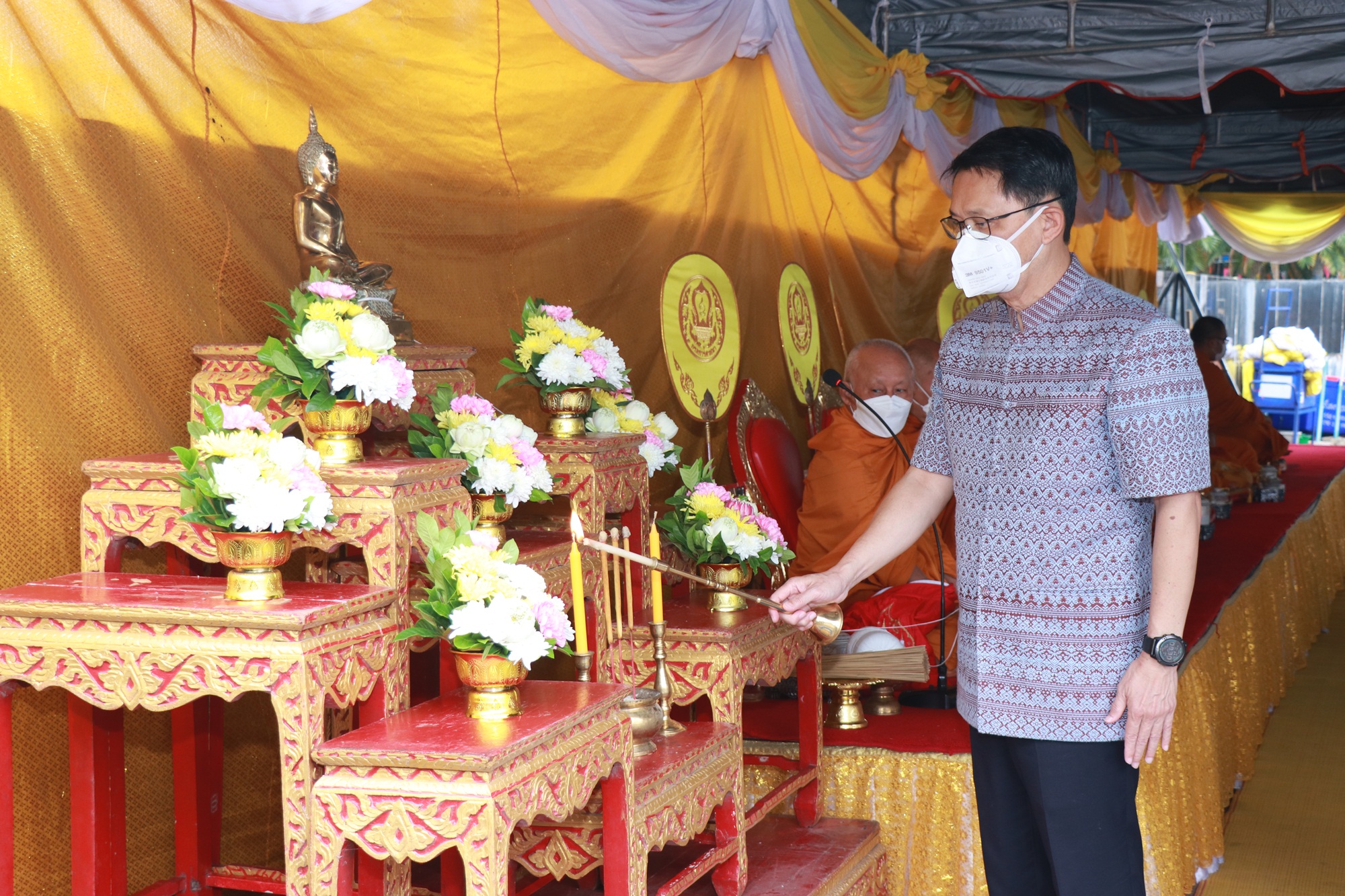 กาญจนบุรี พ่อเมืองกาญจน์ บวงสรวงสักการะสิ่งศักดิ์สิทธิ์และประกอบพิธีกรรมทางศาสนาในการจัดงานสัปดาห์สะพานข้ามแม่น้ำแควและงานกาชาดจังหวัดกาญจนบุรี ประจำปี 2565