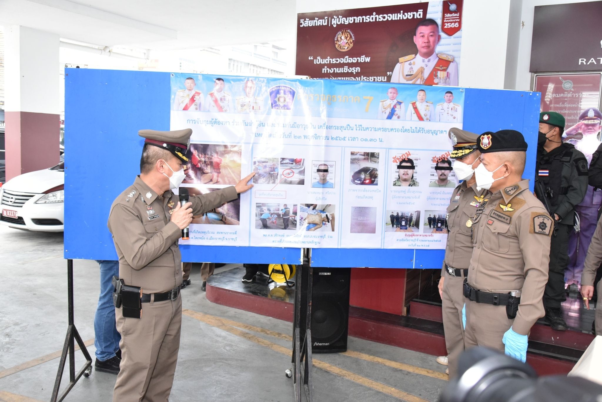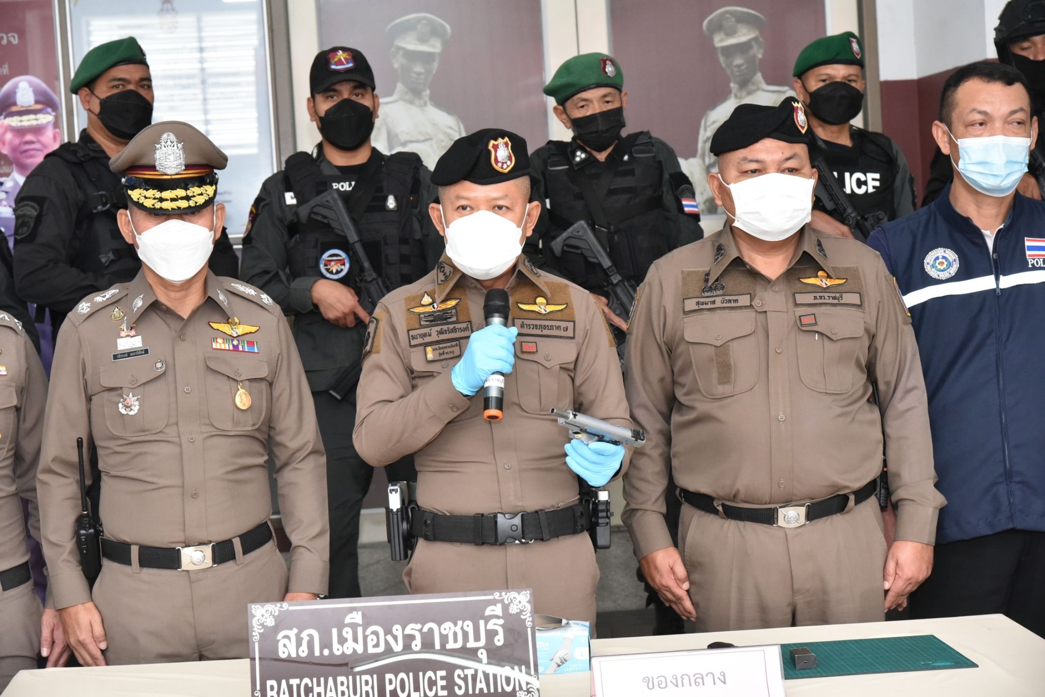 พล.ต.ท.ธนายุตม์ วุฒิจรัสธำรงค์ ผบช.ภ.7 พร้อมด้วย พล.ต.ต.วชิรพงษ์ อมราพิทักษ์ ผบก.ภ.จว.ราชบุรี พ.ต.อ.รังสรรค์ สุขเกื้อ รอง ผบก.ภ.จว.ราชบุรี