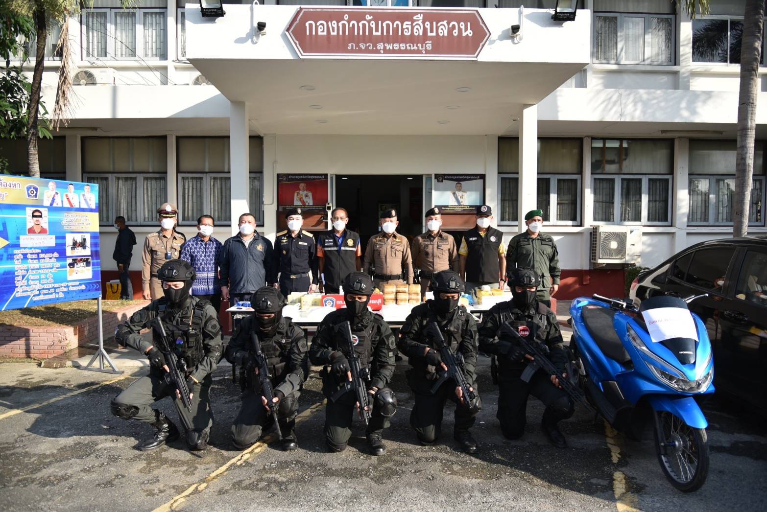ผอ.สำนักงาน ปปส.ภ.7 พ.ต.อ.เชิดศักดิ์ เฉลียวศิลป์ รอง ผบก.ภ.จว.สุพรรณบุรี พ.ต.อ.ธนเดช ตันติอาภา รอง ผบก.ภ.จว.สุพรรณบุรี พ.ต.อ.อภิชิต สุรพินิจ รอง ผบก.สส.ภ.7