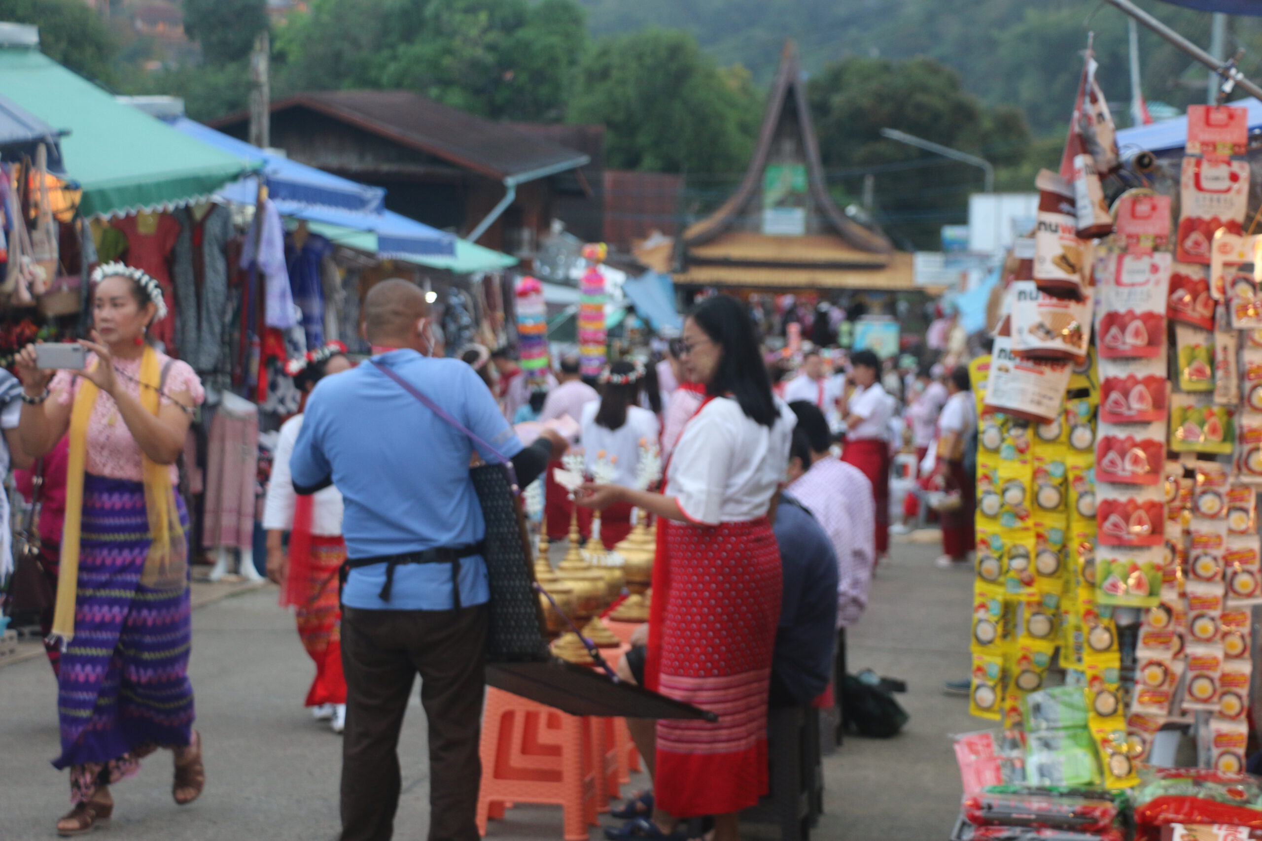 เช้าวันที่ 26 พฤศจิกายน 2565 อำเภอสังขละบุรี จังหวัดกาญจนบุรี อากาศเย็นสบาย ส่งผลให้ทั้งเมืองปกคลุมไปด้วยสายหมอก โดยเฉพาะบริเวณสะพานไม้อุตมานุสรณ์ สถานที่ท่องเที่ยวสำคัญและชุมชนมอญบ้านวังกะ นักท่องเที่ยวส่วนใหญ่ต่างนำกล้องถ่ายภาพและมือถือบันทึกภาพบนสะพานฯเก็บไว้ เพื่อเป็นที่ระลึกและส่งต่อให้เพื่อนๆได้ดู ขณะที่บรรยากาศภายในชุมชนชาวมอญบ้านวังกะ นักท่องเที่ยวสวมชุดพื้นเมือง ทั้งกะเหรี่ยง มอญ พม่า เพื่อทำบุญตักบาตรในช่วงเช้า ก่อนจะเดินเลือกซื้อสินค้าที่ระลึกและชิมอาหารพื้นเมือง ที่ชาวบ้านนำมาจำหน่าย ส่งผลให้บรรยากาศร้านอาหารและร้านขายสินค้าที่ระลึกคึกคัก ผู้ประกอบการต่างมีใบหน้าที่ยิ้มแย้ม เนื่องจากช่วงนี้สามารถขายสินค้าได้เพิ่มขึ้น